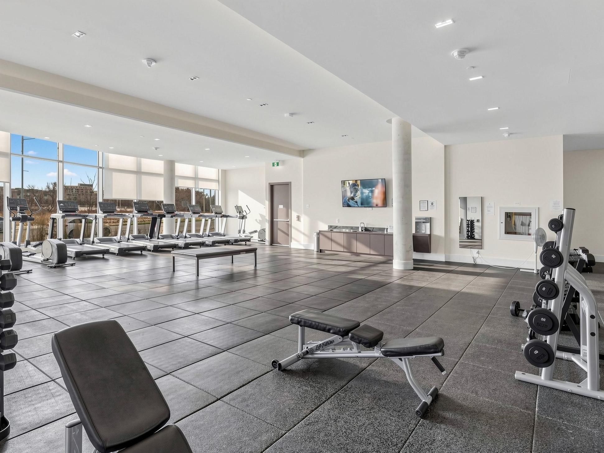 • LEED-certified building with top-notch amenities like a pool and fitness studio.