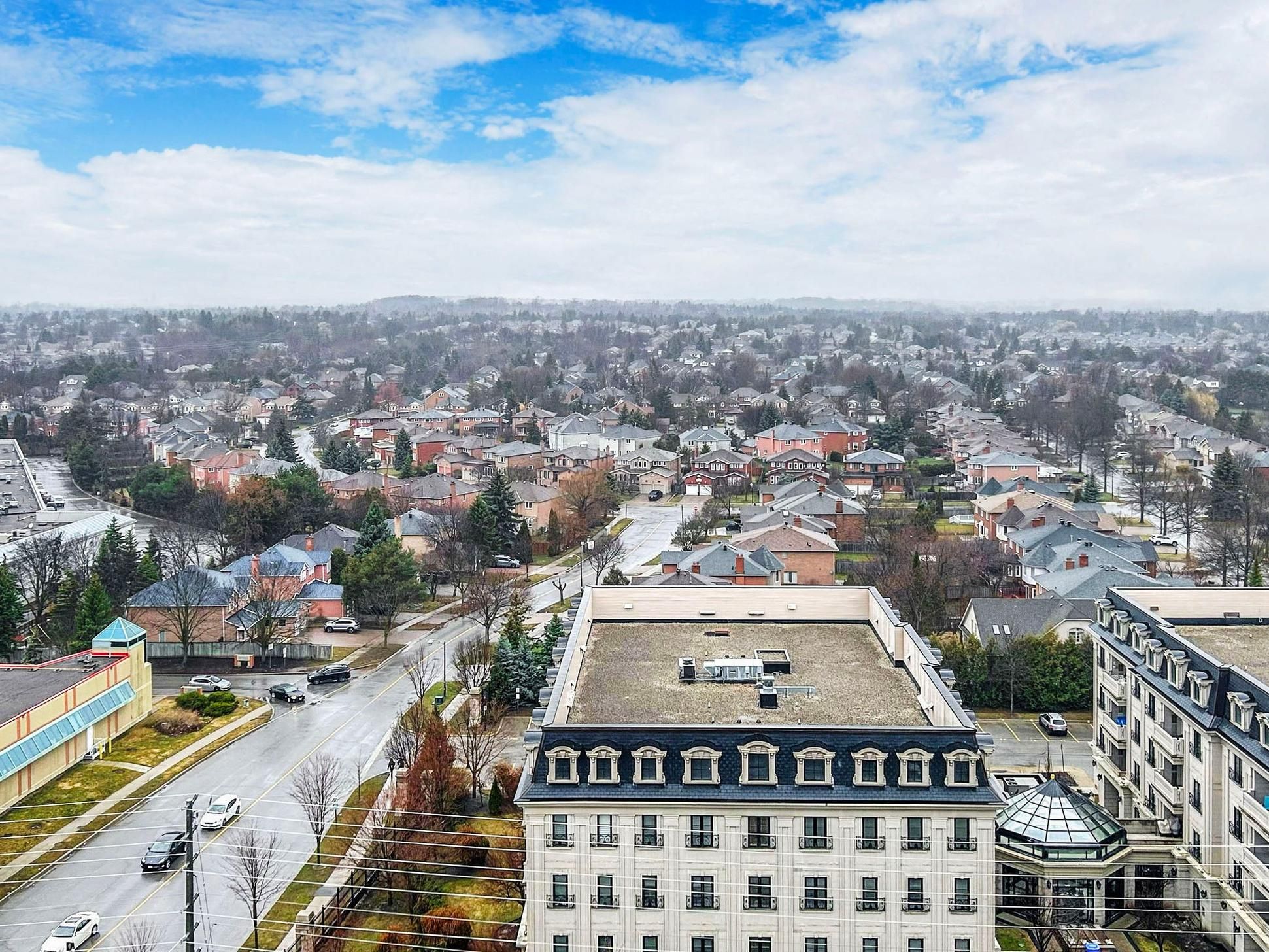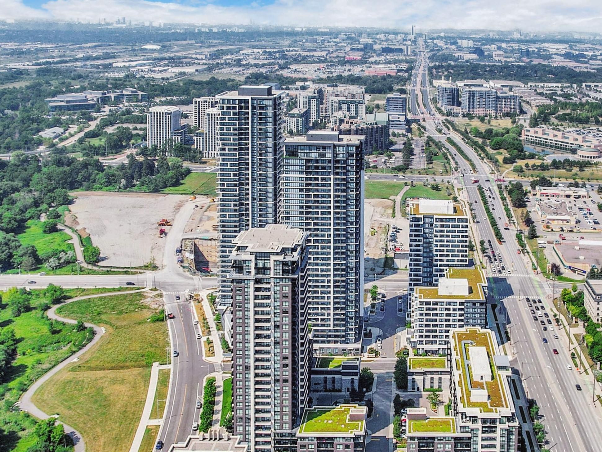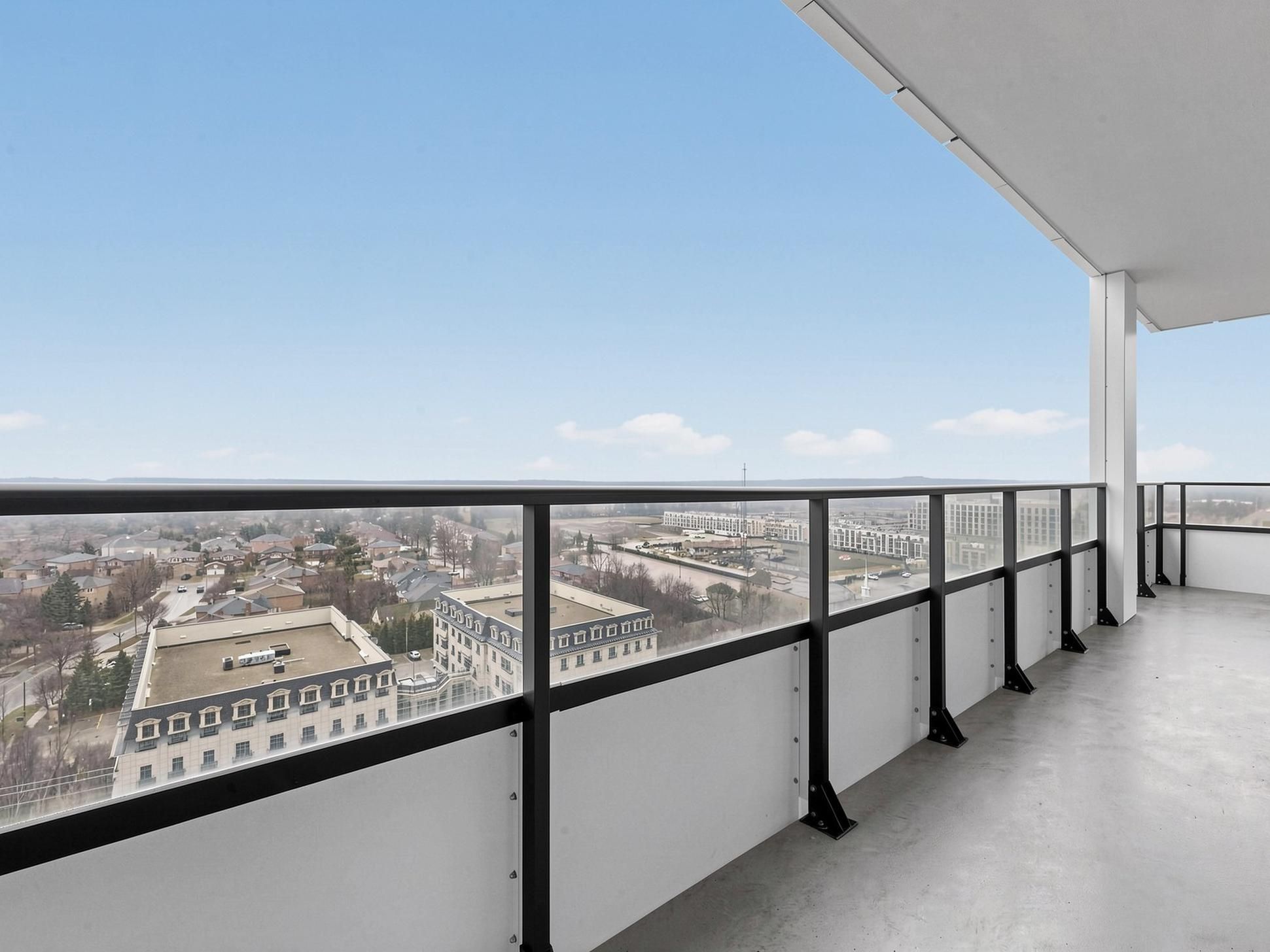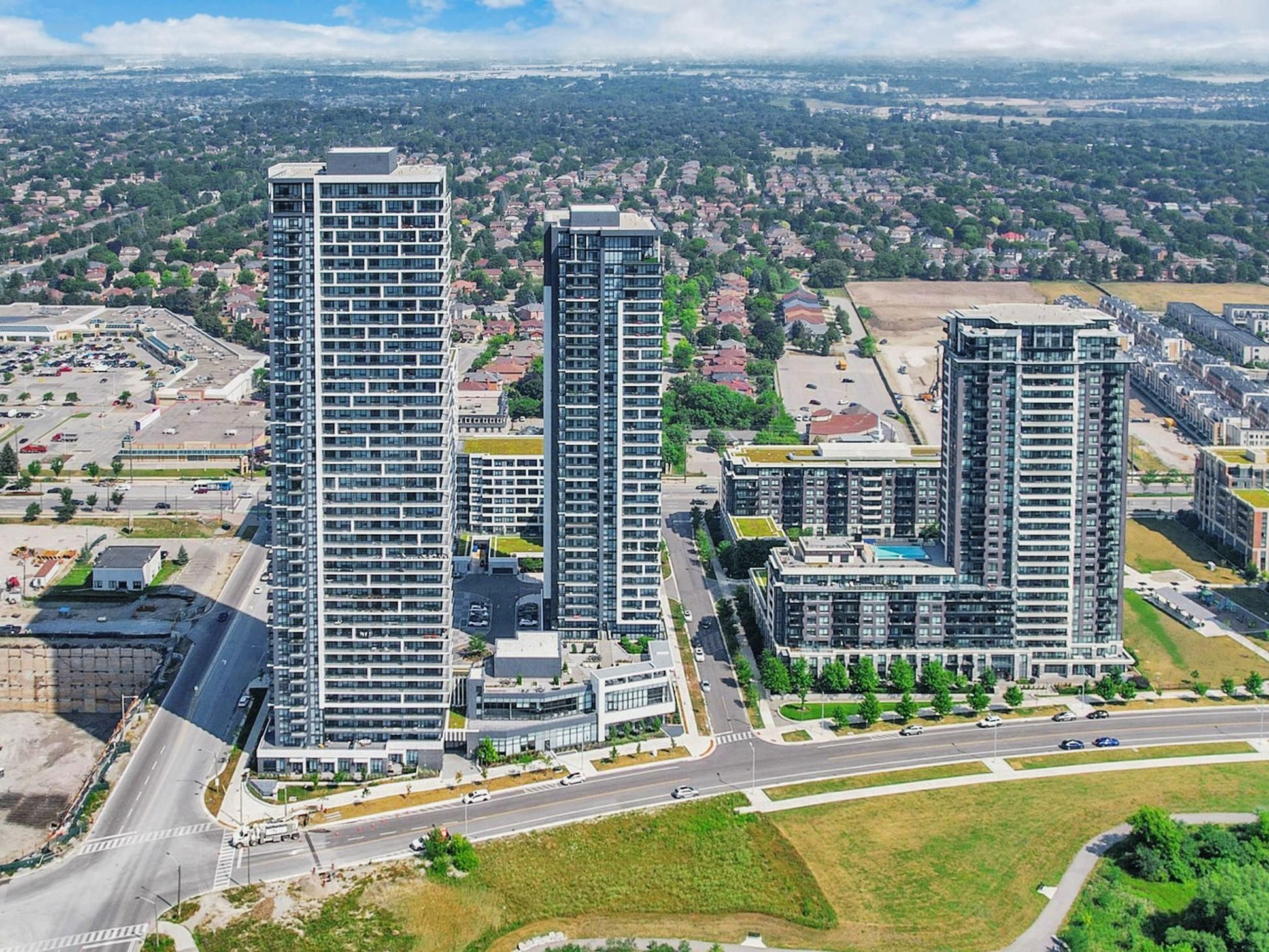 Gorgeous corner two bedroom suite [938 sf + 321 sf exterior] with wrap-around balcony at riverview by times group in the desirable historic unionville district delivering panoramic northeast views over unionville's charming neighbourhood and skyline. Located in the heart of markham among top-rated schools (milliken mills ps [7. 5], unionville hs [9. 0]), unionville go station, yrt/viva transit, highways 404/407, markham town square, downtown markham, first markham place, promenade park, and more! Bright and airy with floor-to-ceiling windows and 9-ft smooth ceilings, the home is filled with natural light. Thoughtfully upgraded throughout with laminate flooring, a spacious living area surrounded by windows, and seamless indoor-outdoor living perfect for enjoying unobstructed sunrise views. The modern kitchen has high-end integrated appliances, quartz countertops and custom quartz backsplash, sleek minimalist two tone cabinets, and centre island. The primary bedroom offers wall-to-wall windows, a walk-in closet, and a 3-piece ensuite with glass shower, while the second bedroom provides flexibility for family, guests, or a home office. Two parking spots (tandem) and locker included. Enjoy living in a sustainable leed-certified building featuring smart locks, energy-efficient design, unlimited high-speed internet, green roofs, and premium amenities including a grand lobby, two storey amenity pavilion with indoor pool, sauna, fitness & yoga studio, party and games room, library, workspaces, and rooftop deck. Live in markham with its endless food joints, incredible amenities, unbeatable convenience, sustainable greenspaces and parks, and a comfortable balanced lifestyle. Urban convenience meets refined living. Move-in ready with exceptional indoor-outdoor living.