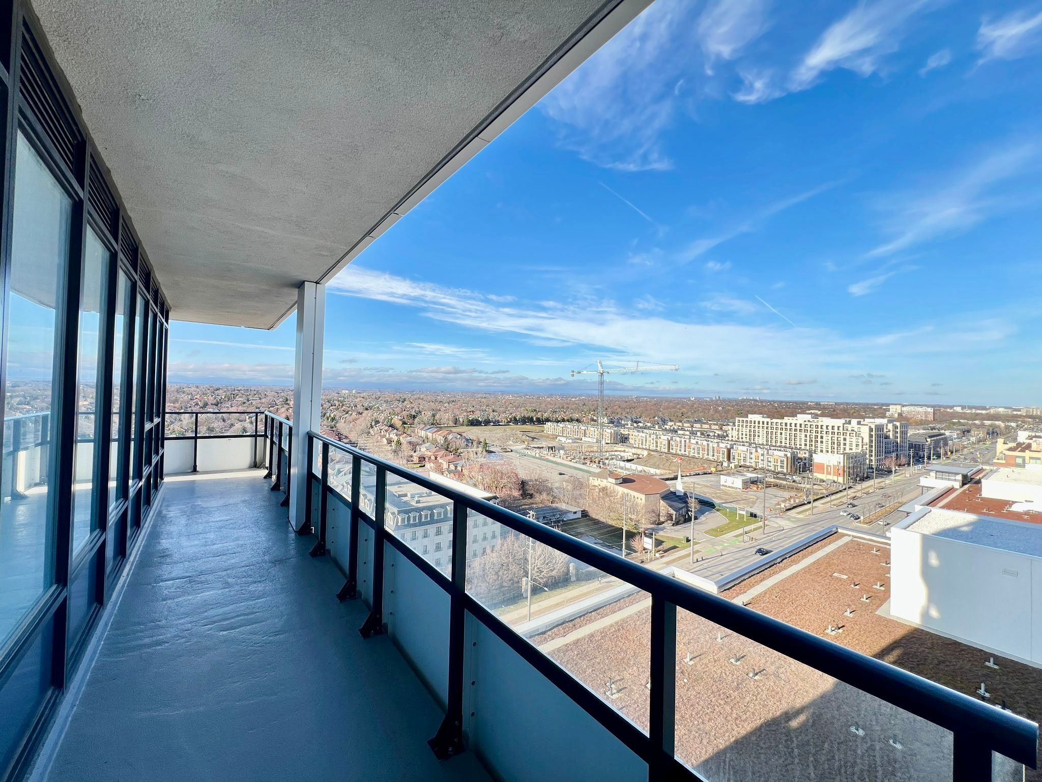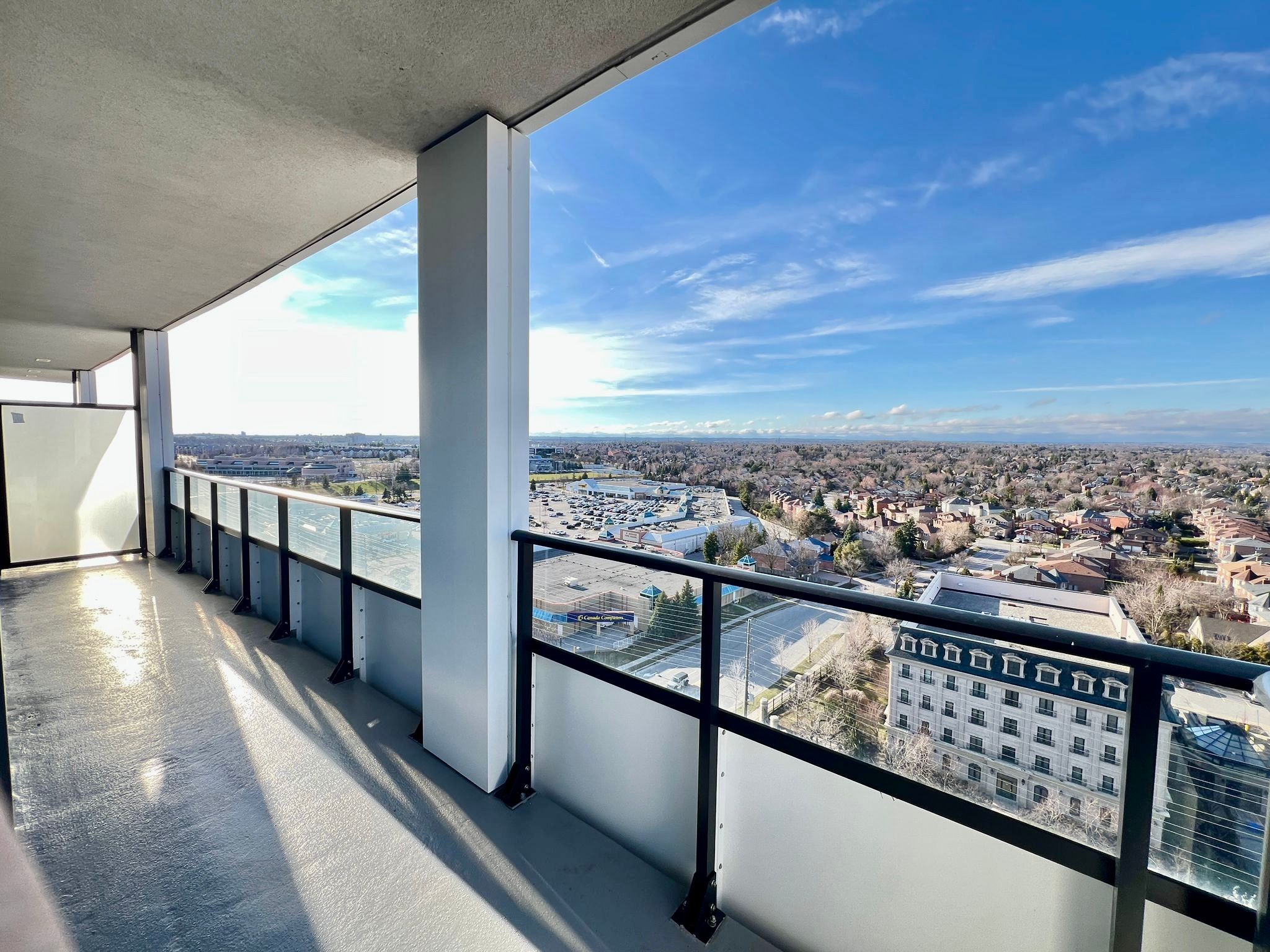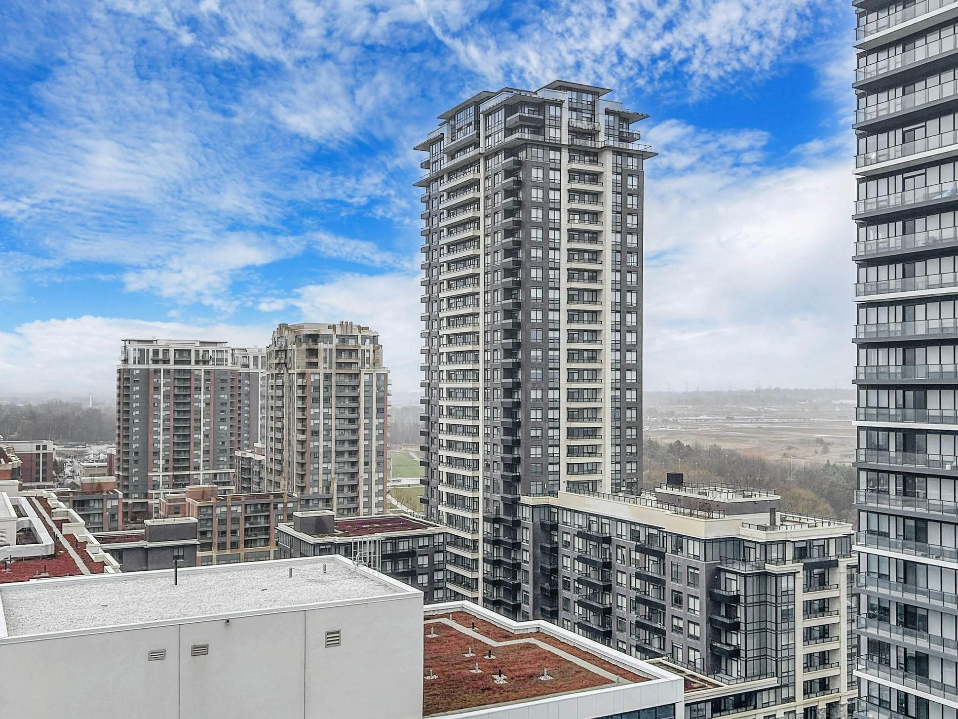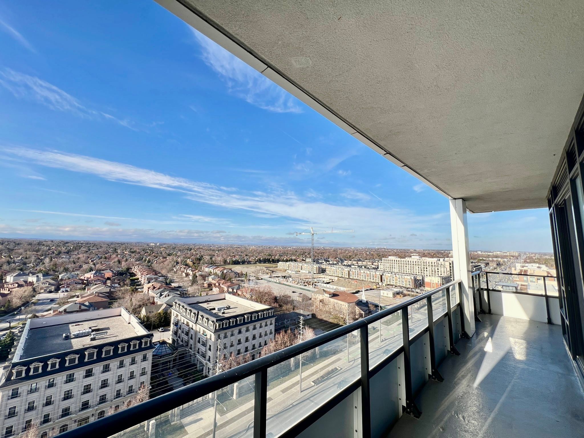 Gorgeous corner two bedroom suite [938 sf + 321 sf exterior] with wrap-around balcony at riverview by times group in the desirable historic unionville district delivering panoramic northeast views over unionville's charming neighbourhood and skyline. Located in the heart of markham among top-rated schools (milliken mills ps [7. 5], unionville hs [9. 0]), unionville go station, yrt/viva transit, highways 404/407, markham town square, downtown markham, first markham place, promenade park, and more! Bright and airy with floor-to-ceiling windows and 9-ft smooth ceilings, the home is filled with natural light. Thoughtfully upgraded throughout with laminate flooring, a spacious living area surrounded by windows, and seamless indoor-outdoor living perfect for enjoying unobstructed sunrise views. The modern kitchen has high-end integrated appliances, quartz countertops and custom quartz backsplash, sleek minimalist two tone cabinets, and centre island. The primary bedroom offers wall-to-wall windows, a walk-in closet, and a 3-piece ensuite with glass shower, while the second bedroom provides flexibility for family, guests, or a home office. Two parking spots (tandem) and locker included. Enjoy living in a sustainable leed-certified building featuring smart locks, energy-efficient design, unlimited high-speed internet, green roofs, and premium amenities including a grand lobby, two storey amenity pavilion with indoor pool, sauna, fitness & yoga studio, party and games room, library, workspaces, and rooftop deck. Live in markham with its endless food joints, incredible amenities, unbeatable convenience, sustainable greenspaces and parks, and a comfortable balanced lifestyle. Urban convenience meets refined living. Move-in ready with exceptional indoor-outdoor living.