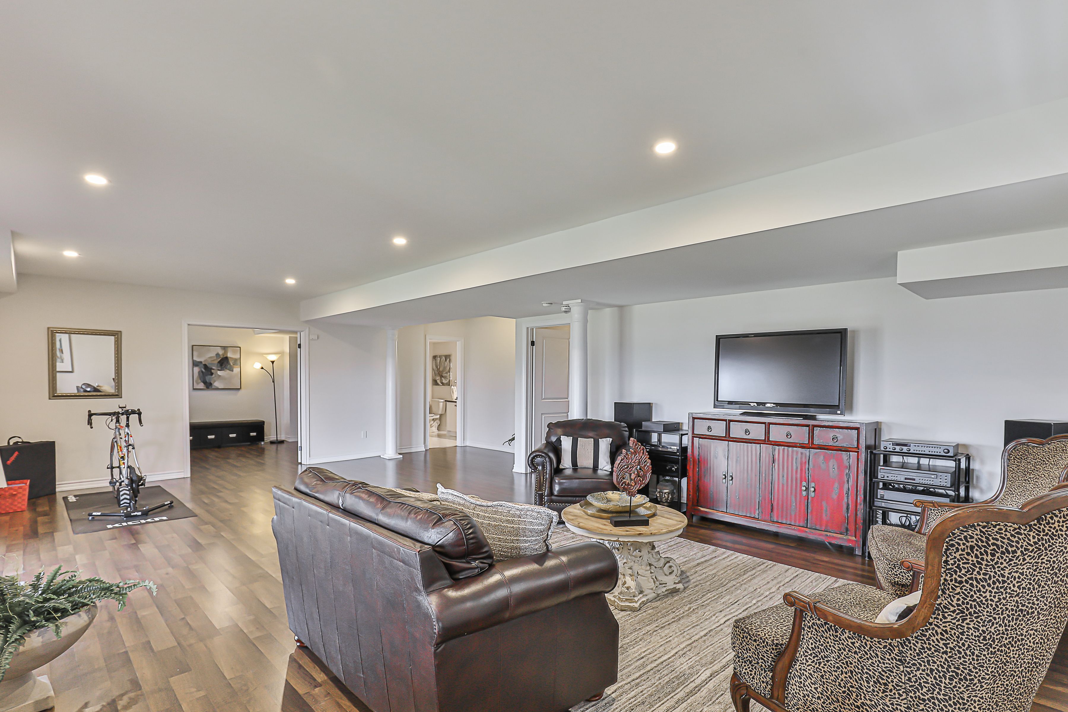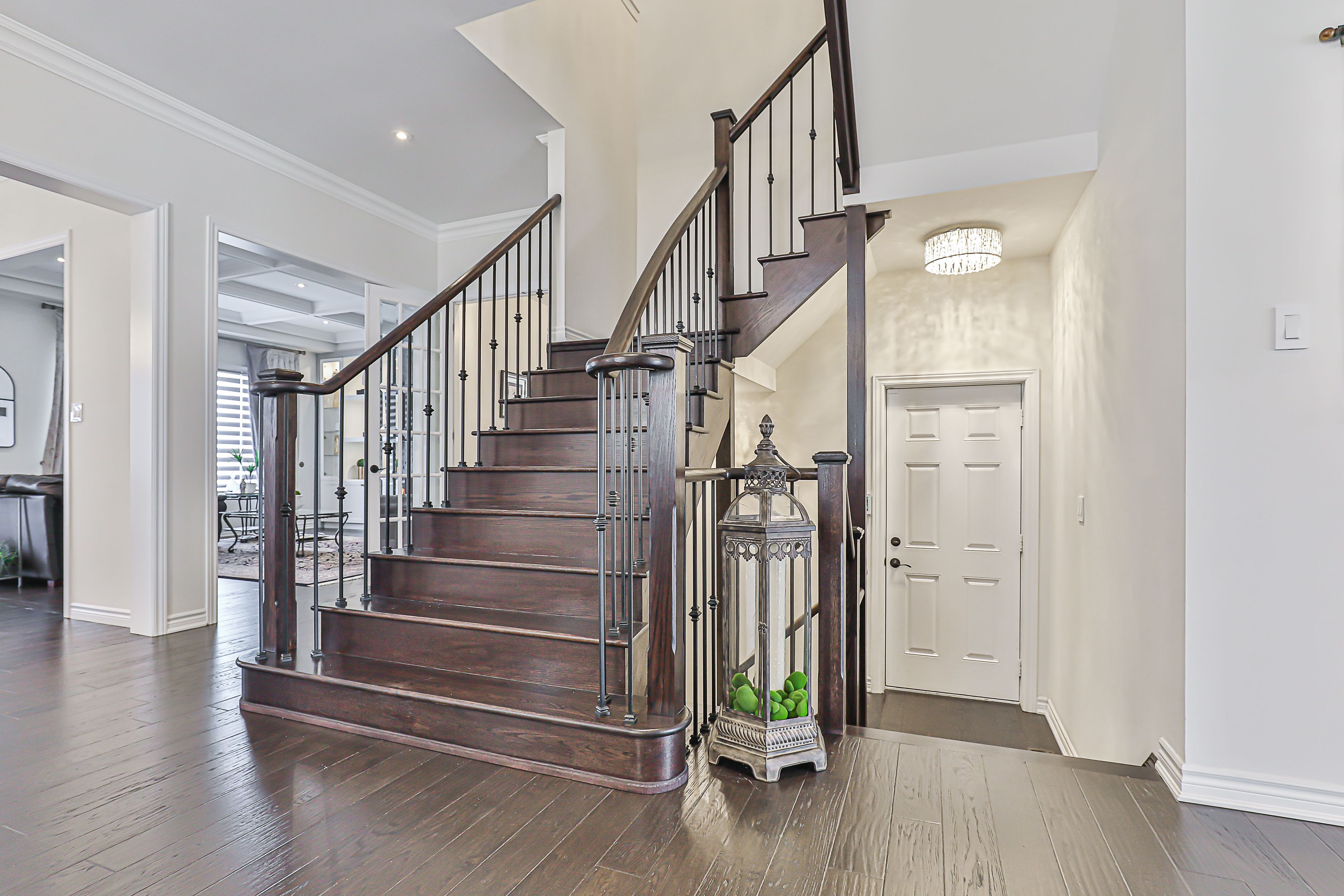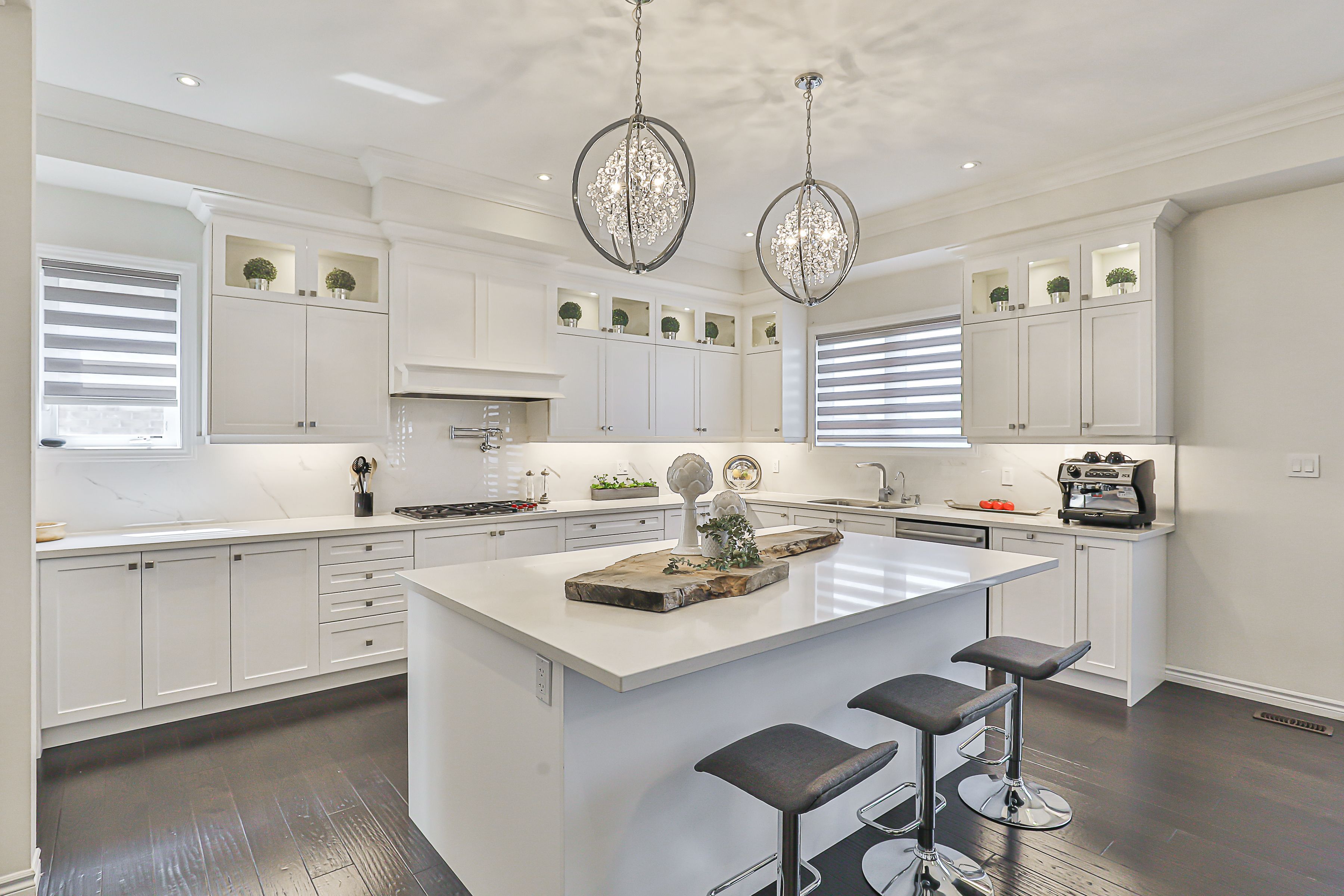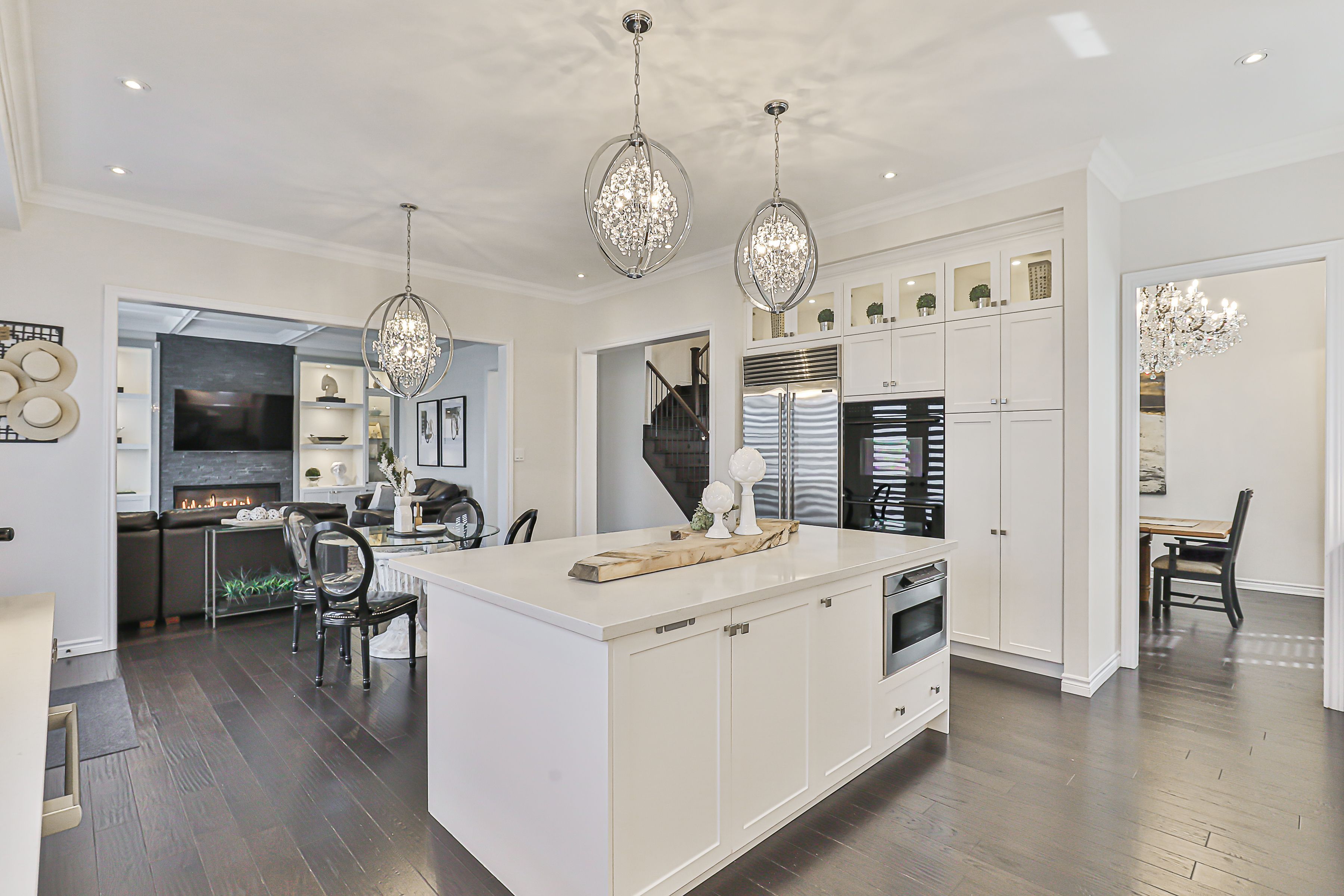 Luxury awaits in prestigious sharon village! Quality built estate home boasts over 3850 square feet of upscale living. With a rare three car garage and finished walk-out basement, this home is located on an oversized premium pie-shaped lot overlooking community schools, parks and other estate homes. With 10' ceilings on the main floor, and 9' ceilings upstairs, this home boasts 5 bedrooms and5 washrooms. The incredible chef's kitchen is a show-stopper, featuring subzero and wolf appliances, potfiller, drawer microwave and beverage centre. Quartz counters, gleaming backsplash and an expansive breakfast bar are deluxe. With hand scraped wood floors throughout, incredible chandeliers sparkle in virtually every room, including the numerous walk in closets. The open concept family room features a gas fireplace, custom millwork and a waffle ceiling with potlights. Wow your guests with the stunning 2-story, open to above dining room with floor to ceiling windows. Upstairs, retreat to the serenity of the primary suite with elegant tray ceiling, expansive double walk in closets and a spa-inspired five piece ensuite. 3 well-appointed bedrooms are located upstairs, while a 5th bright bedroom is in the finished lower level. Double doors open onto a brand new (2024) massive composite deck with entertaining, eating and food prep zones. Outdoor living at its best! Watch the little ones walk to school from the comfort of your back deck. A double staircase to ground level maximizes the expansive, flat backyard, and creates a second, shady patio area outside the walkout basement doors. There is also a convenient door to the backyard from the garage. Sharon is one of york region's most desirable communities, with easy access to the 404, go station, kilometers of trails, and numerous parks and recreational amenities. Shops and services are also nearby; this is a truly exceptional property to make your next home.