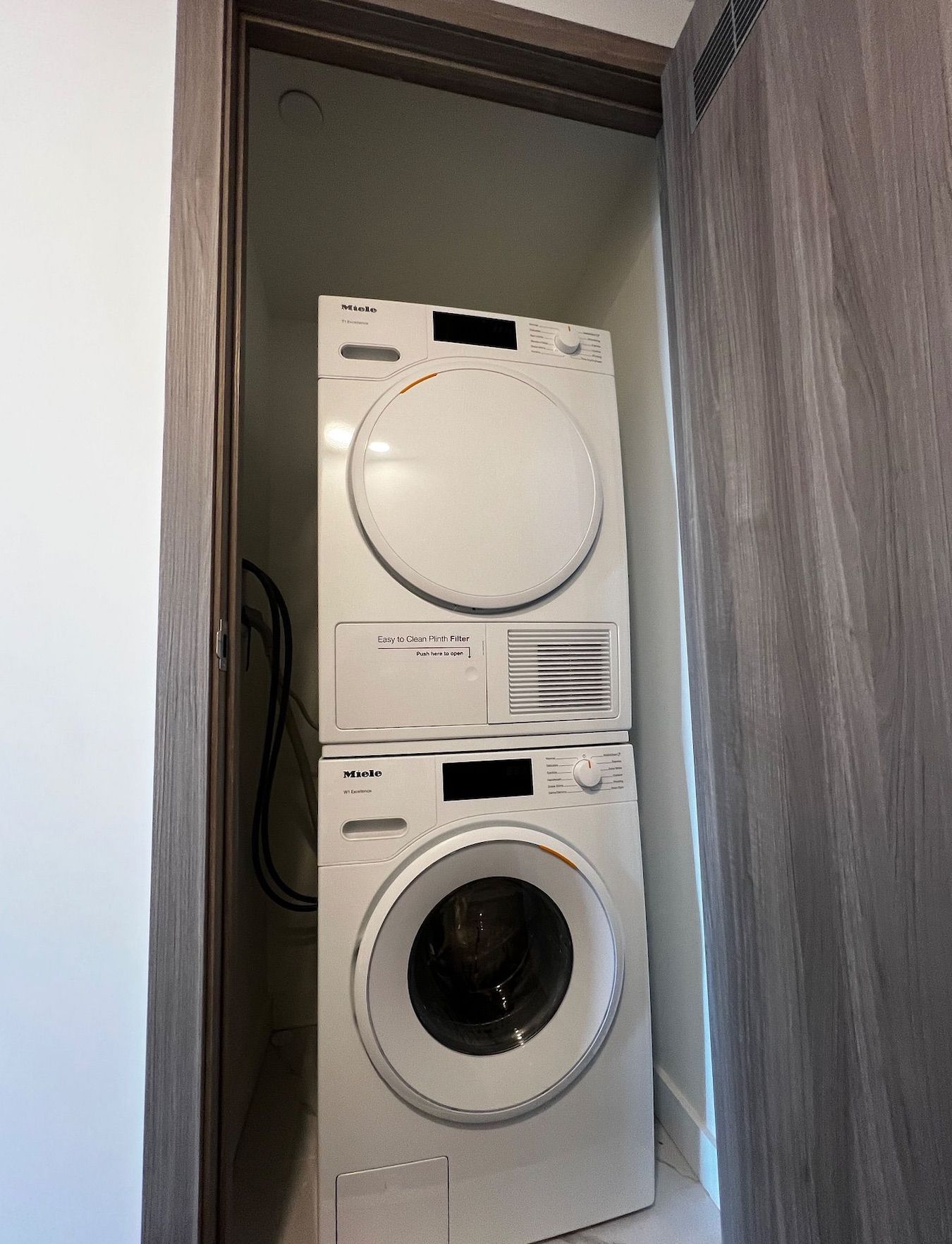 • Modern kitchen with high-end Miele appliances and stylish backsplashes.