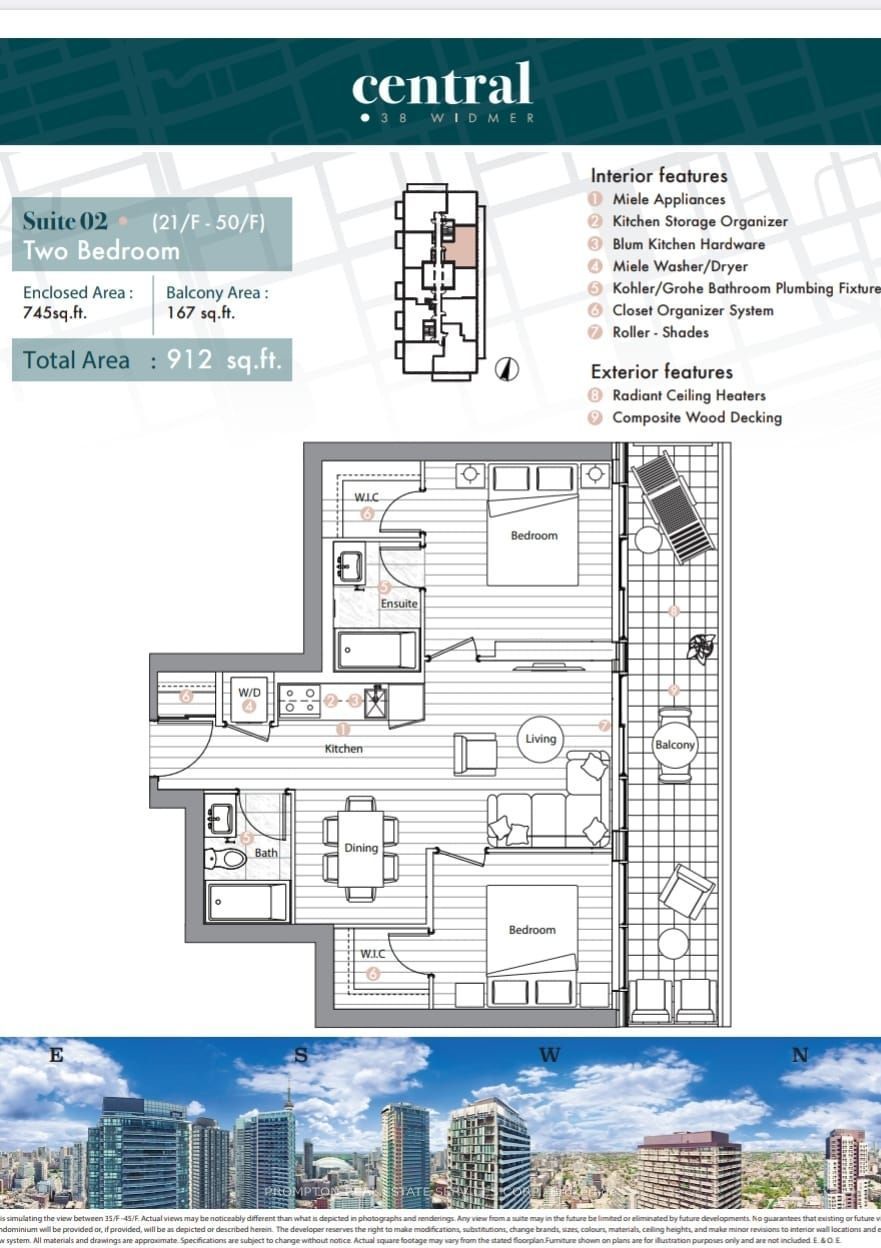 Brand new building! Located in the heart of the entertainment district and toronto's tech hub, spacious 2 bd features miele appliances, calacatta kitchen backsplash and 2 bathrooms, grohe fixtures, 2 walk-in closet +organizers and heated fully decked balcony. Amenities incl fitness rm,pool w. Movie threater, business meeting room, 24 hr. Concierge, guest suites, bbqs. Steps to path and st patrick ttc and financial district.