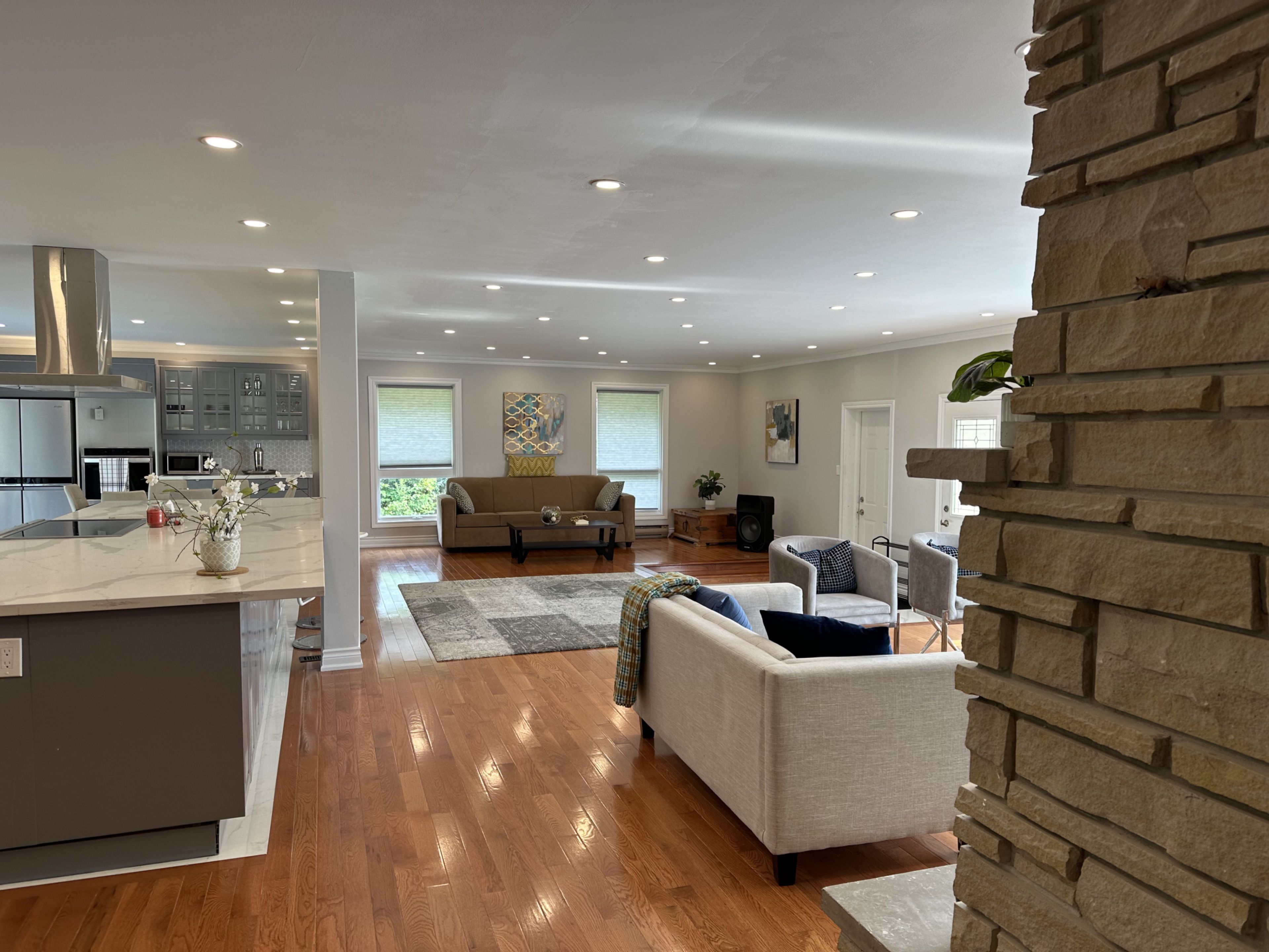 • Open-concept main floor with natural light, hardwood floors, and chef's kitchen.
