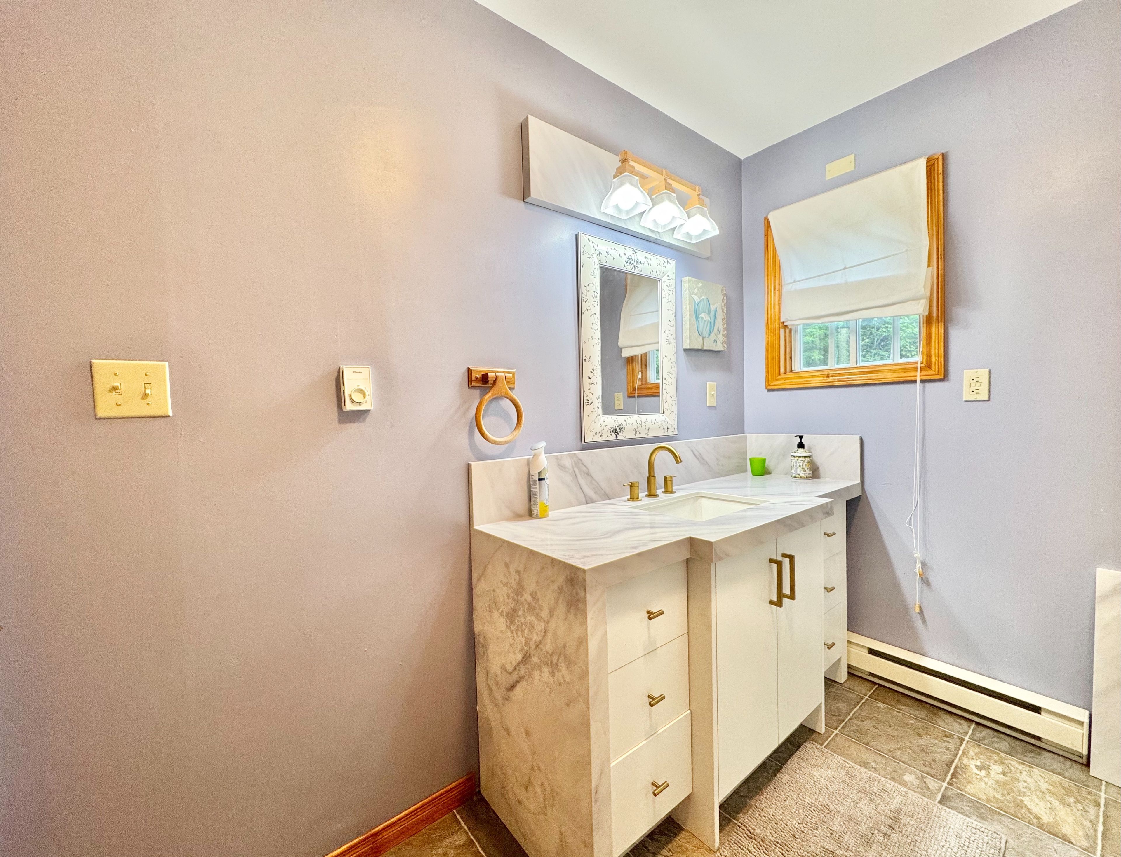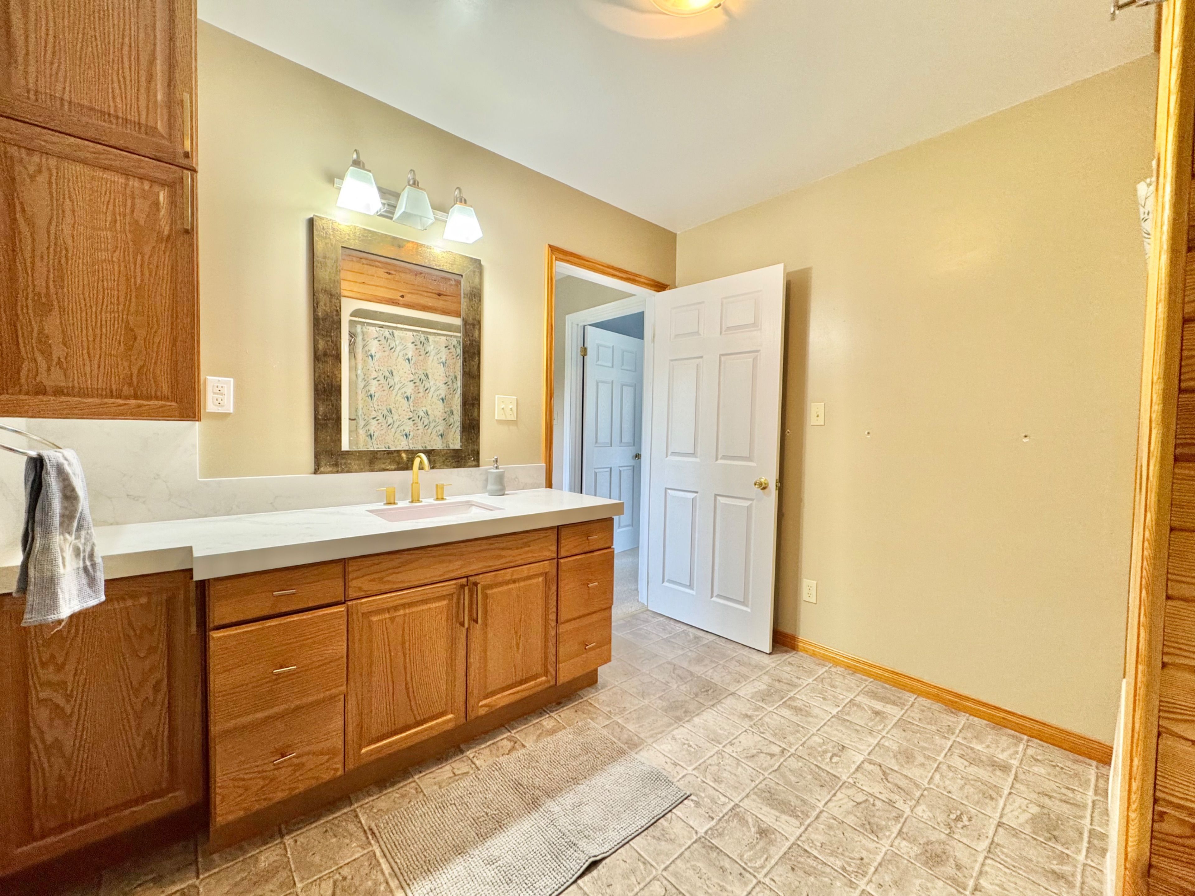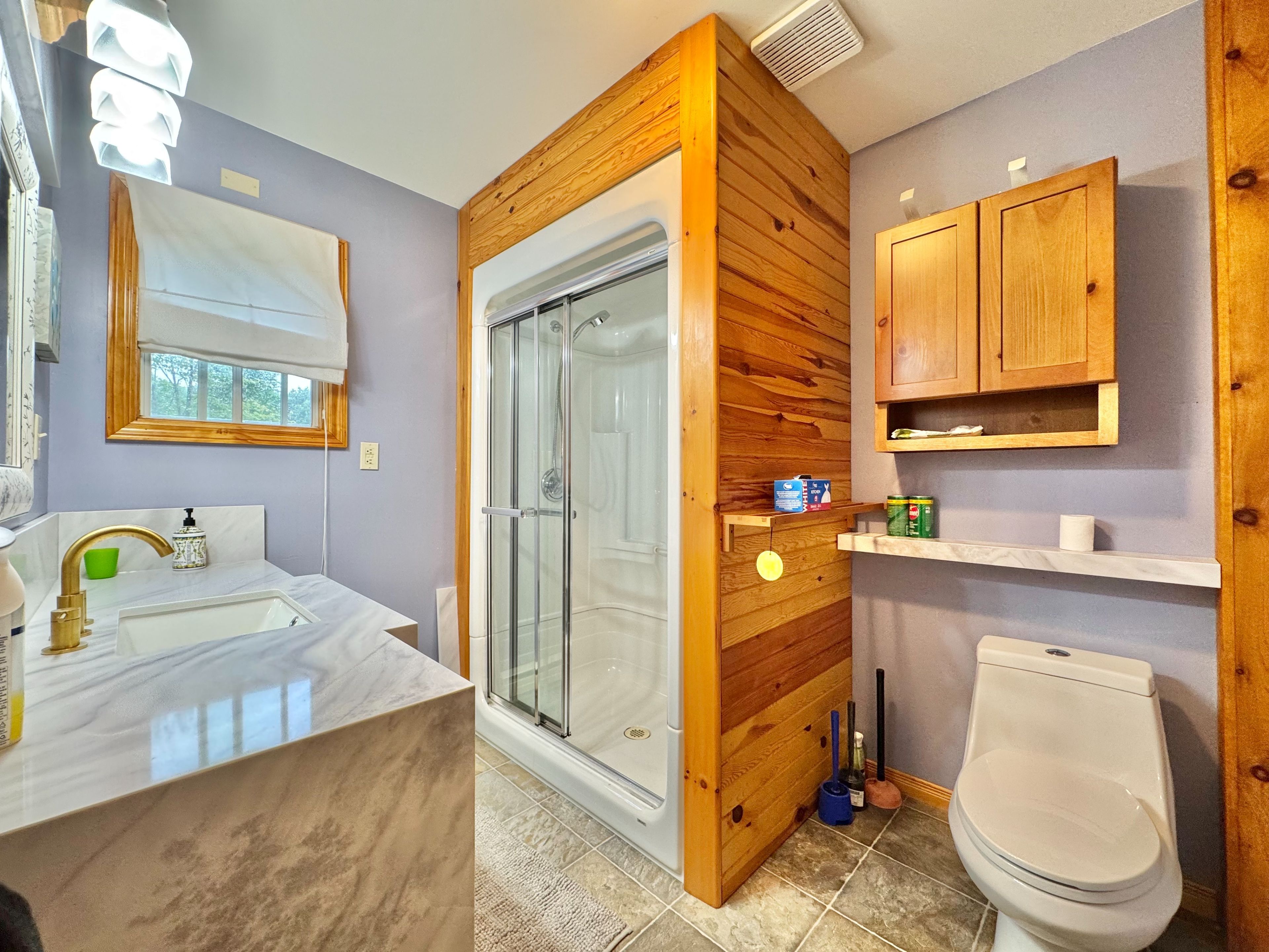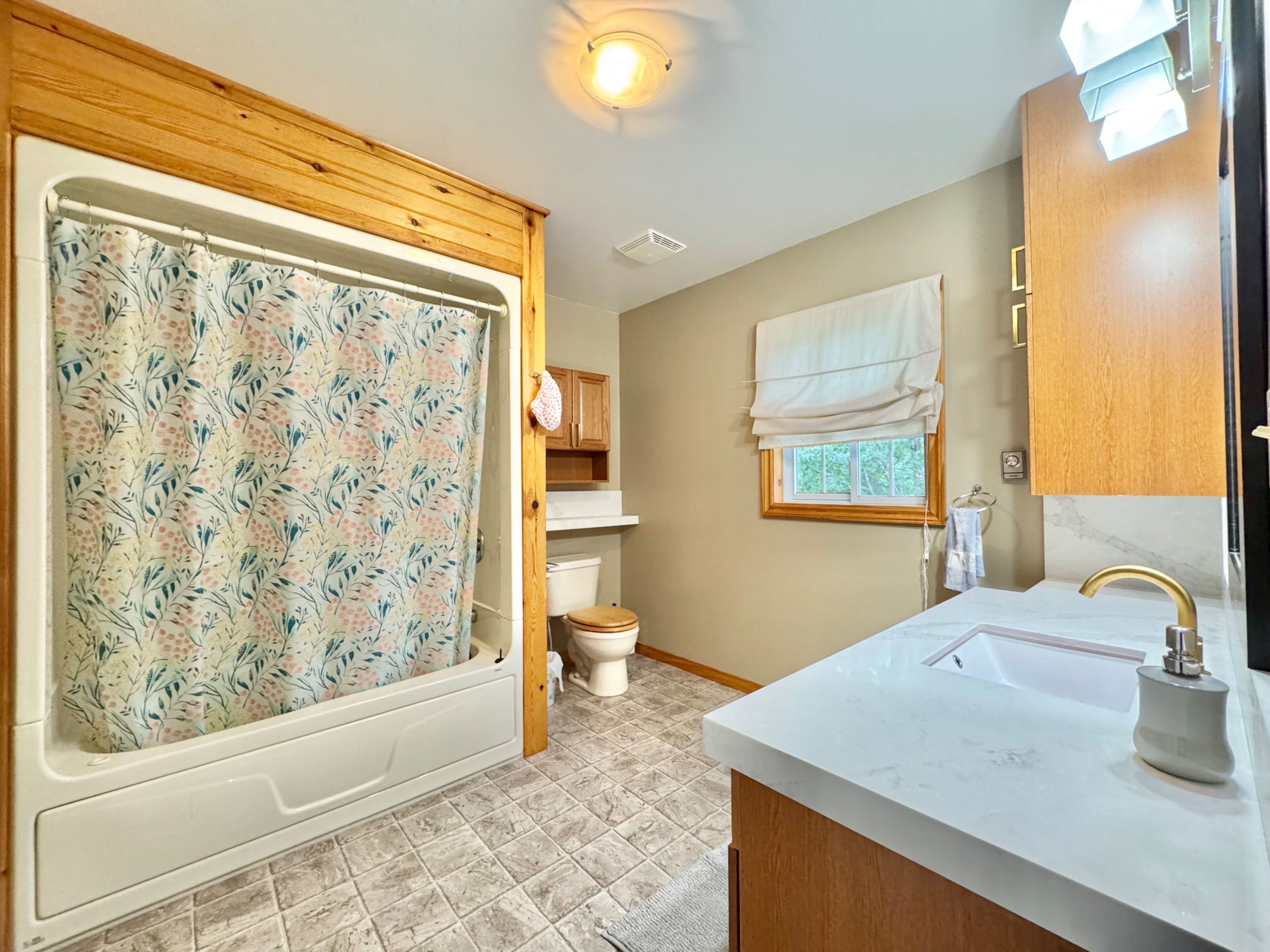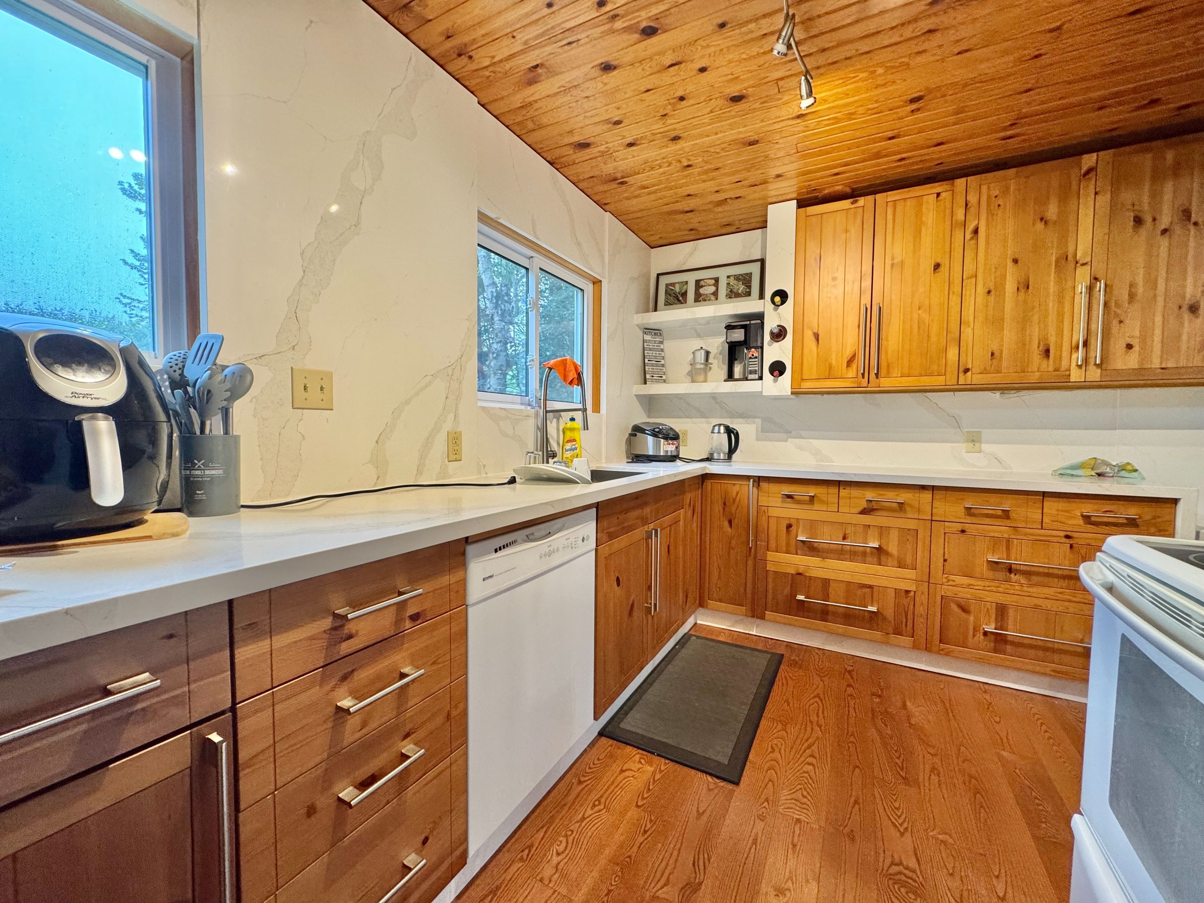 • Stylish country cottage with pine accents and quartz countertop upgrades.