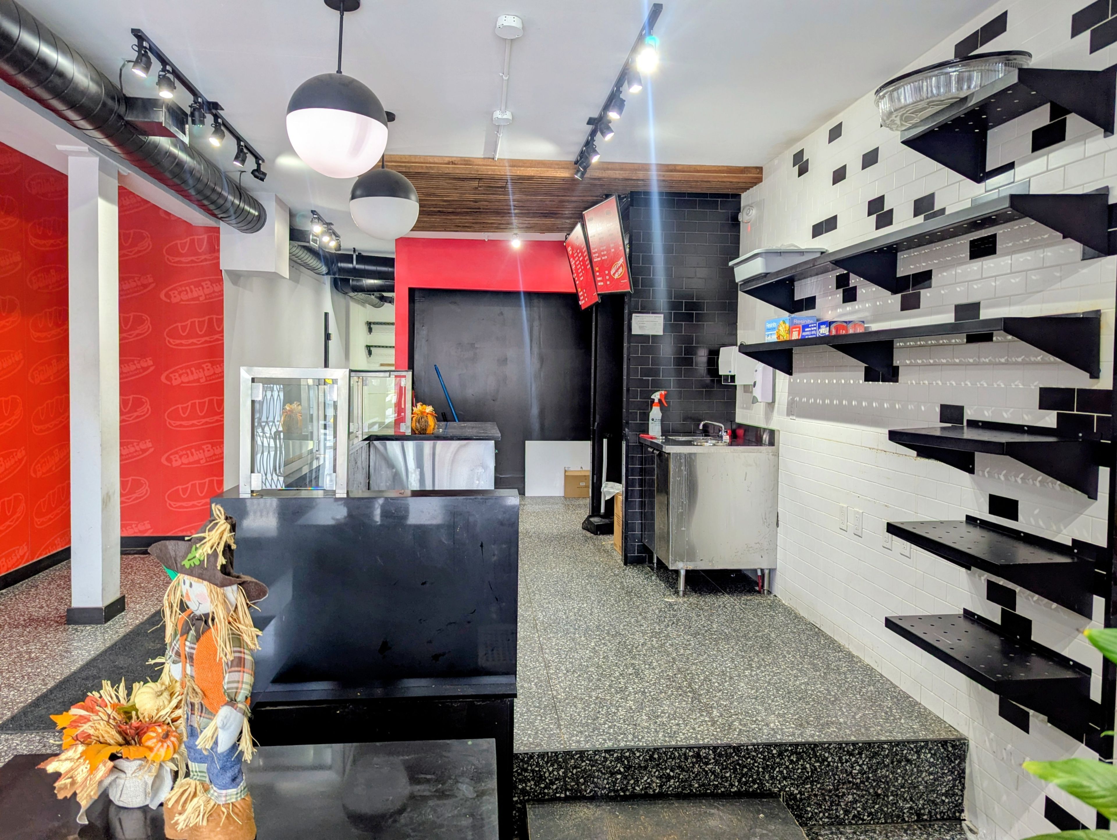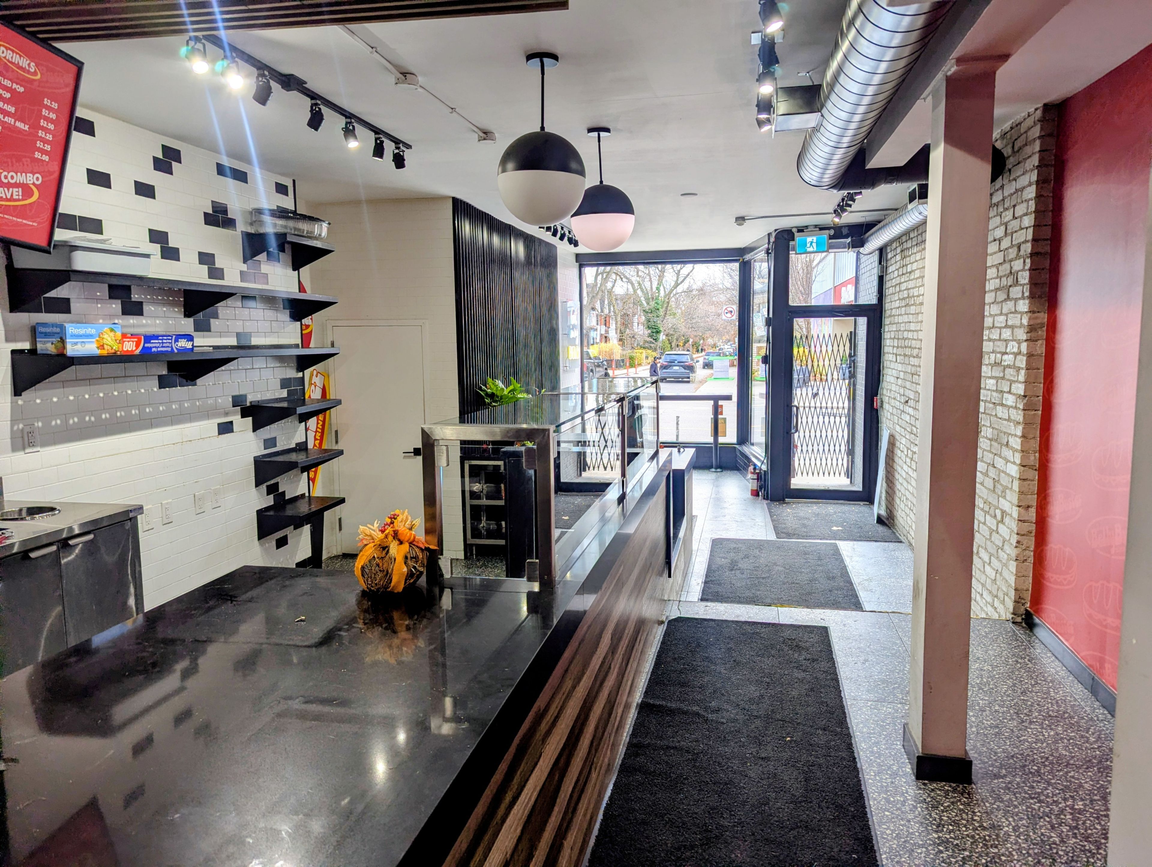 • Spacious serving counter and front window seating for customers.