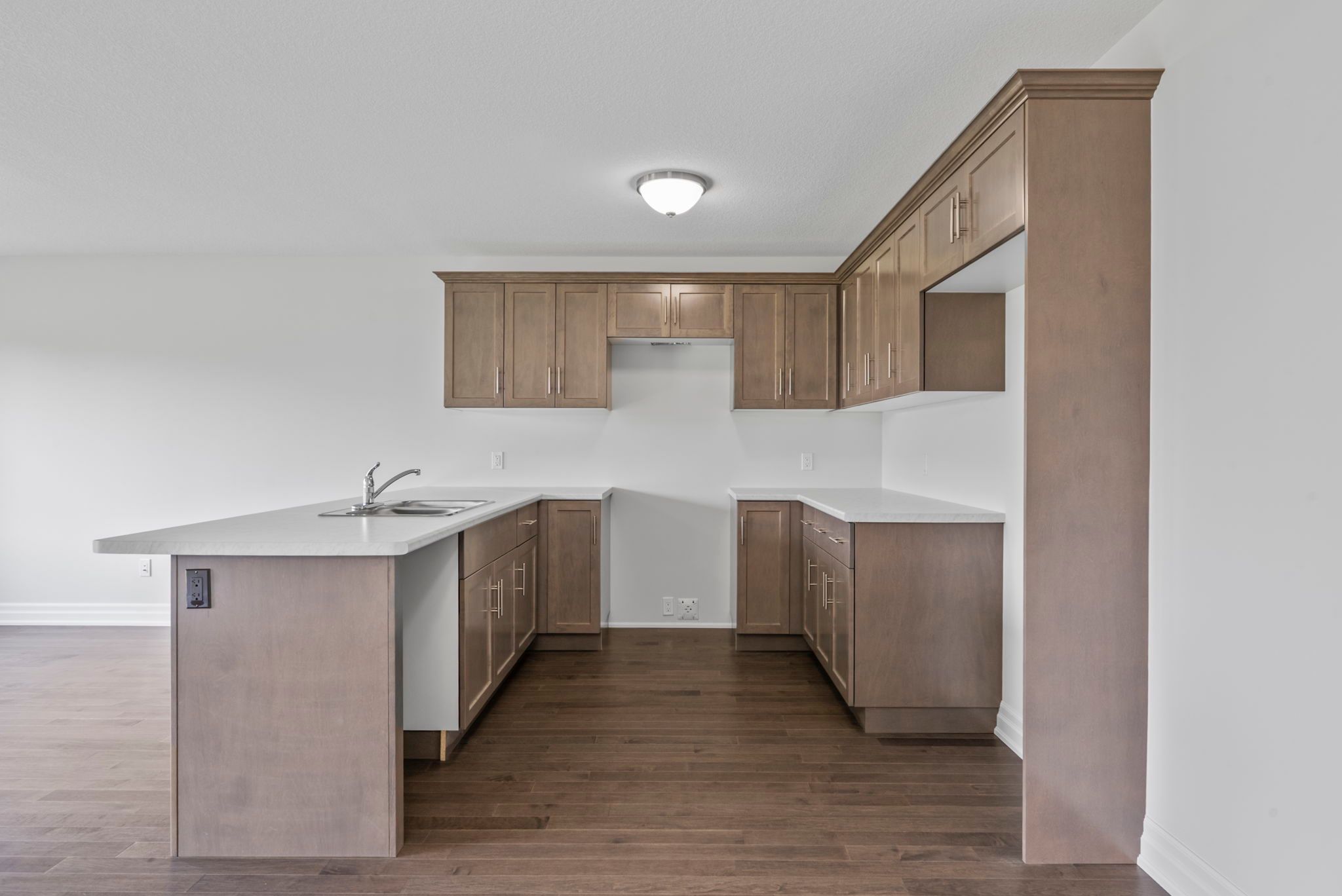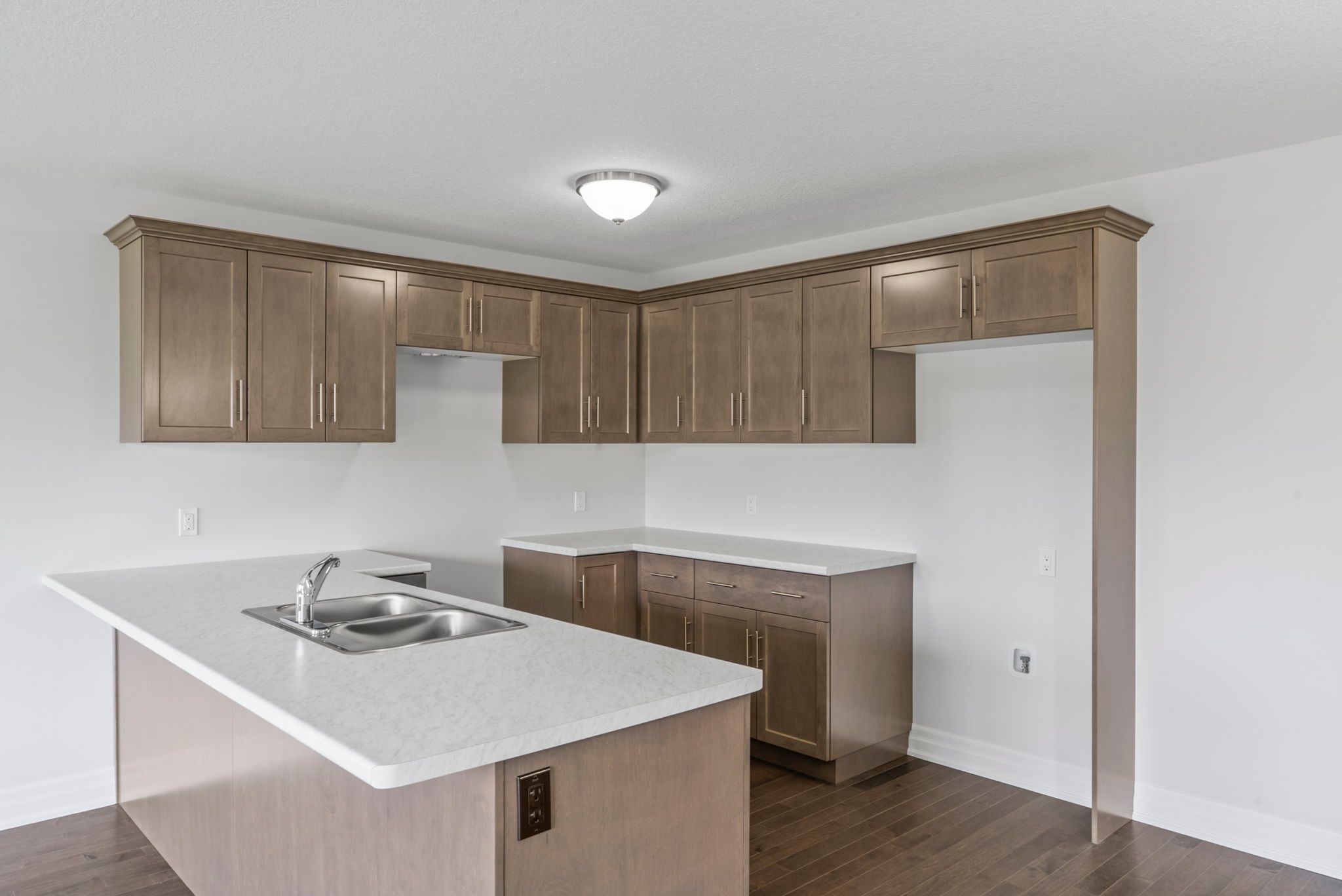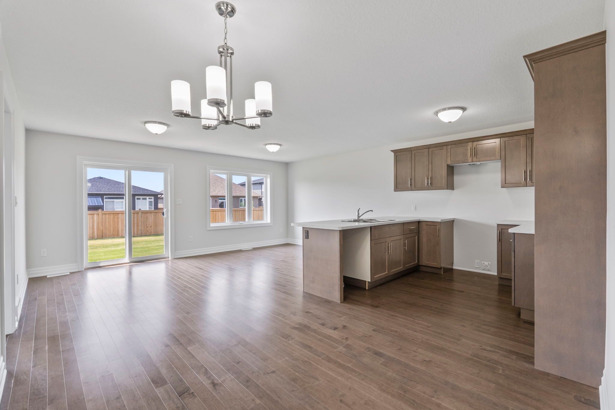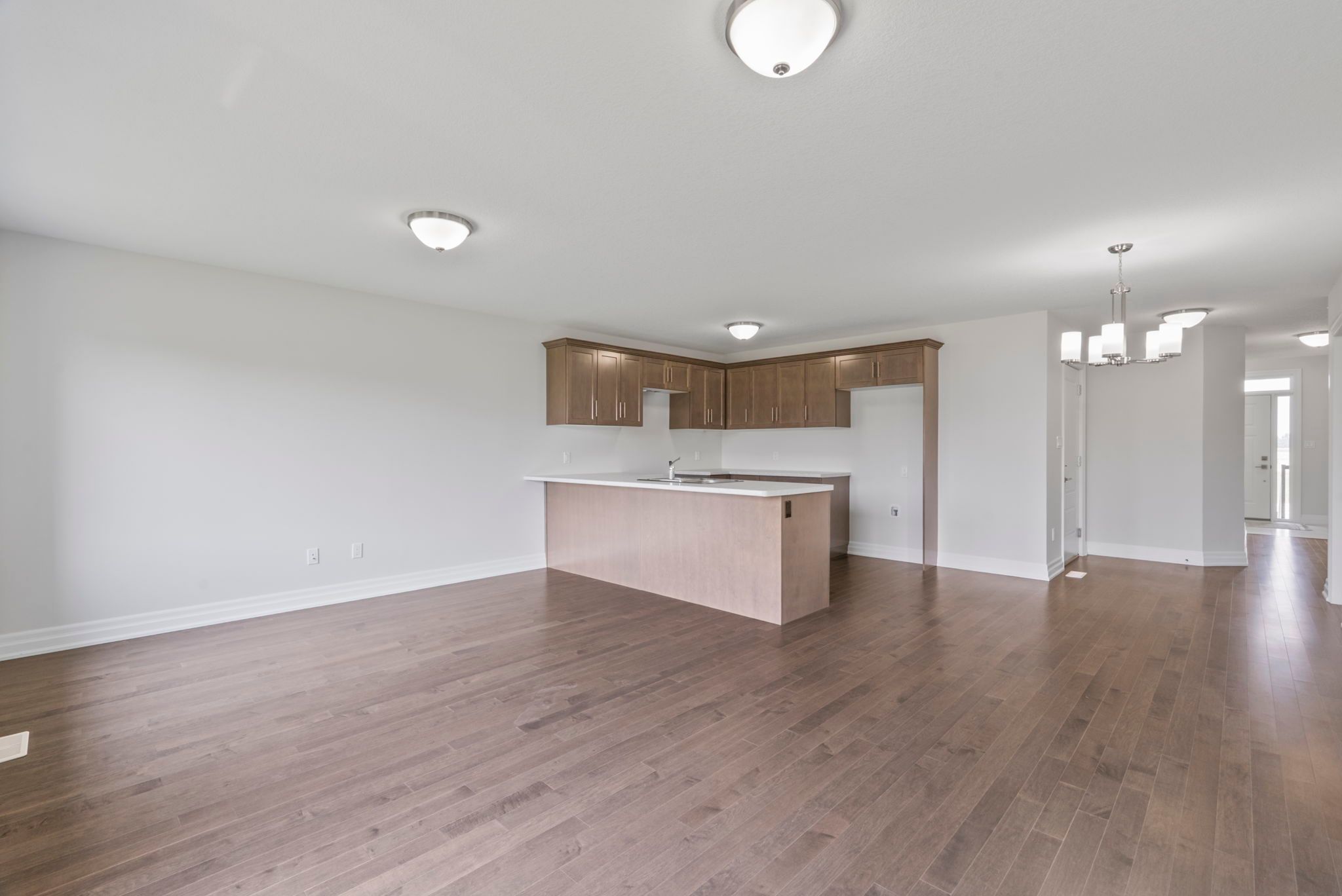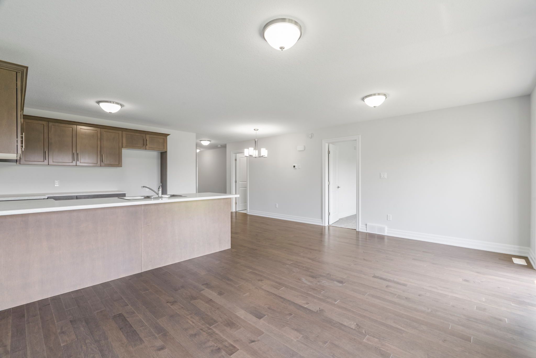 • Open-concept living area with Canadian-made cabinetry and island.