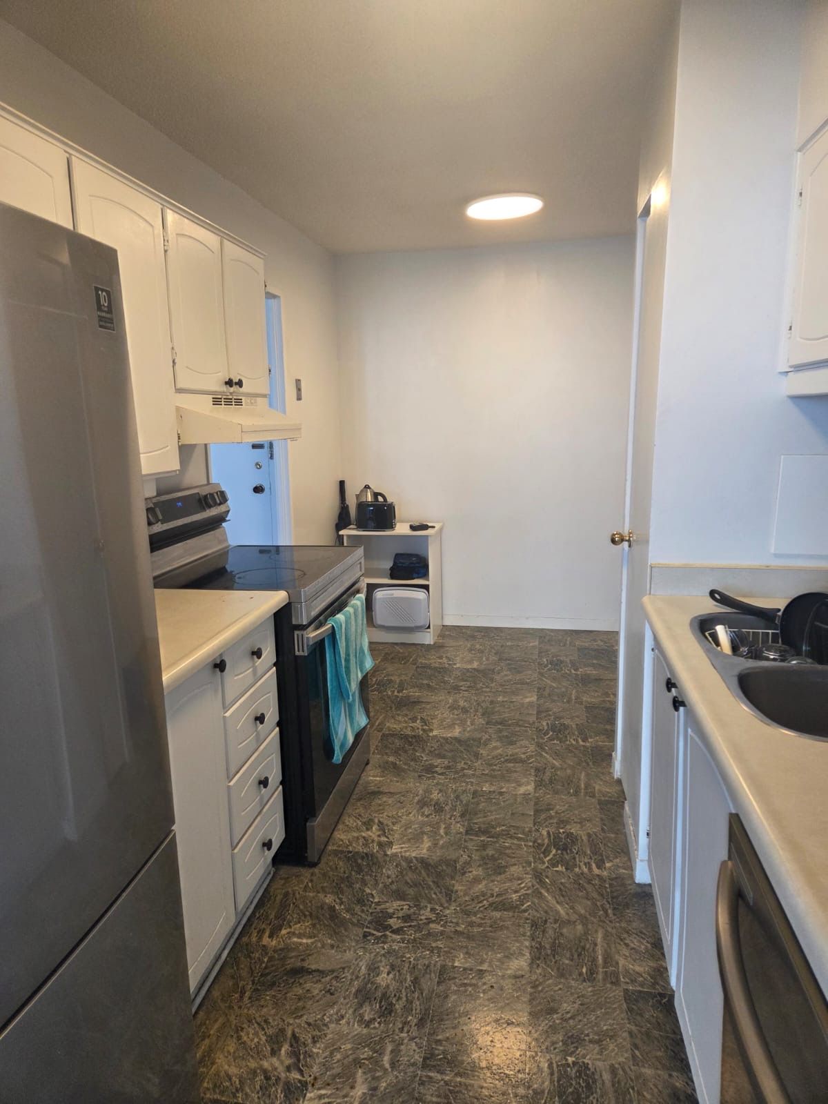 • Modern kitchen appliances and renovated bathroom add convenience.