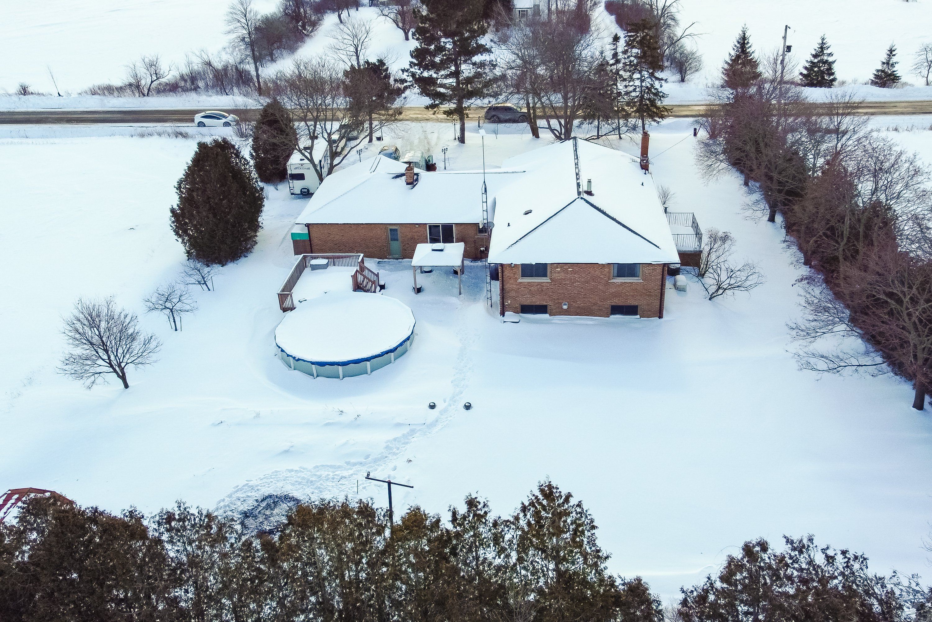 Looking for a peaceful country property just minutes from town? This oversized raised bungalow offers over 3,800 sq. Ft. Of finished living space, surrounded by mature trees and open countryside for exceptional privacy and tranquility. The thoughtfully designed layout features 4 bedrooms, 2. 5 bathrooms, and an additional main-floor family room-a rare find in a home of this style. Enjoy a bright, open interior with updated bathrooms, a large renovated kitchen, and an abundance of natural light throughout. Start your mornings with coffee on the deck off the kitchen, or unwind by the cozy family room fireplace, capable of heating the home if needed. The fully finished basement expands your living space with a majestic home office, craft room or optional bedroom, oversized recreation room, and a large laundry/utility area, plus a generous crawl space for exceptional storage. Notable updates include a 50-year shingle roof (2020), eaves, fascia, and soffits (2021), newer weeping tile and membrane, septic tank and bed cleaned (2018), additionally owned systems include a water softener, water treatment system, reverse osmosis, and hot water tank. With space, privacy, and a layout that's hard to find, this property offers the best of country living with everyday convenience. Don't miss this opportunity
