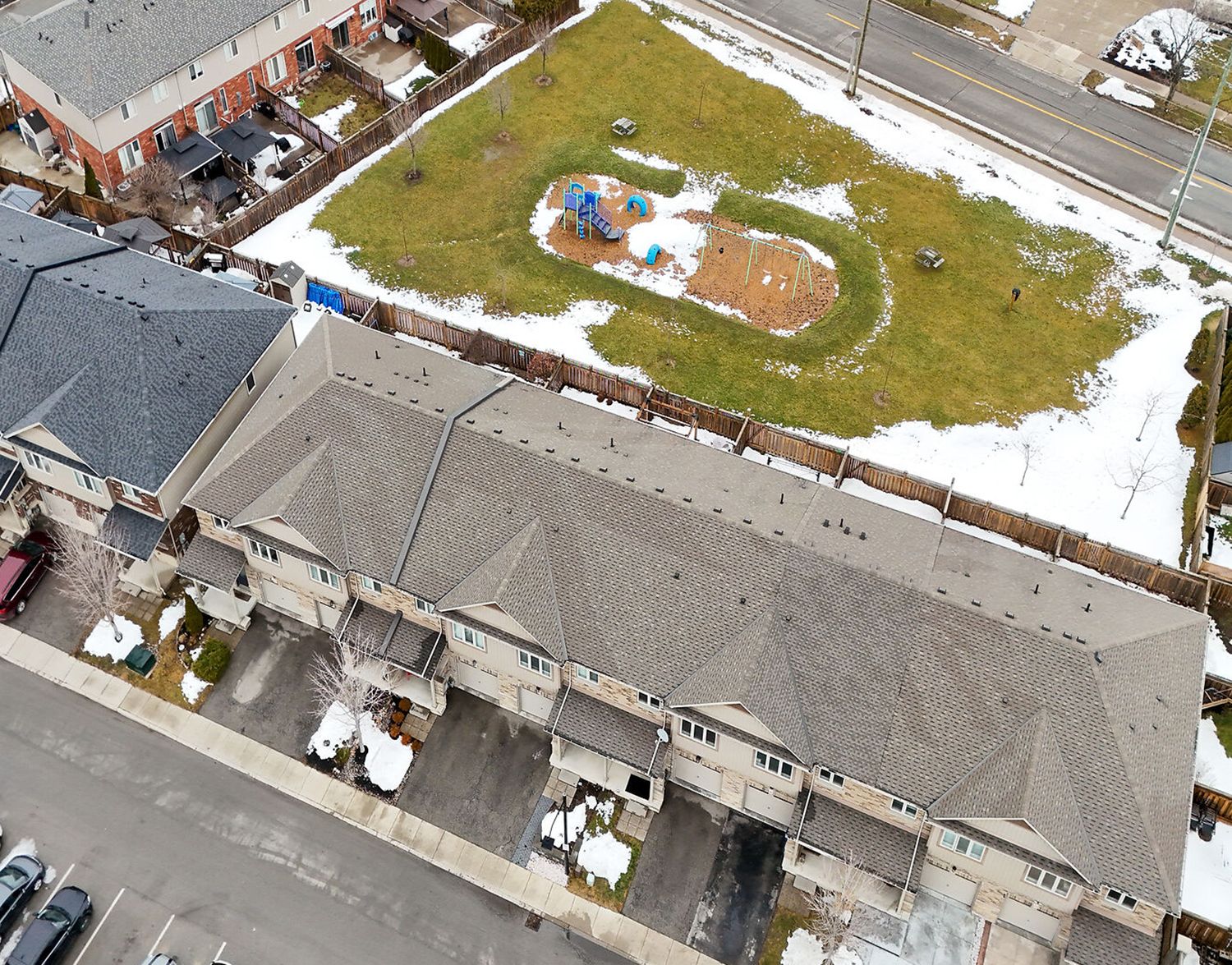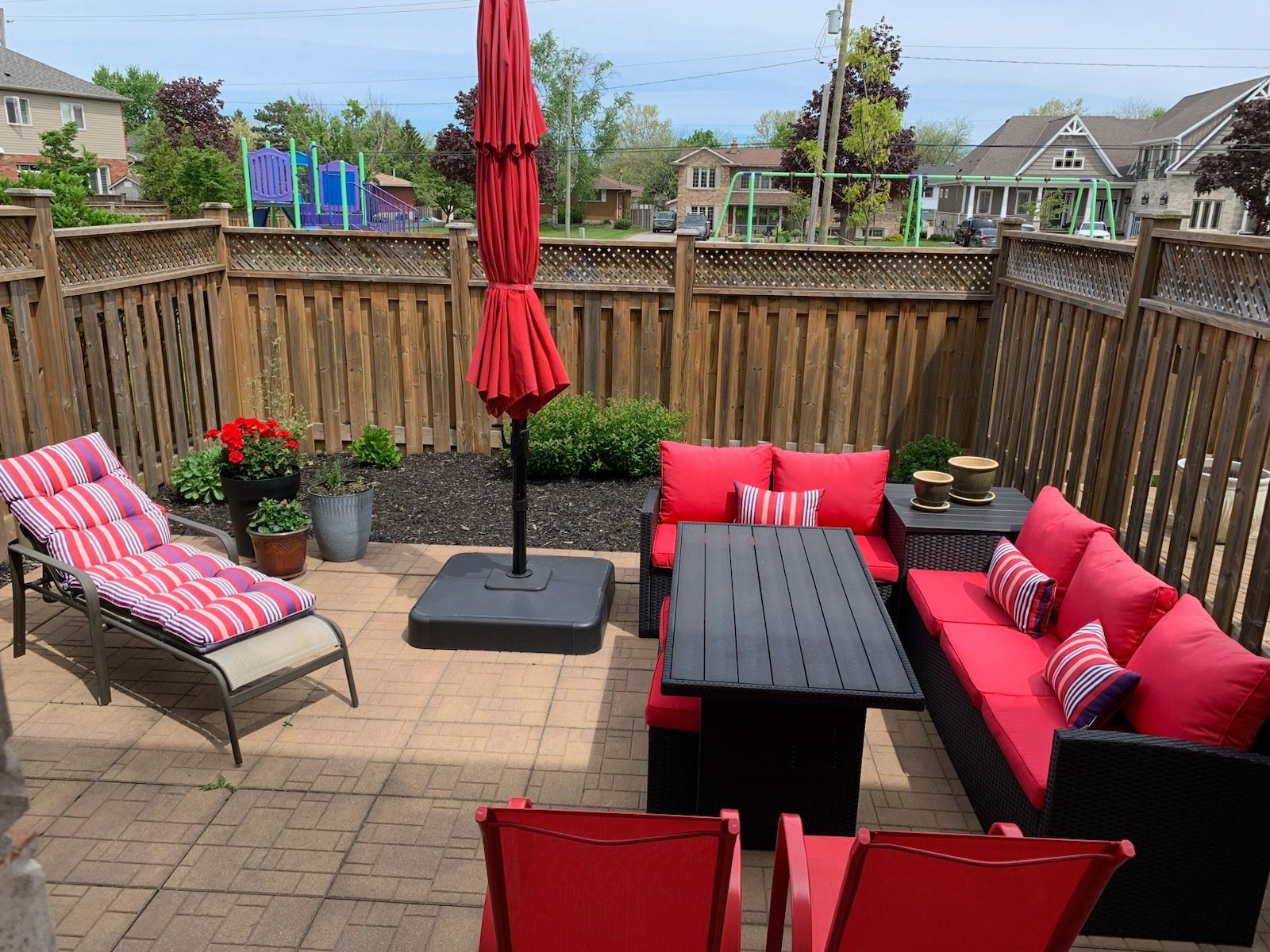 • Private, fenced backyard overlooks a picturesque park.