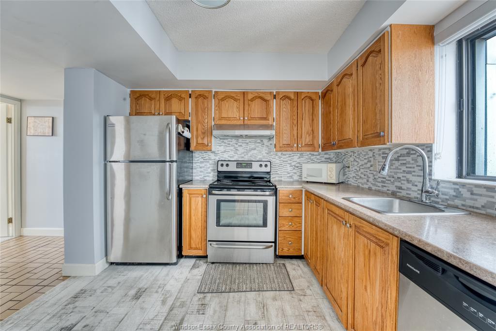 Upper-level corner unit, beautifully updated and move-in ready! This bright and spacious suite features 2 bedrooms and 2 full bathrooms, including a private ensuite. The functional eat-in kitchen offers classic oak cabinetry, included appliances, and the added bonus of a rare window, filling the space with natural light and showcasing stunning views of the detroit river and skyline. The unit is finished with durable tile flooring throughout the main living areas, with comfortable flooring in the bedrooms. Enjoy the convenience of an oversized double storage unit and one underground heated parking space, residents have access to an impressive selection of amenities, including a saltwater indoor pool, hot tub, sauna, fitness centre, racquetball and squash courts, billiards, ping pong, and a car wash area. The rooftop skyline party room is a standout feature, perfect for entertaining or relaxing while taking in the views. A fantastic opportunity to lease in a well-maintained building with resort-style amenities! Tenant is responsible for utilities. Minimum 1 year lease, first, last and key deposit due at signing.