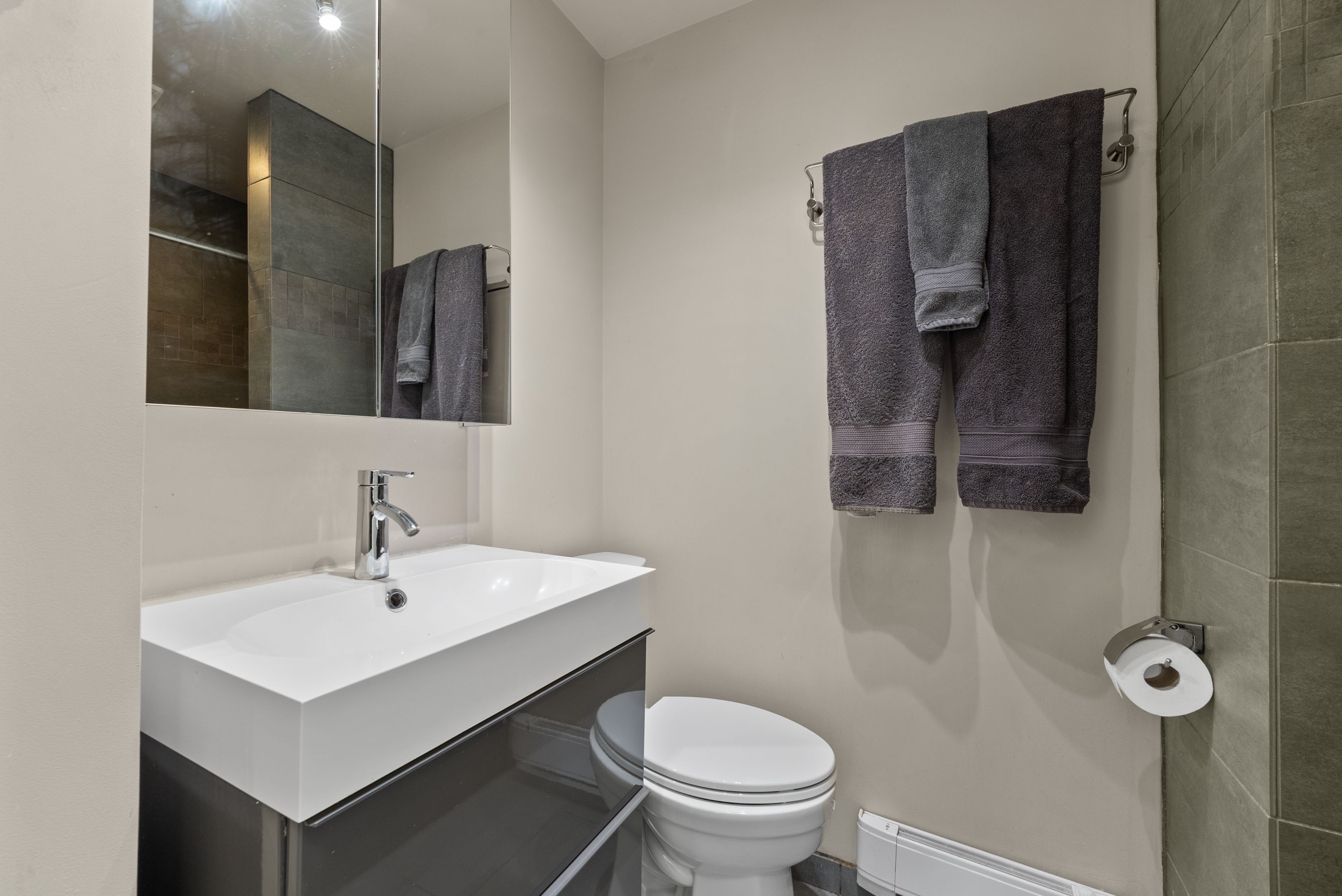 • Spacious 2,300 square feet, offering three bedrooms and three full baths.