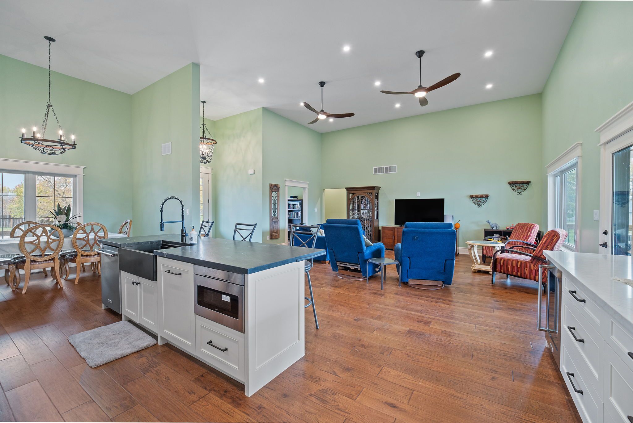 • Open-concept layout with soaring 14' ceilings for a spacious feel.