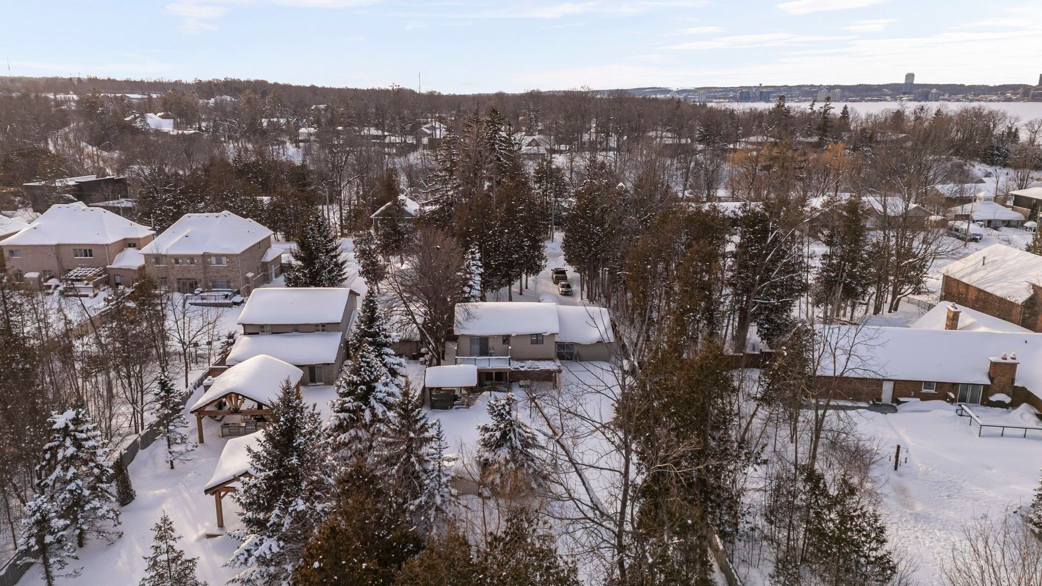 Tucked into a quiet, family-friendly neighbourhood that feels more country than city, this well-cared-for home offers a rare blend of privacy, space, and proximity to the water. Set on a beautifully landscaped lot with mature trees and extensive perennial gardens, the backyard is a true urban oasis, complete with an in-ground pool, natural gas heater, hot tub with enclosure, pergola-covered deck, and plenty of room to entertain or relax in total privacy. Inside, the home is thoughtfully laid out with generous spacing across every level, creating a comfortable flow for everyday living. The living room serves as the heart of the home, highlighted by a soaring ceiling, abundant natural light, and an electric fireplace that adds warmth and character. The kitchen has been refreshed with updated cabinetry, backsplash, lighting, and newer appliances, while cornice moulding and updated flooring add subtle elegance throughout. The primary bedroom offers a peaceful retreat, featuring a charming private deck overlooking the backyard, ideal for morning coffee or quiet evenings. Additional updates include a professionally painted interior in 2025, modernized lighting with added pot lights, a barn door accent to the primary ensuite, and updated deck railings. Major mechanical and structural improvements provide peace of mind, including a furnace (2015), air conditioner (2015), hrv system (2015), 200-amp electrical service, and a roof replaced in 2018. A large driveway with parking for up to 10 vehicles adds everyday convenience. Located within walking distance to tollendale park, the gables trail, schools, and the waterfront, and just minutes to beaches, the marina, downtown, shopping, and highway access, this is a home that supports both lifestyle and location. A welcoming space filled with family memories, summer entertaining, and natural beauty, ready for its next chapter.