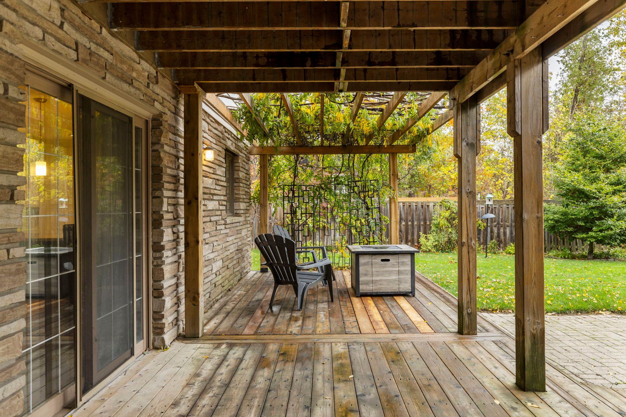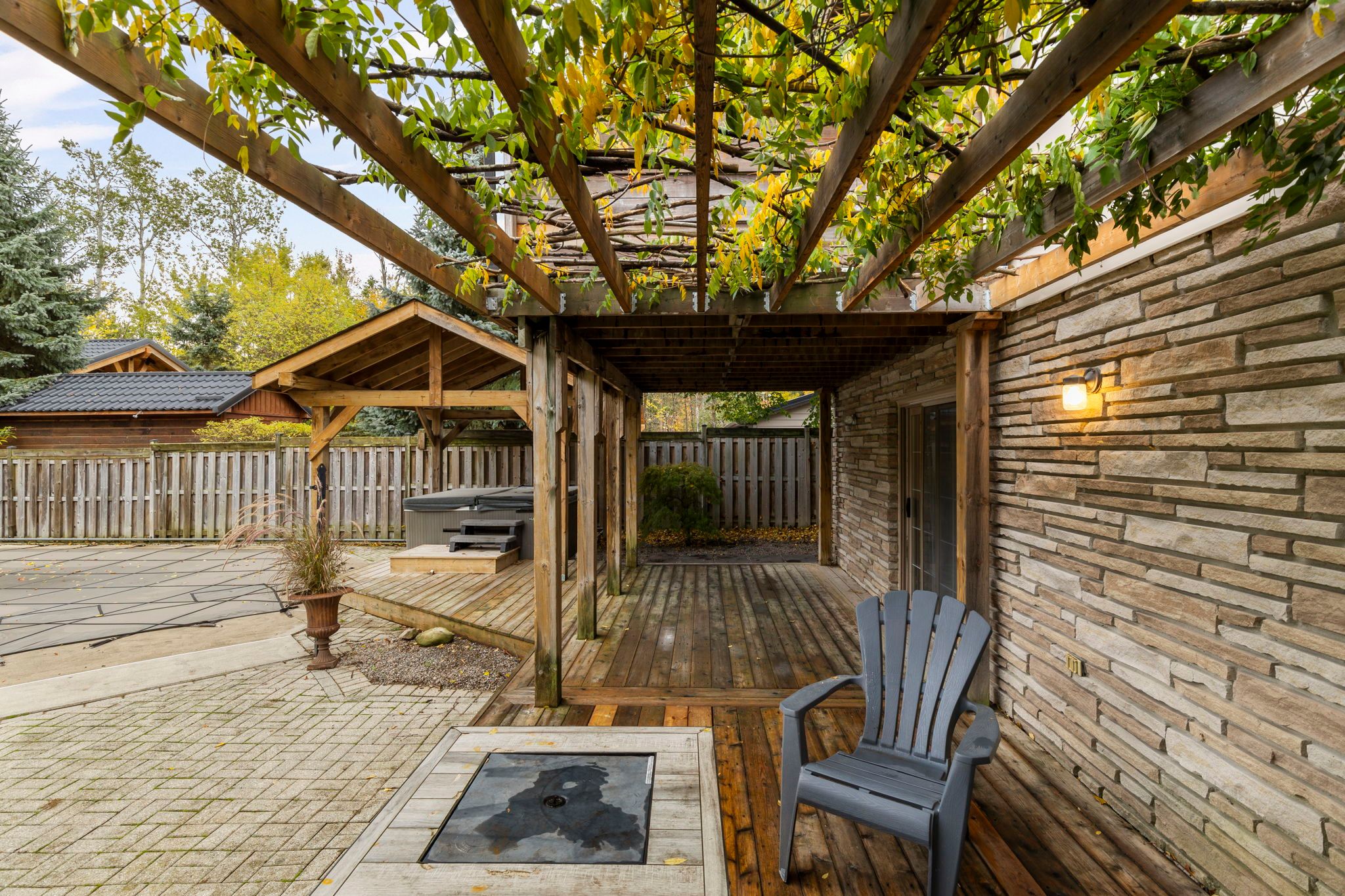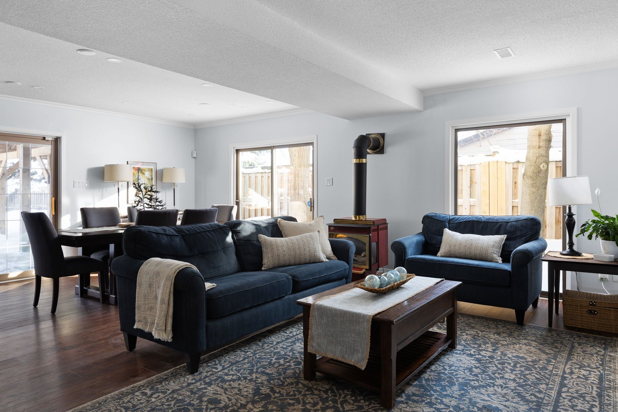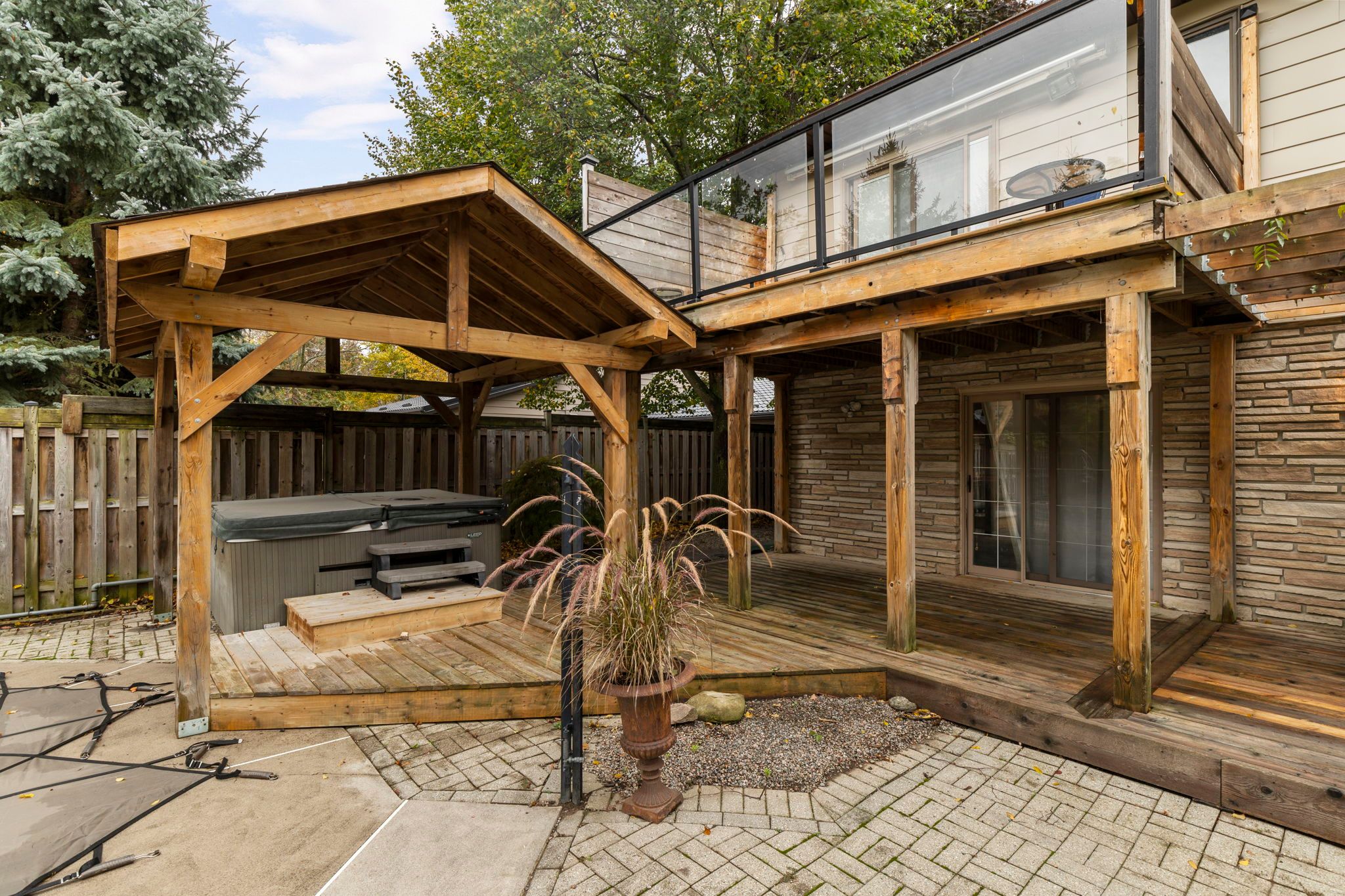 Tucked into a quiet, family-friendly neighbourhood that feels more country than city, this well-cared-for home offers a rare blend of privacy, space, and proximity to the water. Set on a beautifully landscaped lot with mature trees and extensive perennial gardens, the backyard is a true urban oasis, complete with an in-ground pool, natural gas heater, hot tub with enclosure, pergola-covered deck, and plenty of room to entertain or relax in total privacy. Inside, the home is thoughtfully laid out with generous spacing across every level, creating a comfortable flow for everyday living. The living room serves as the heart of the home, highlighted by a soaring ceiling, abundant natural light, and an electric fireplace that adds warmth and character. The kitchen has been refreshed with updated cabinetry, backsplash, lighting, and newer appliances, while cornice moulding and updated flooring add subtle elegance throughout. The primary bedroom offers a peaceful retreat, featuring a charming private deck overlooking the backyard, ideal for morning coffee or quiet evenings. Additional updates include a professionally painted interior in 2025, modernized lighting with added pot lights, a barn door accent to the primary ensuite, and updated deck railings. Major mechanical and structural improvements provide peace of mind, including a furnace (2015), air conditioner (2015), hrv system (2015), 200-amp electrical service, and a roof replaced in 2018. A large driveway with parking for up to 10 vehicles adds everyday convenience. Located within walking distance to tollendale park, the gables trail, schools, and the waterfront, and just minutes to beaches, the marina, downtown, shopping, and highway access, this is a home that supports both lifestyle and location. A welcoming space filled with family memories, summer entertaining, and natural beauty, ready for its next chapter.