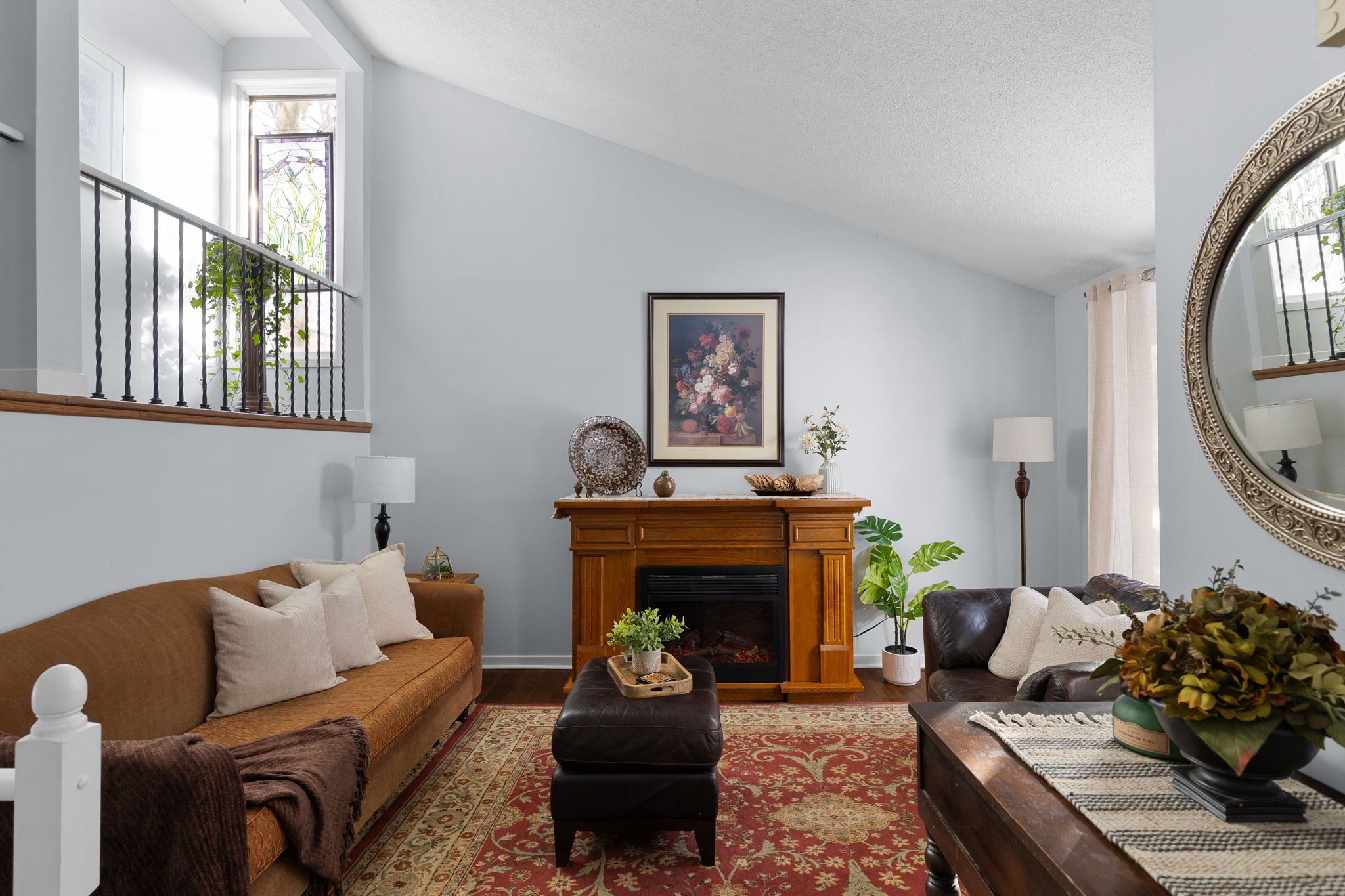 • Spacious interior layout with abundant light and a cozy electric fireplace.