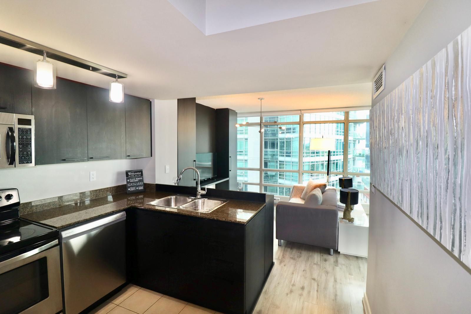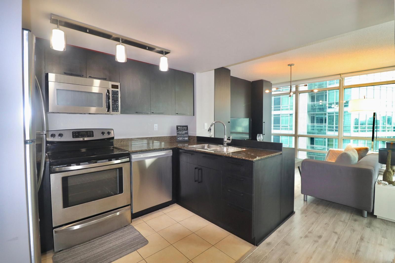 Client remarks all utilities included. Fully furnished with elegance, open concept layout, combined living/dining room, floor-to-ceiling windows, 1bed + separate den that can be used as 2nd bedroom. Custom cabinetry work in den, kitchen and family room . Lot's of natural light. Situated in the heart of the city, steps to amazing amenities. Amenities include: indoor basketball court, olympic lap pool, gym, sauna, terrace, bbq, party &theatre room. Walk to king west, fashion district, rogers centre , chinatown & financial district. A perfect place for dt living! * mid term rental also available*