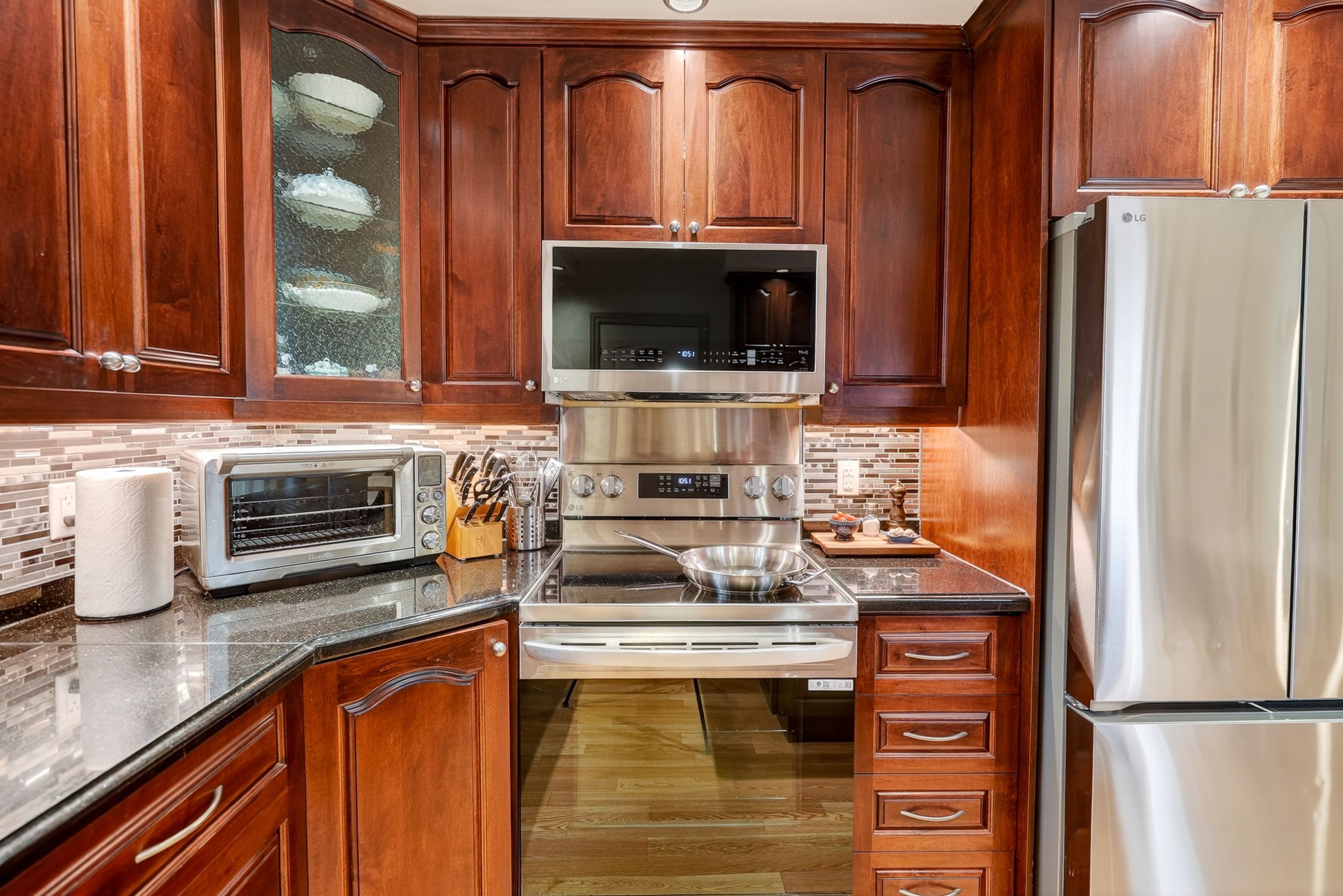• Updated gourmet kitchen with quartz countertops and large pantry.