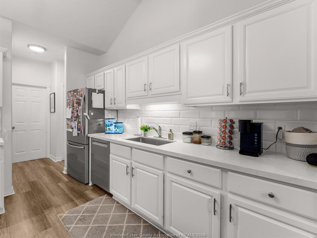 Welcome to tuscany crescent, nestled in the heart of st. Clair beach. This fully updated one-floor townhome offers effortless living with 2 bedrooms, 2 full bathrooms, main floor laundry, and beautiful vaulted ceilings that create an open, airy feel throughout. The finished basement includes a roughed-in kitchen, providing excellent potential for additional living space or in-law accommodations. Enjoy a double car garage and a low-maintenance lifestyle with exterior maintenance and ground maintenance, property management. Located within walking distance to top-rated schools, waterfront marinas, beach grove, grocery stores, parks, and the st. Clair beach plaza. Residents also benefit from private community amenities including a pool and tennis courts, carefree living in one of the area’s most sought-after neighbourhoods.