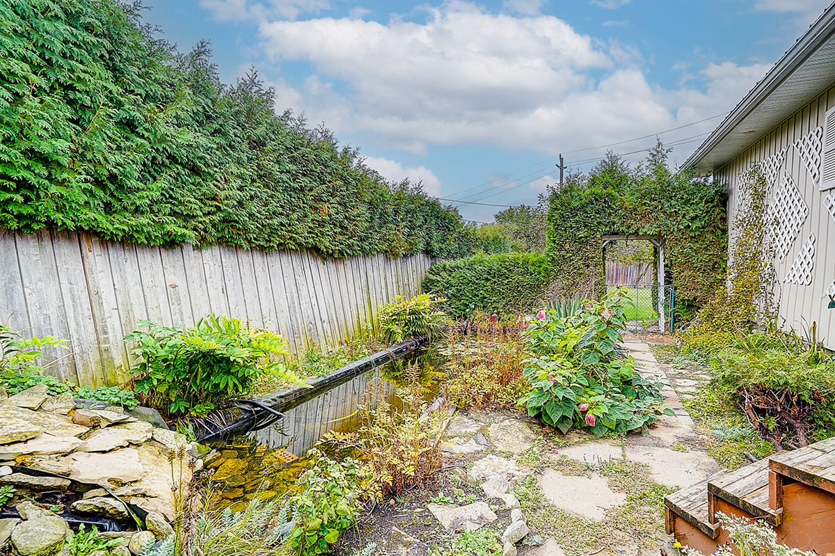Fridge, b/i dishwasher, washer, dryer, window blinds & water softener, 2 sheds, central vac and outdoor pond.