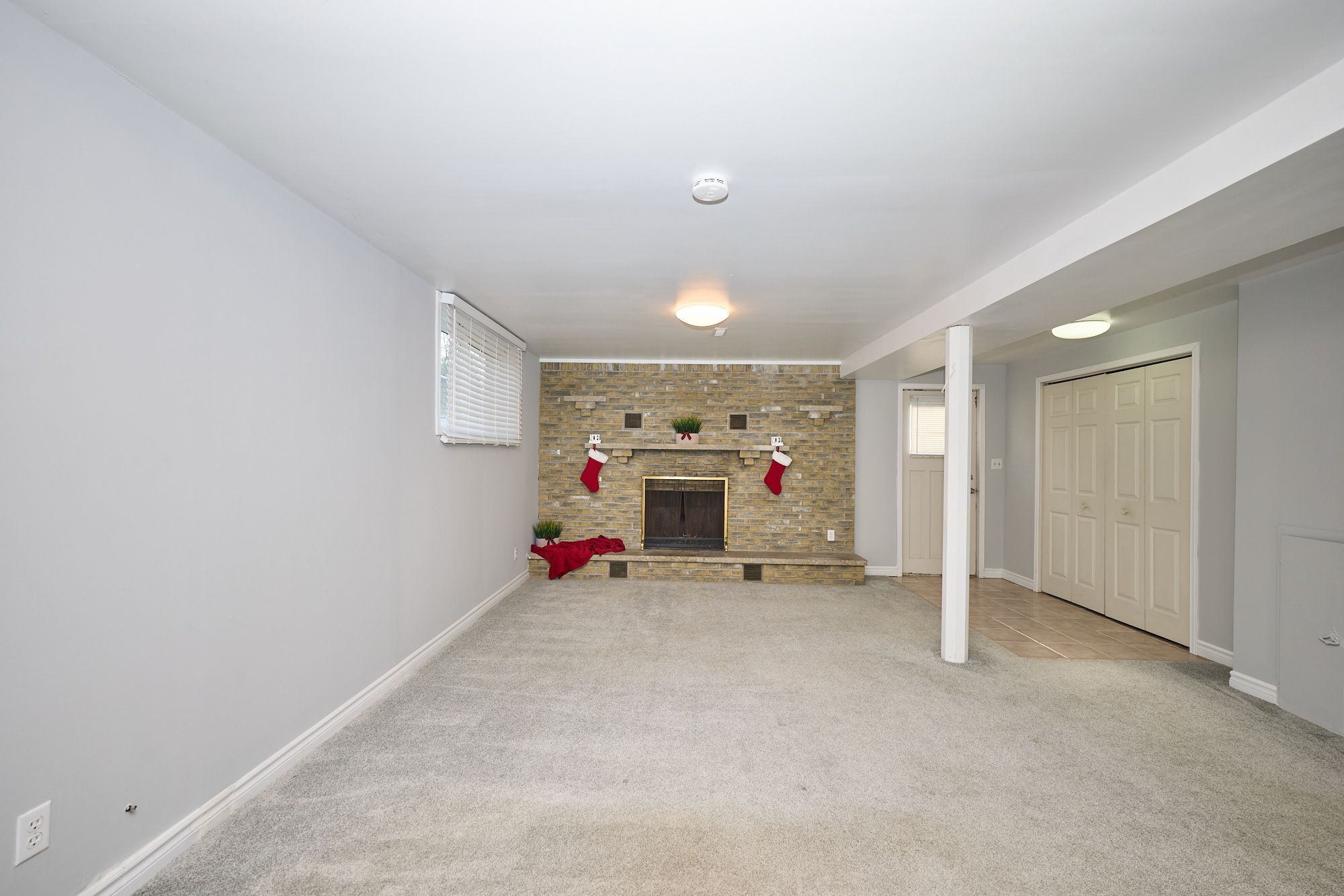 • Lower level features a rec room with wood-burning fireplace and backyard access.