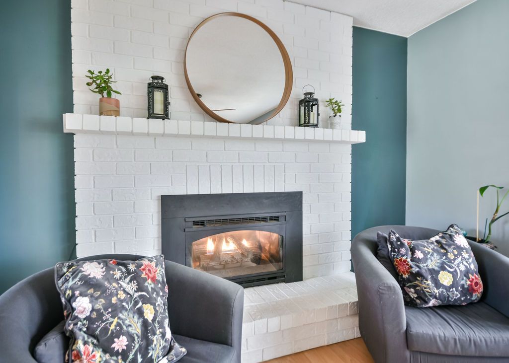 • Bright layout with laminate flooring and cozy gas fireplace.