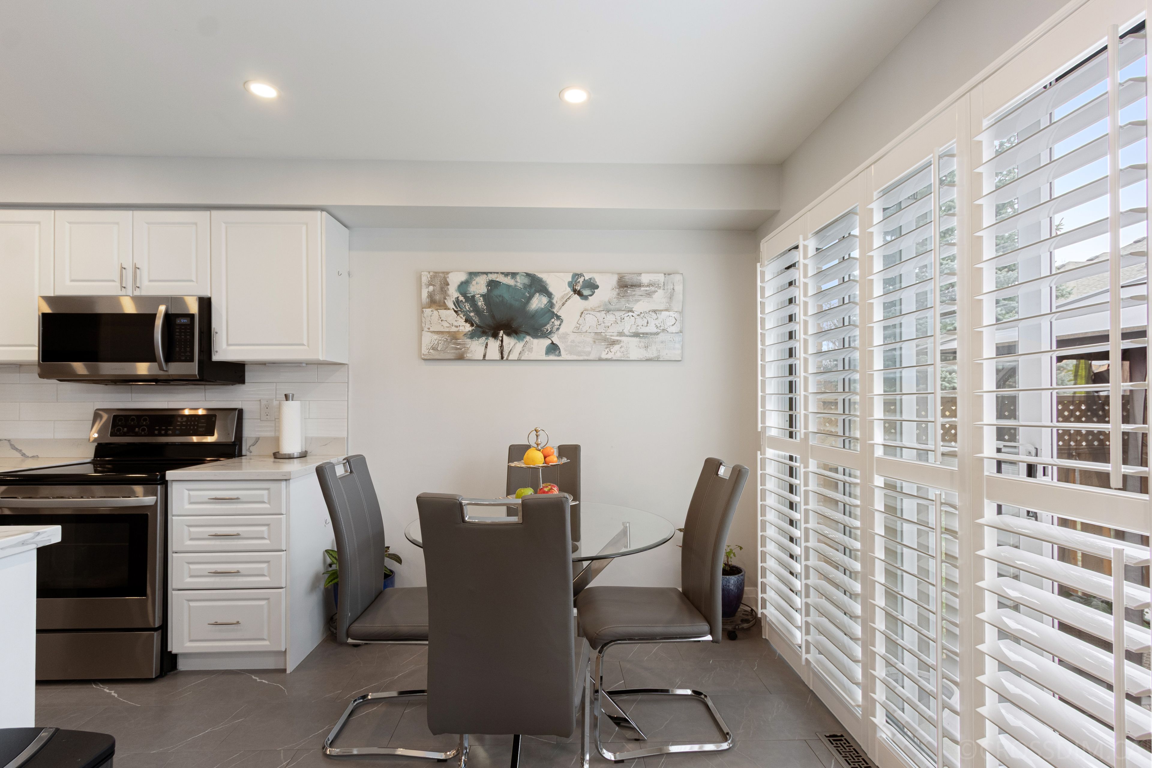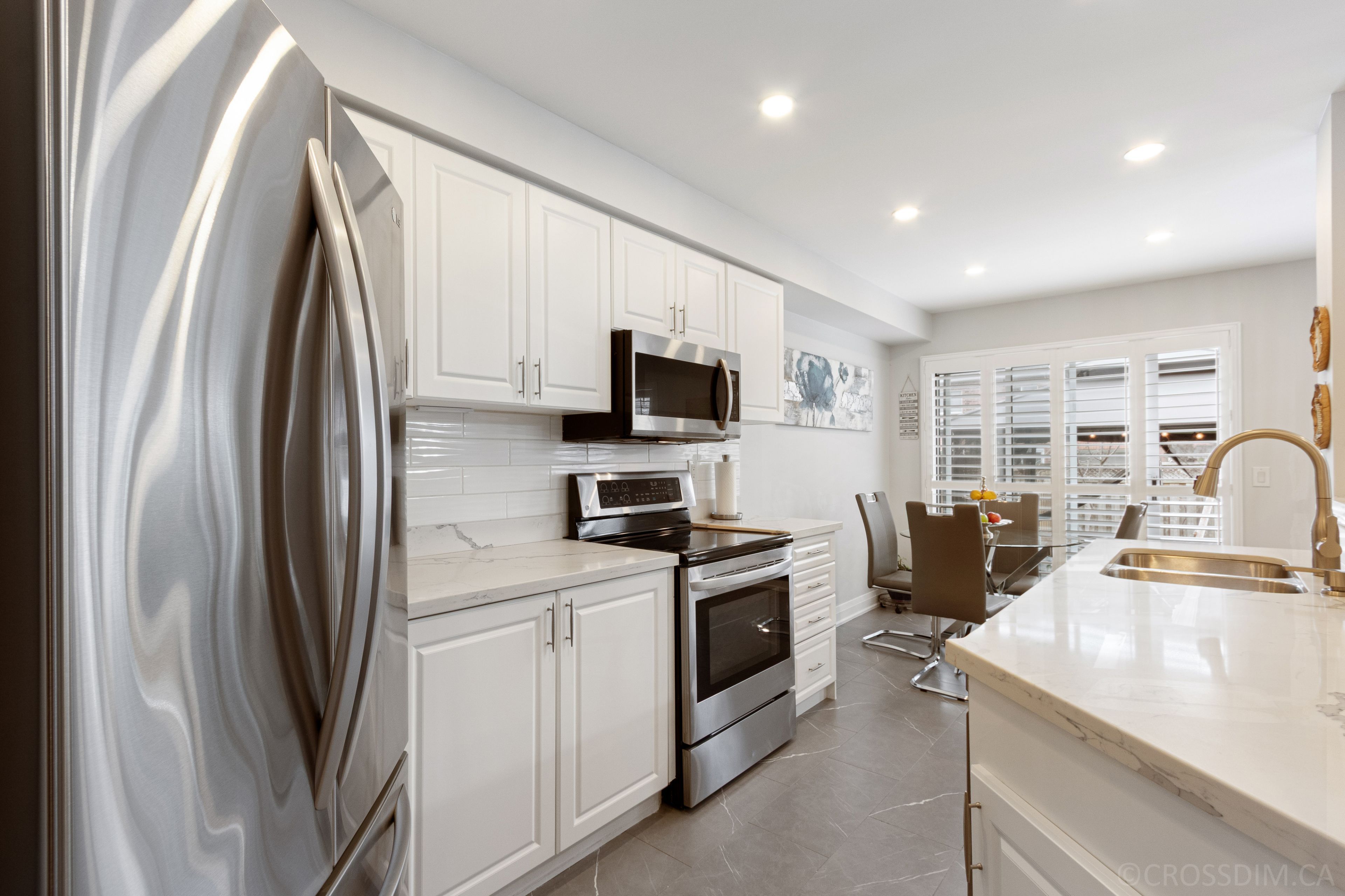 • Modern kitchen with quartz countertops and stainless steel appliances.