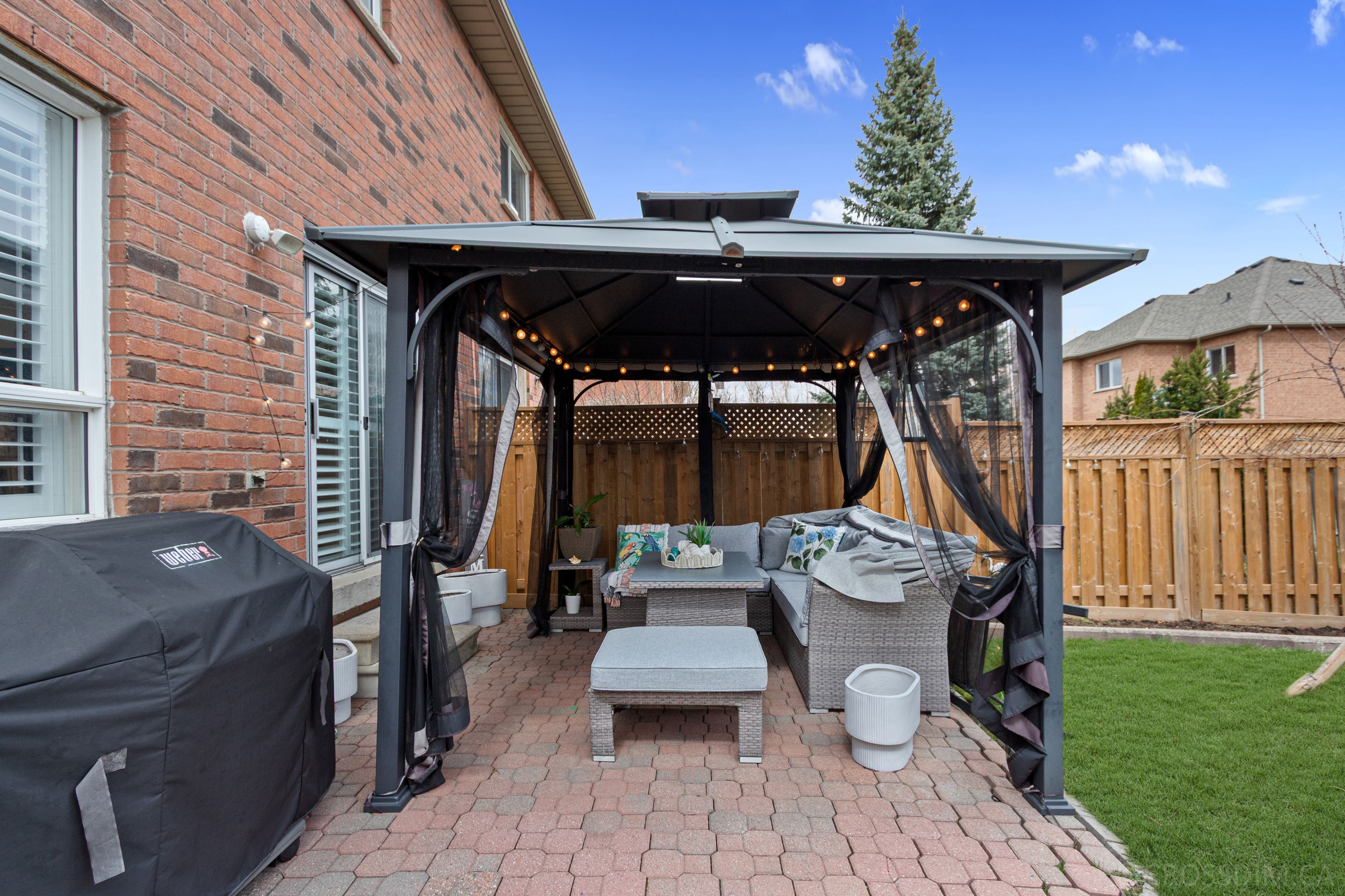 Welcome to this stunning, move-in-ready semi-detached home tucked away on a quiet, family-friendly street in the coveted lisgar/forest bluff community. Featuring 3 spacious bedrooms, 4 modern bathrooms, and a fully finished basement, this home effortlessly combines comfort, style, and functionality. The main floor offers a bright and open layout with a combined living/dining area, updated powder room, and inside garage access. The modern kitchen boasts quartz countertops, shaker cabinets, stainless steel appliances, california shutters, and a walkout breakfast area. A versatile family room completes the space, ideal for entertaining. Engineered hardwood flooring throughout the home and pot lights enhance the elegant flow. Upstairs, enjoy a convenient laundry room and a spacious primary bedroom with a walk-in closet and a 4-piece ensuite featuring a soaker tub and separate shower. Two additional bedrooms share a jack-and-jill bathroom, with all bathrooms showcasing granite vanities, modern fixtures, and thoughtful updates throughout. The finished basement has been freshly renovated throughout with recent upgrades, expanding your living space with a cozy fireplace, built-in storage, pot lights, luxury vinyl flooring, and a 4-piece bathroom-ideal for guests or a second family room. Notable exterior upgrades include stamped concrete steps and driveway, freshly painted garage door, updated fencing, and soffit pot lights for stylish curb appeal. Located minutes from top-rated schools (osprey woods public school / millers grove public school), parks (lisgar green), shopping centres (meadowvale town centre / erin mills town centre), restaurants, transit, and major highways (401/403/407), this home offers unparalleled convenience in a highly desirable mississauga neighbourhood. Don't miss your chance to make it yours!
