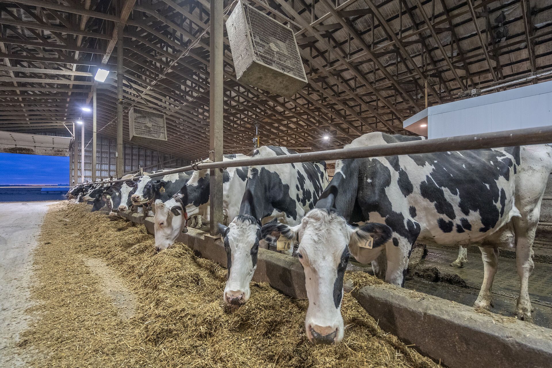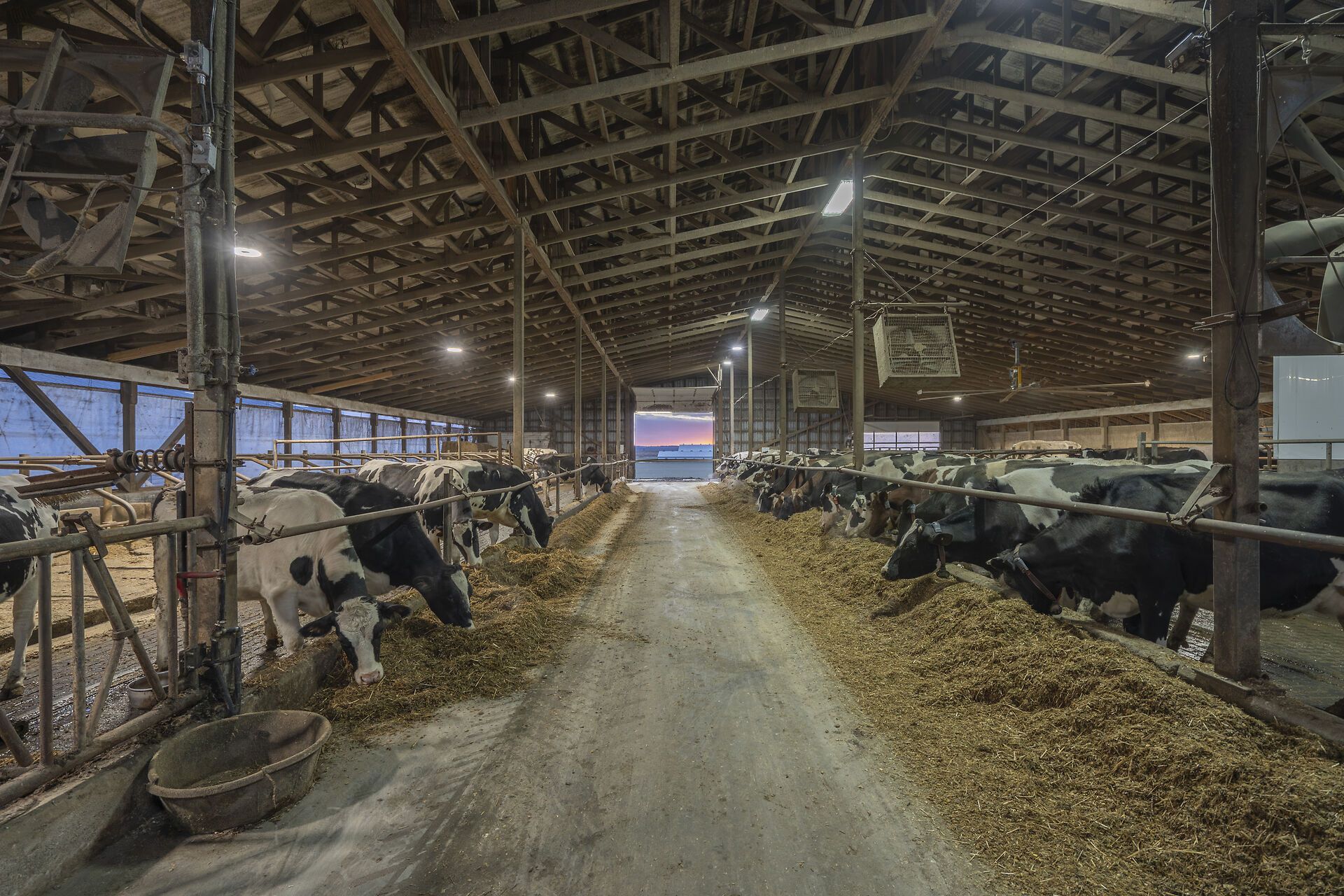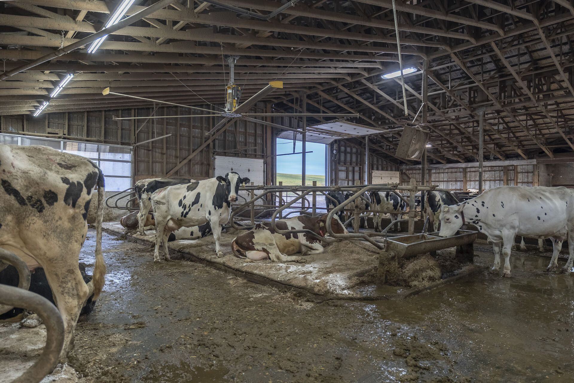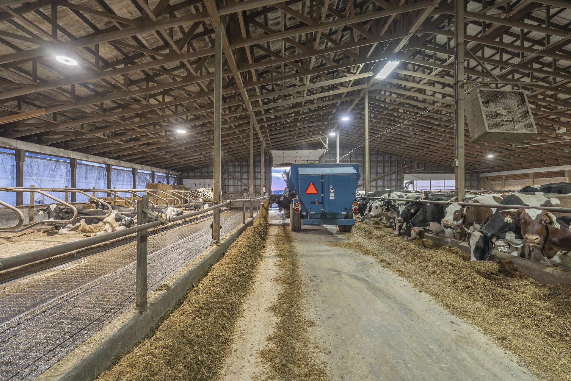 • Modern freestall barn featuring two robotic milkers and ample livestock space.