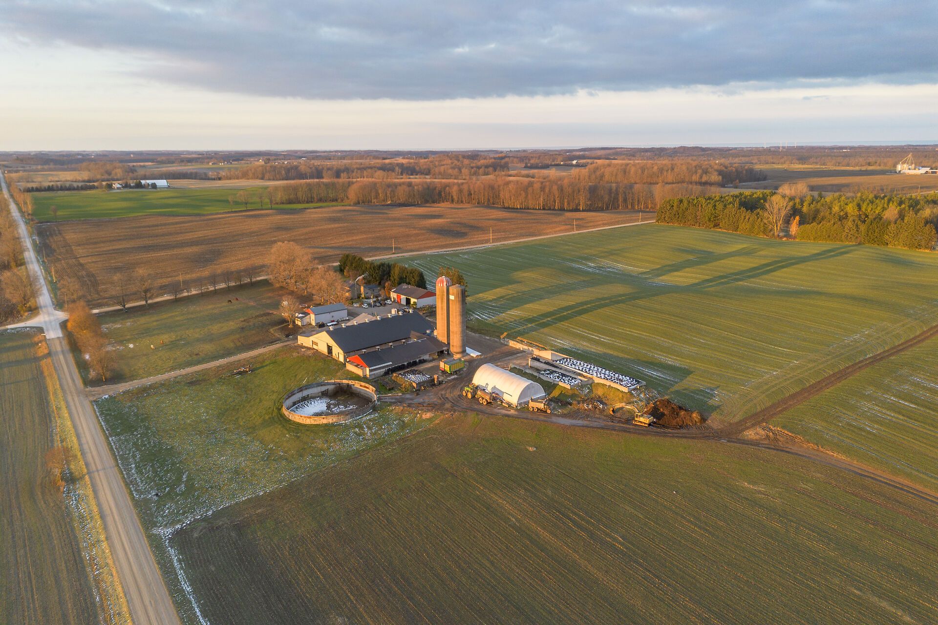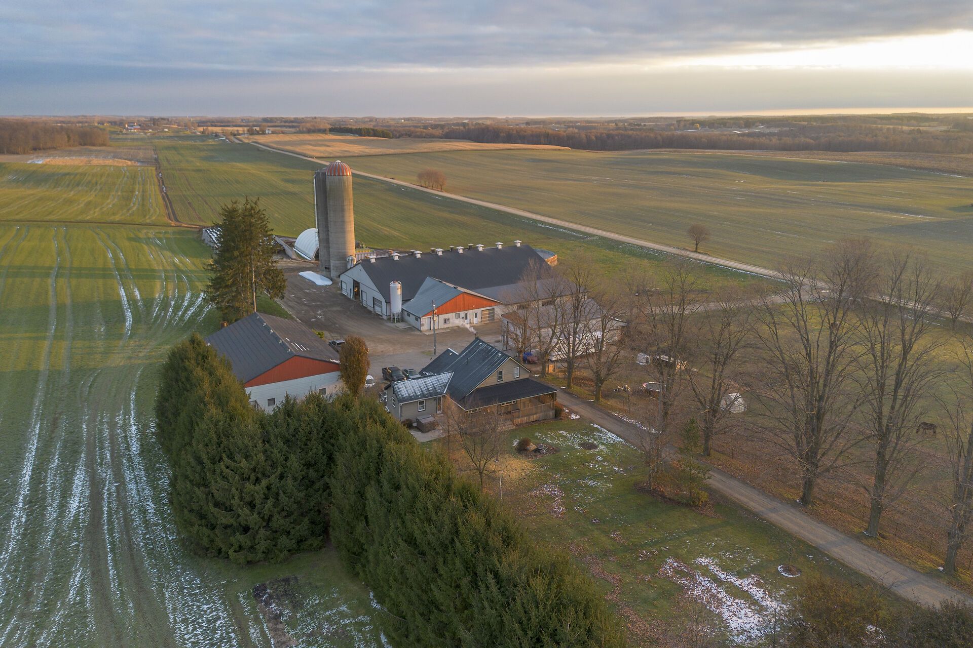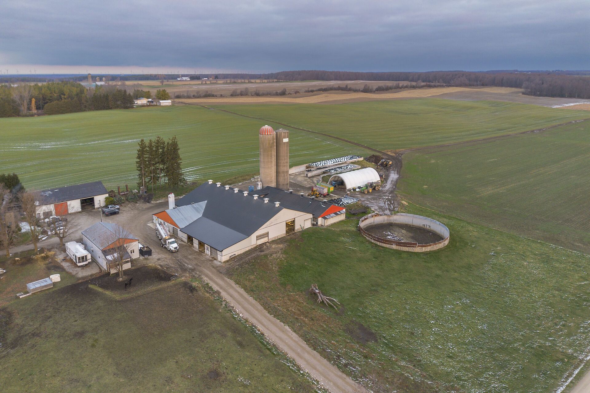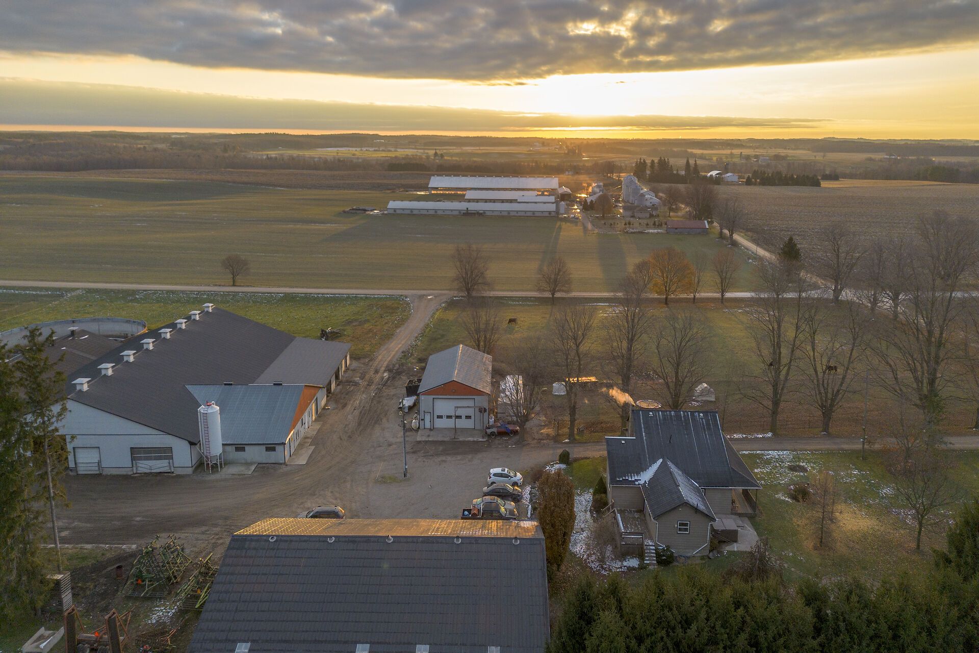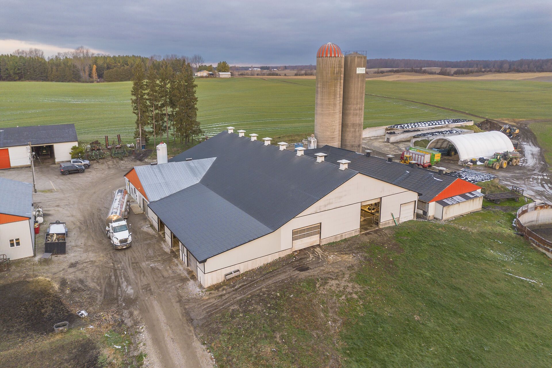 Welcome to this turnkey dairy operation, in the heart of huron county. Located just a few minutes from the town of auburn, this farm offers 92. 22 kg saleable quota with livestock and feed, all set on 189 acres. Fronting on two roads, this convenient corner farm comes with 175 workable acres of productive harriston loam and parkhill loam soil. Inside the freestall barn, you will find two a-4 lely robotic milkers installed in 2022, lely feed pusher, 107 stalls, pack area, and lots of room for young stock in two barns connected with a covered alley. There is ample room for milk storage in the 1600 gallon milk cooler. Manure is handled with alley scrapers, out to an 850,000 gallon manure pit and a bit of pack penning. Feed is stored in 2 large feed bunks as well as a 43 x 80 coverall. Outbuildings include an 80 x 60 drive shed and a 60 x 60 heated shop with concrete floor. The well maintained 4-bedroom, 2 bathroom home is perfect for a family, offering an expansive front yard with many mature trees, wrap around porch, and large living spaces.