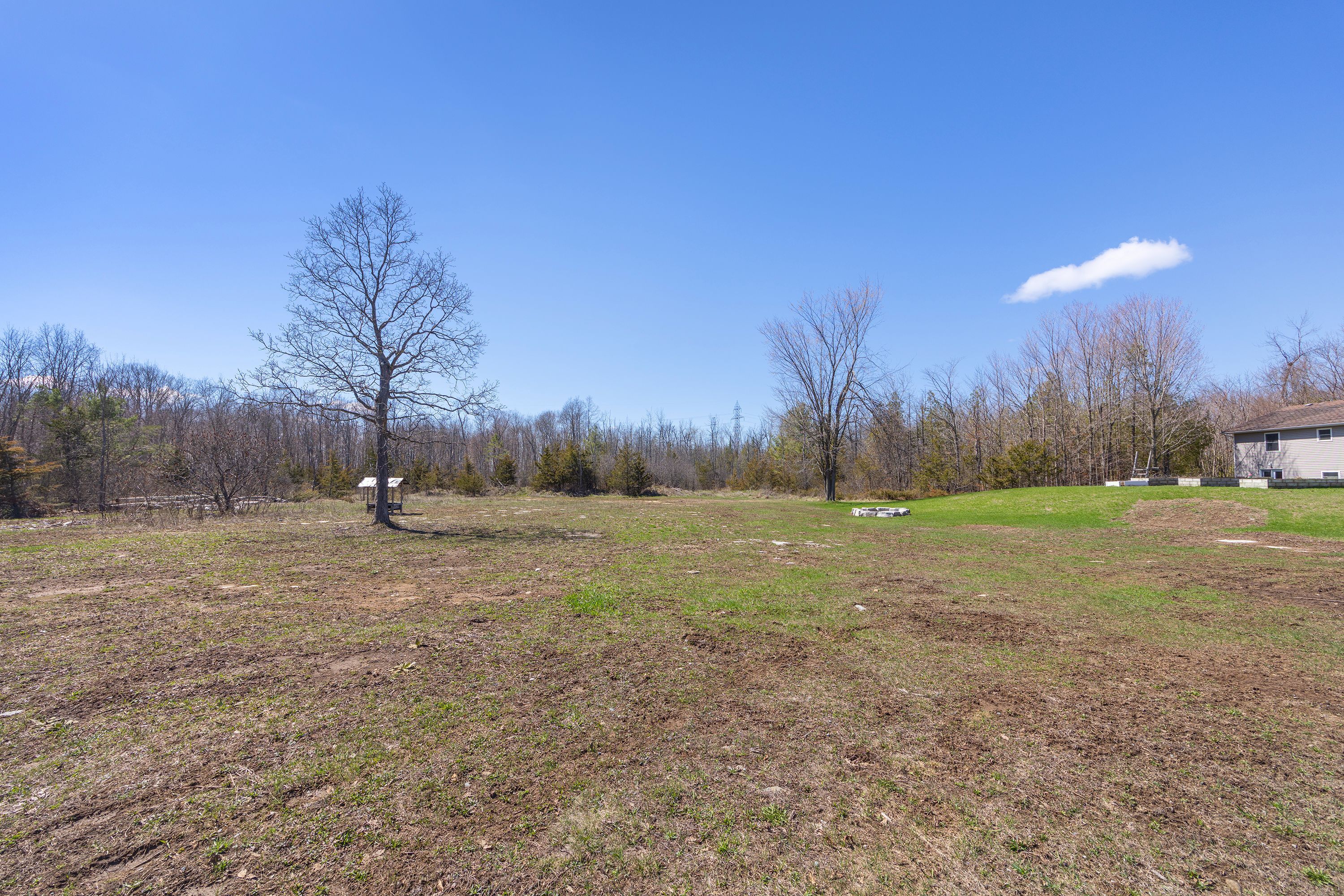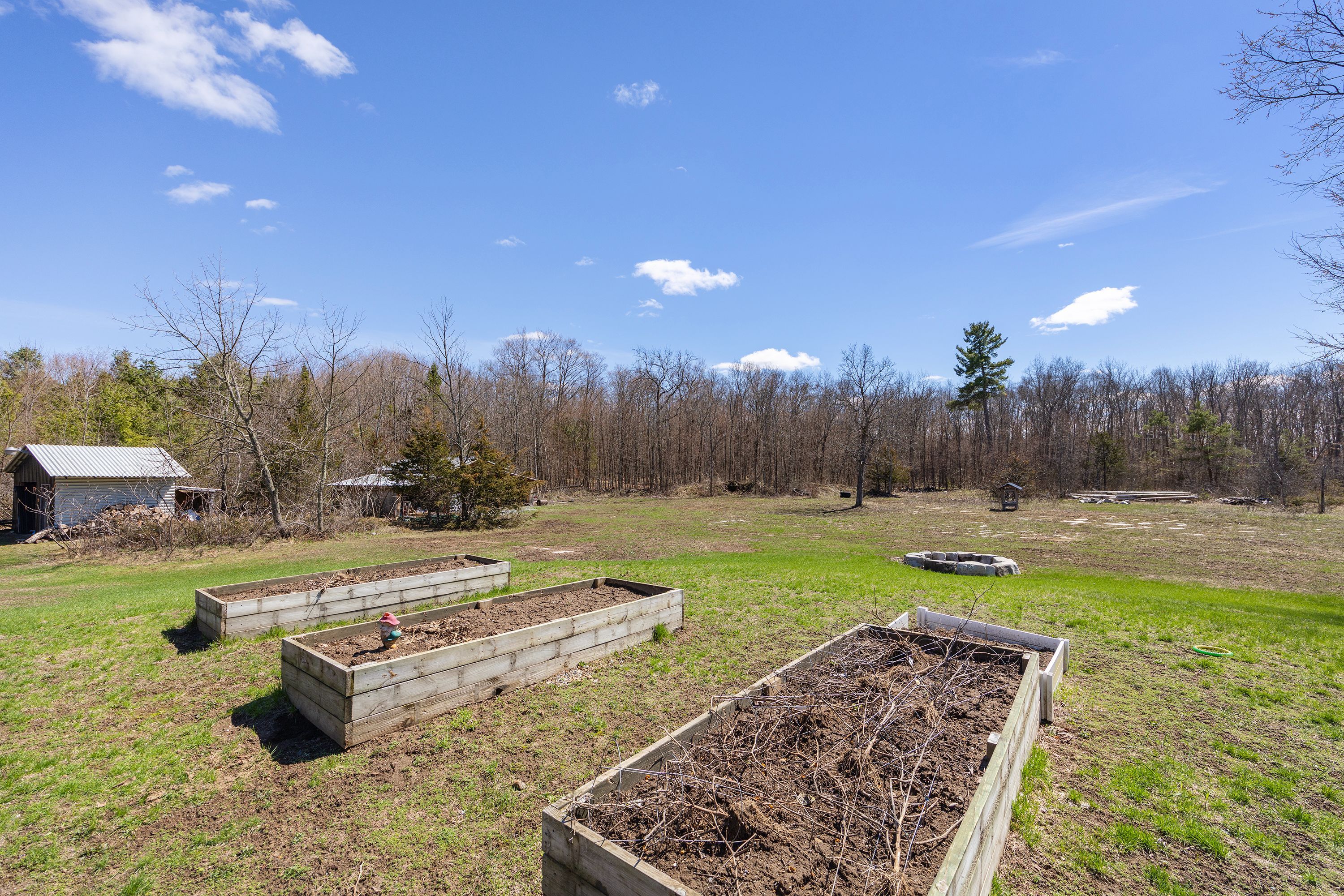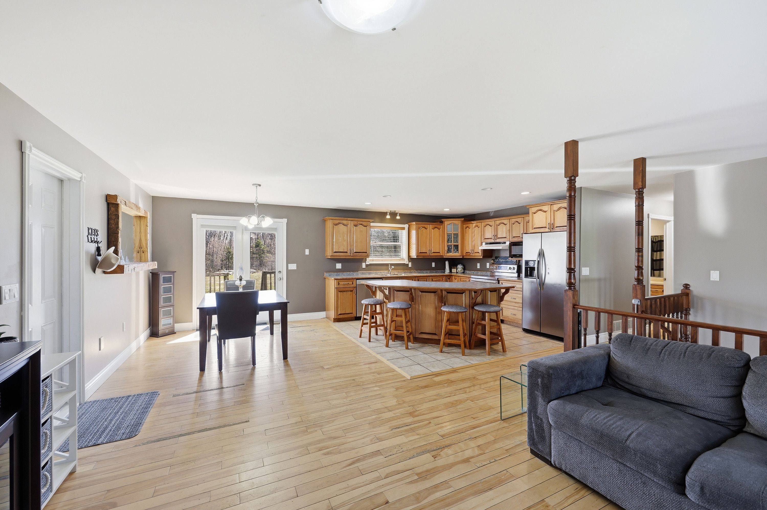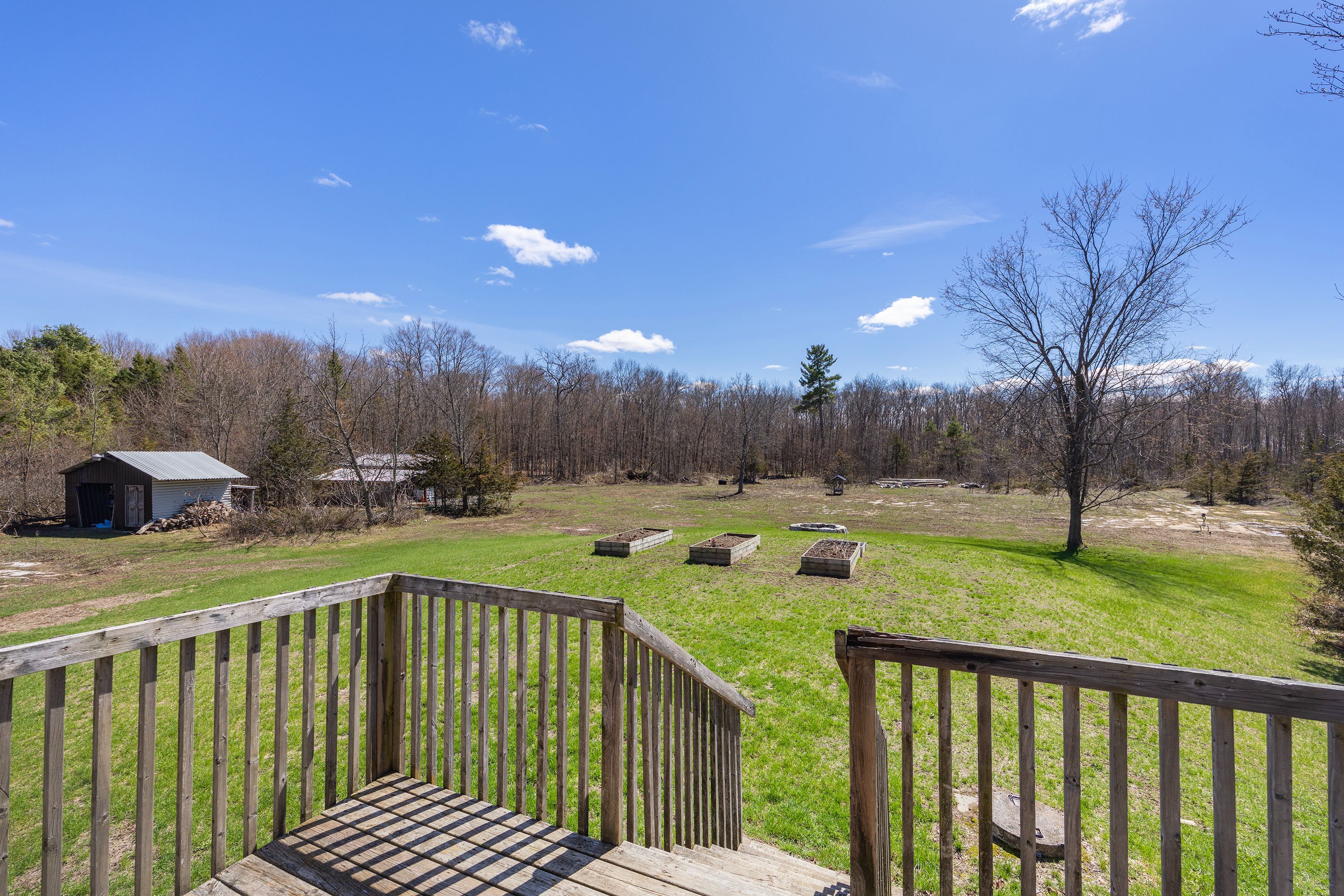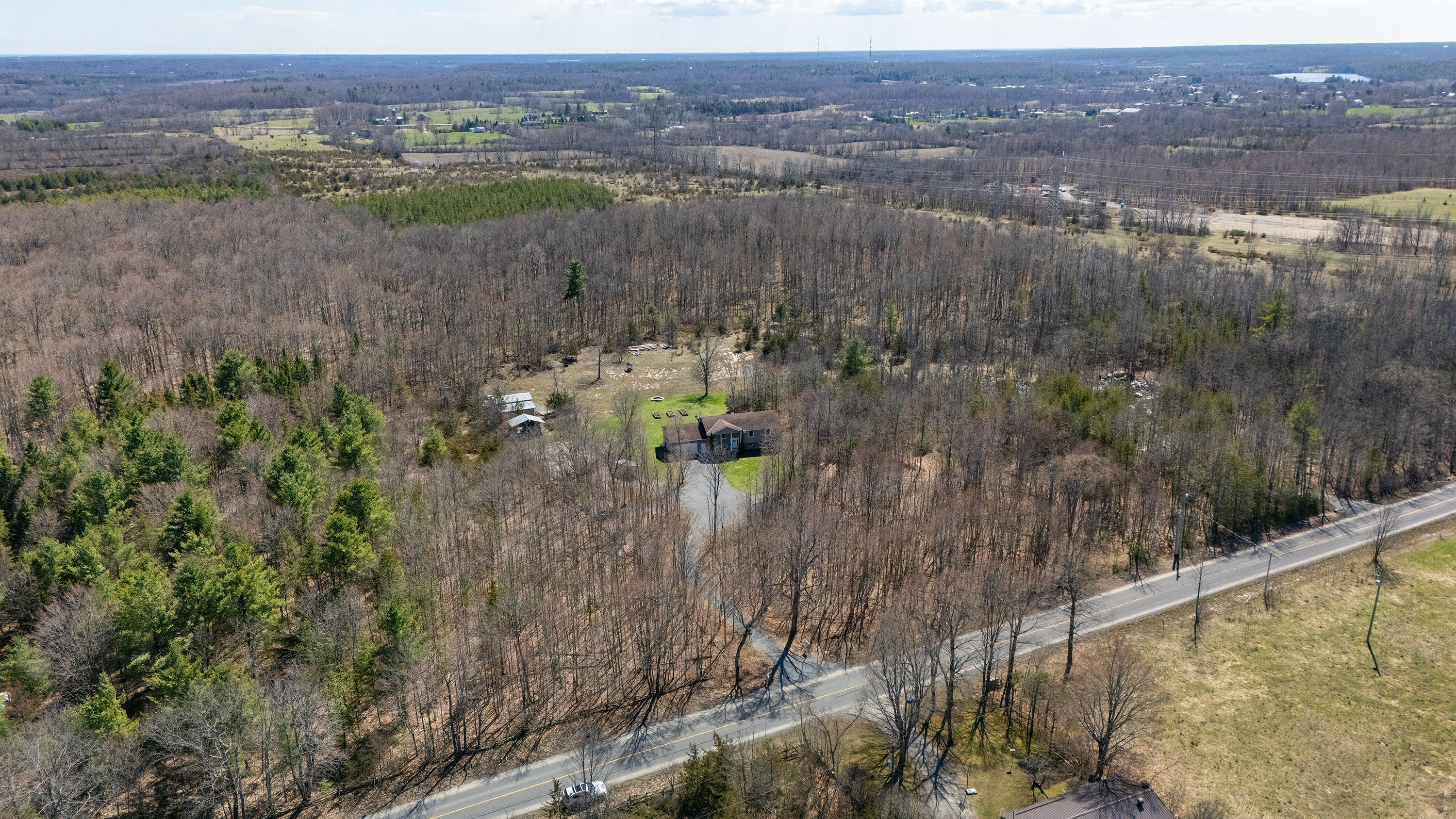 What a beautiful setting to call home! Set amongst the trees and peaceful surroundings, this home offers 3 good sized bedrooms, 2 bathrooms, open concept kitchen with so many cupboards! 9ft ceilings, large bright windows for lots of natural light, hardwood floors, ceramic tile, pot lights and a 2-car attached garage with inside entry. The primary bedroom has 'his' & 'her' closets and an ensuite that is sure to please! The two additional bedrooms are the perfect size and offer great space! In the lower level you will find a spacious rec room that has high ceilings, a convenient laundry room and walk-out to the beautiful yard all on almost 4 acres! This is your chance to find your rural dream!