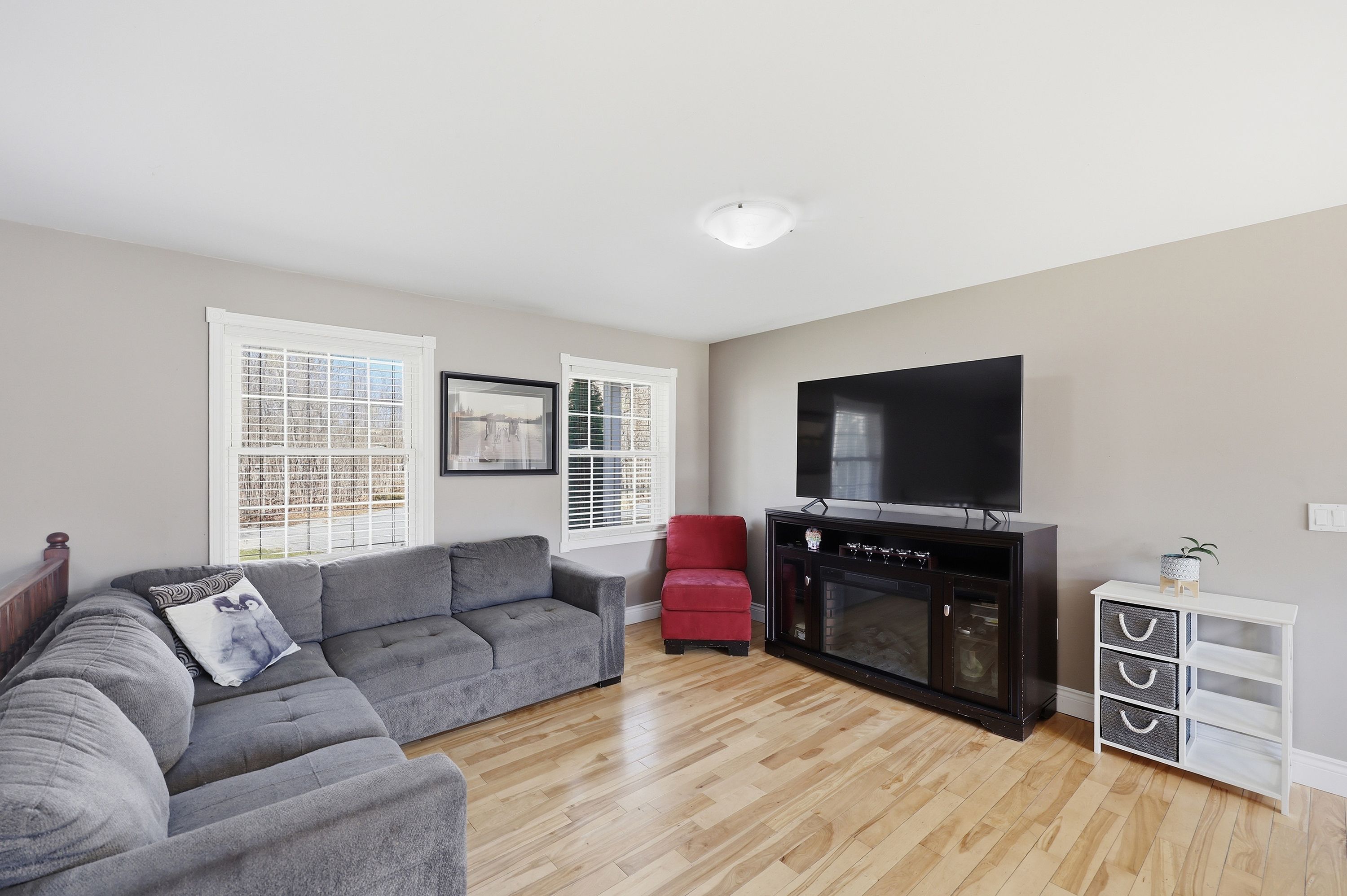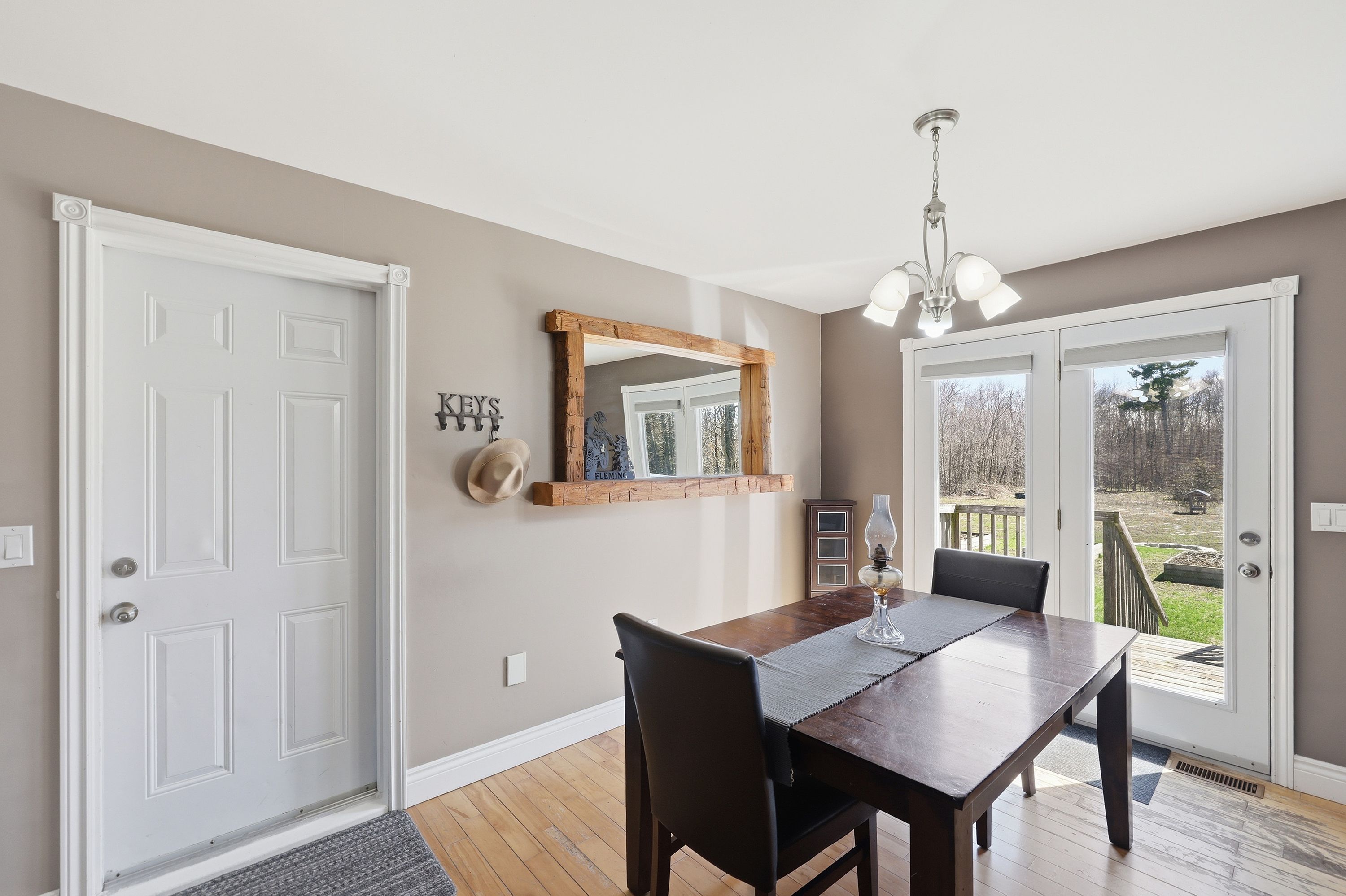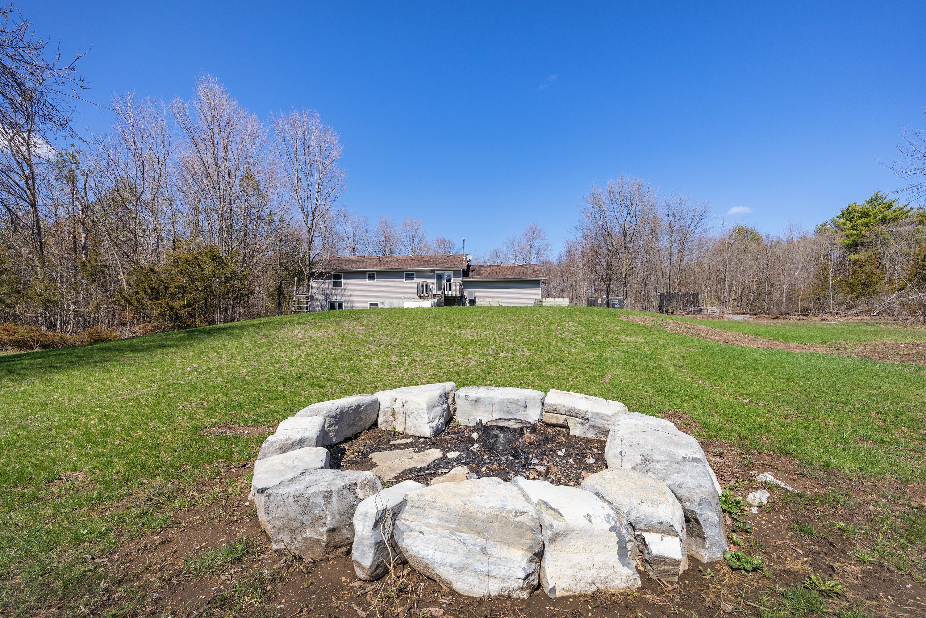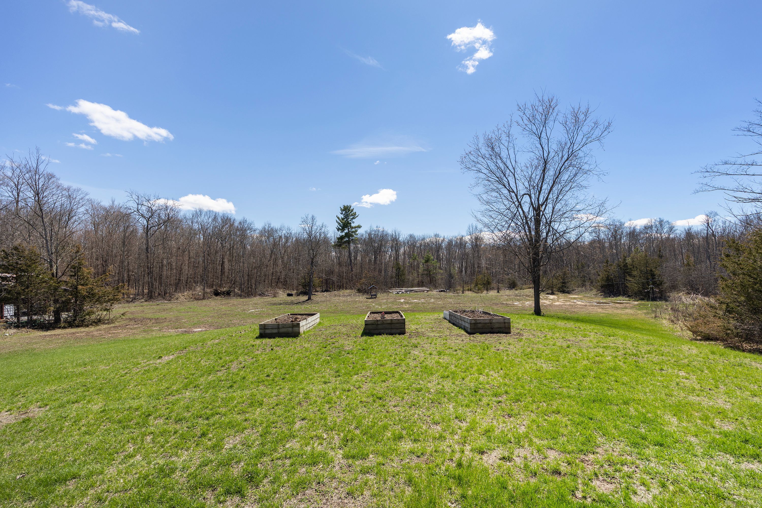 What a beautiful setting to call home! Set amongst the trees and peaceful surroundings, this home offers 3 good sized bedrooms, 2 bathrooms, open concept kitchen with so many cupboards! 9ft ceilings, large bright windows for lots of natural light, hardwood floors, ceramic tile, pot lights and a 2-car attached garage with inside entry. The primary bedroom has 'his' & 'her' closets and an ensuite that is sure to please! The two additional bedrooms are the perfect size and offer great space! In the lower level you will find a spacious rec room that has high ceilings, a convenient laundry room and walk-out to the beautiful yard all on almost 4 acres! This is your chance to find your rural dream!