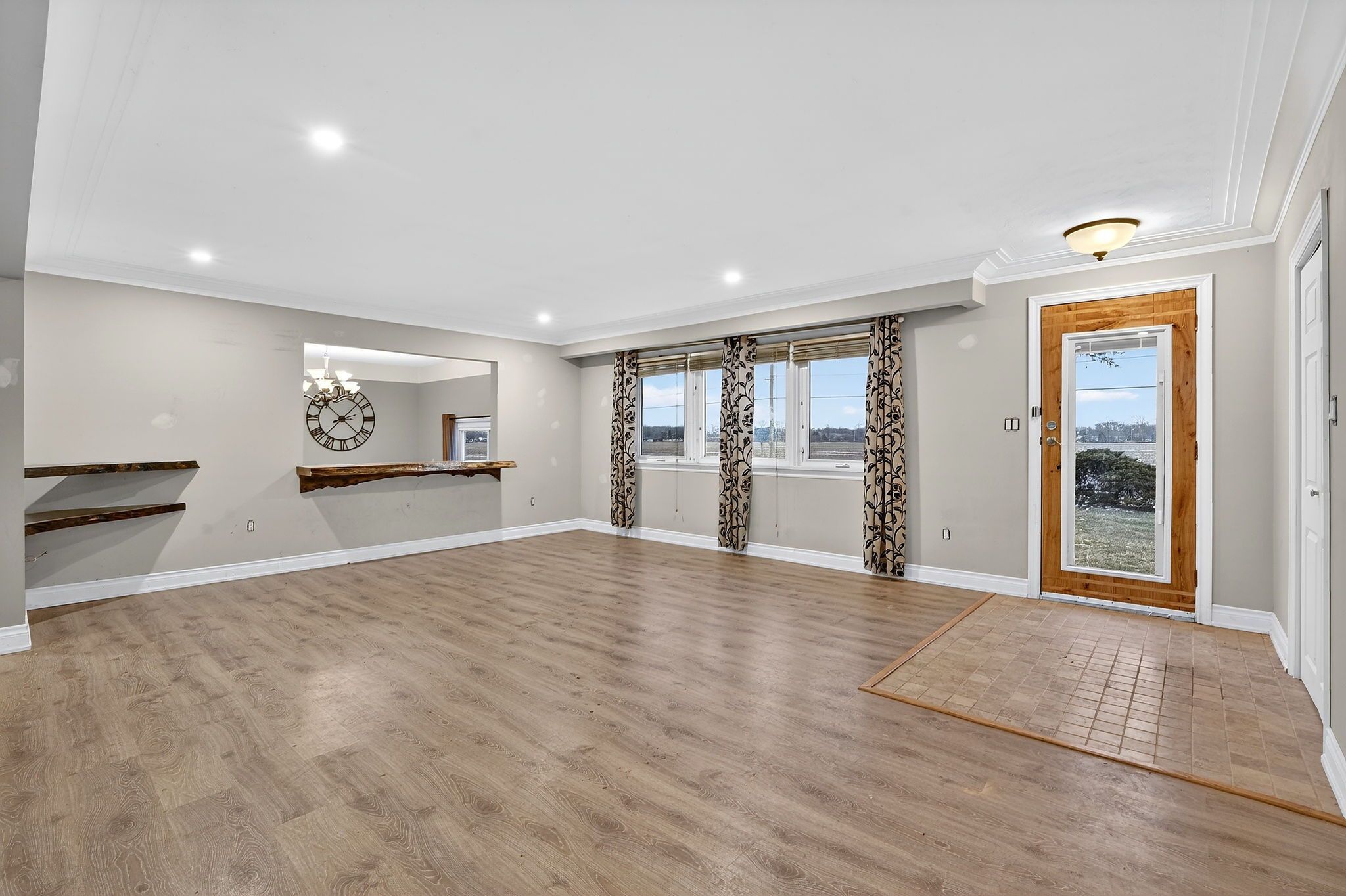 Spacious bungalow set on a generous lot, offering excellent privacy and endless potential. This home features 3 generously sized bedrooms, 1 full bathroom, and a convenient 2-piece powder room. The open-concept kitchen, living, and dining area provides a functional layout ideal for everyday living and entertaining. The partially framed basement presents a great opportunity for customization. The expansive outdoor space offers a private setting with plenty of room to enjoy. Ideally located near conservation trails, major highways, and local amenities, this property combines tranquillity with accessibility. Property is being sold under power of sale in "as-is, where-is" condition. Seller makes no representations or warranties.