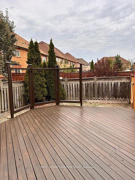 End-unit townhome located in the desirable lisgar community. This well-maintained home offers 4 spacious bedrooms and 3 bathrooms, including a professionally finished basement. The separate family room features a cozy gas fireplace, while the kitchen overlooks a large deck, ideal for outdoor entertaining in the private, fully fenced backyard. The fourth bedroom provides excellent flexibility as a home office. The finished basement includes a versatile recreation/entertainment space with laminate flooring and ample storage. The primary bedroom boasts a walk-in closet and a 4-piece ensuite. Convenient direct access from inside to the garage. Ideally situated just minutes to highway 401 & 407, lisgar go station, schools, library, grocery stores, and pharmacies. 3 car parking (2 car driveway parking &1 car garage).