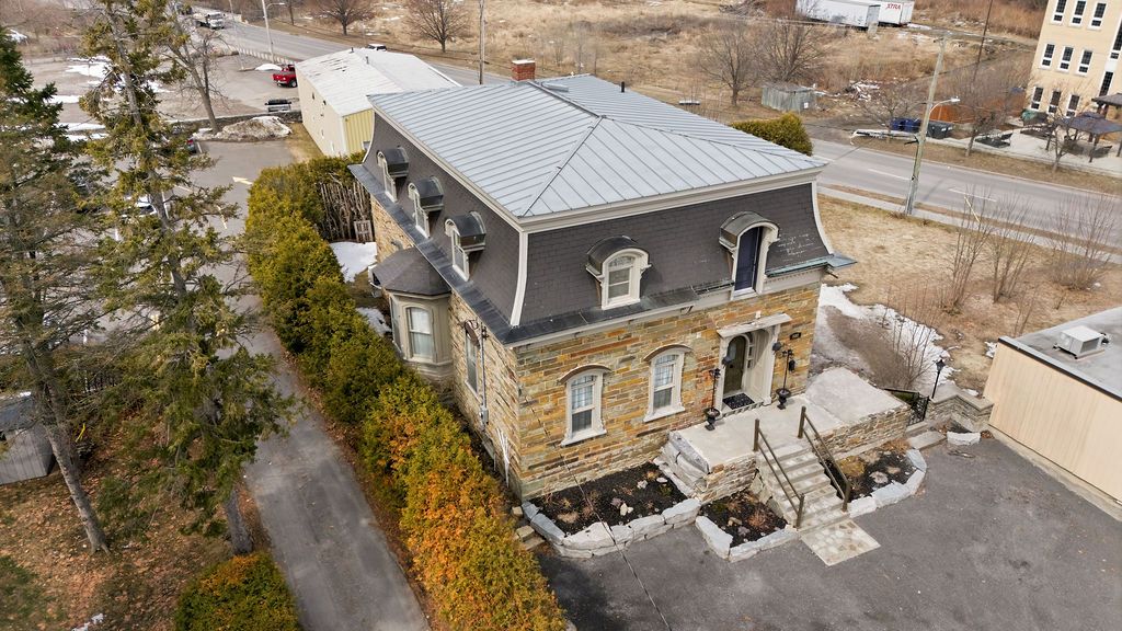 Step into a rare piece of hawkesbury history at 382 mcgill street, an impressive stone residence dating back to circa 1846. Set on a large double lot with frontage on both mcgill street and bon pasteur street, this property offers a unique blend of heritage charm and future potential. From the moment you step inside, you are welcomed by a grand entrance hall where elegant wood balusters and timeless architectural details create a space that feels as though it has been beautifully preserved in time. This sense of scale carries throughout the home, which spans almost 3,500 square feet and is defined by bright, large, inviting rooms and soaring ceilings. The main living areas offer both warmth and functionality, flowing into a character-filled kitchen and an enclosed porch that provides a peaceful space to relax. Upstairs, the home features generously sized bedrooms along with a renovated full bathroom that blends modern comfort with the home's historic character. The full-height walk-out basement adds incredible versatility. With thick, exposed stone walls, 8'7" ceilings, and direct access to the exterior, it offers excellent potential for additional living space, a workshop, or a variety of commercial uses. Original details throughout highlight the quality of craftsmanship, including incredibly thick and solid stone walls. The roof features a steel section, a gabled portion finished in slate shingles, and copper eaves. Ceiling heights of approximately 11'6" on the main level and 9'9" on the second floor further enhance the sense of space. Connected to city services and offering ample parking, the property is zoned local commercial (cl), allowing for both residential and commercial use. Ideally located close to all amenities and halfway between ottawa and montreal. Rich in character and presence, yet offering scale and versatility rarely found in today's market, this is a truly unique and charming stone home. Be ready to fall in love!