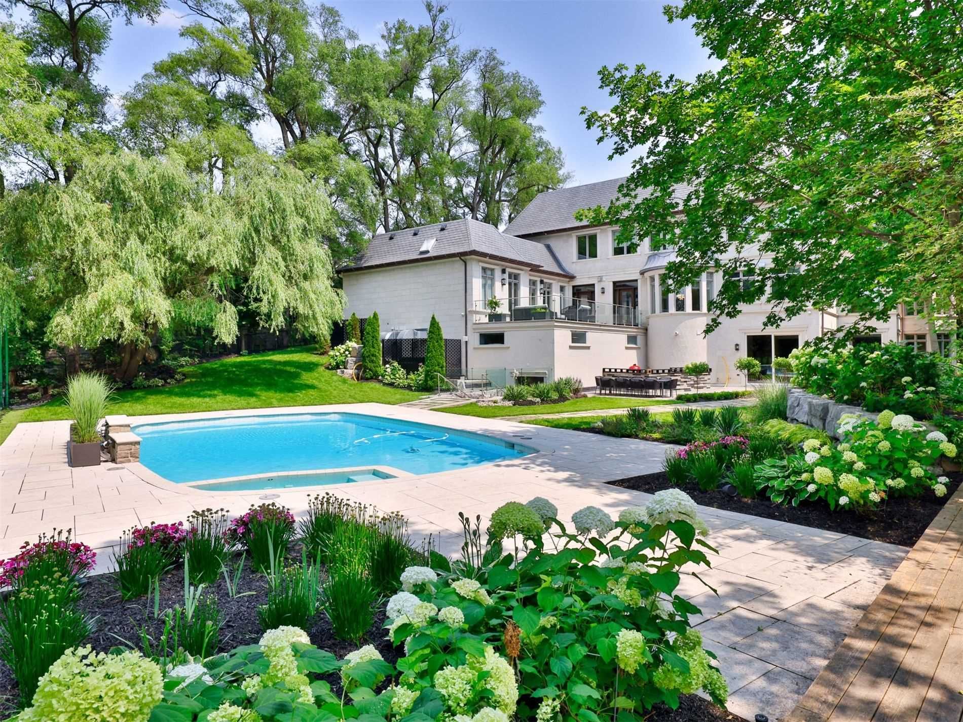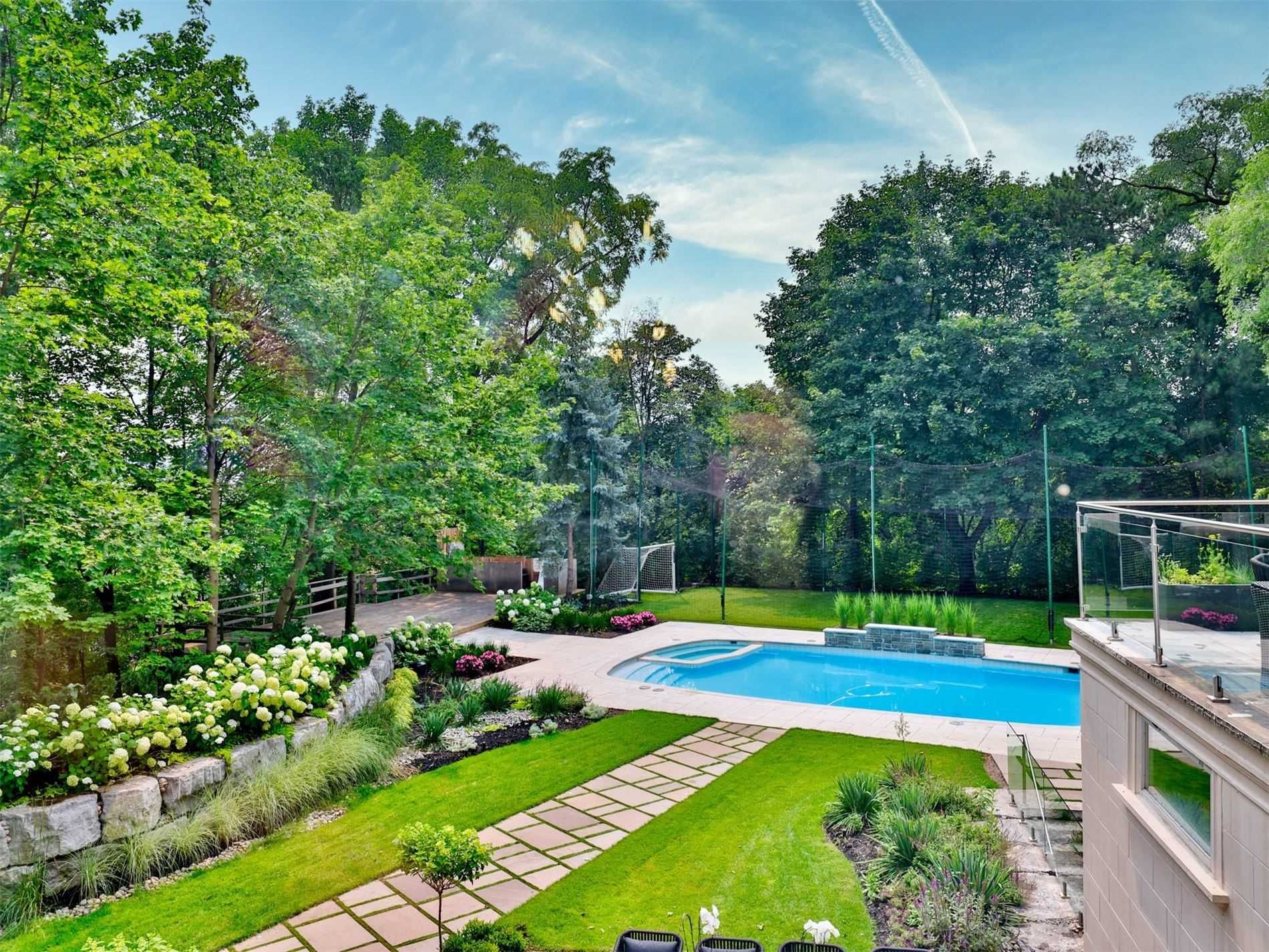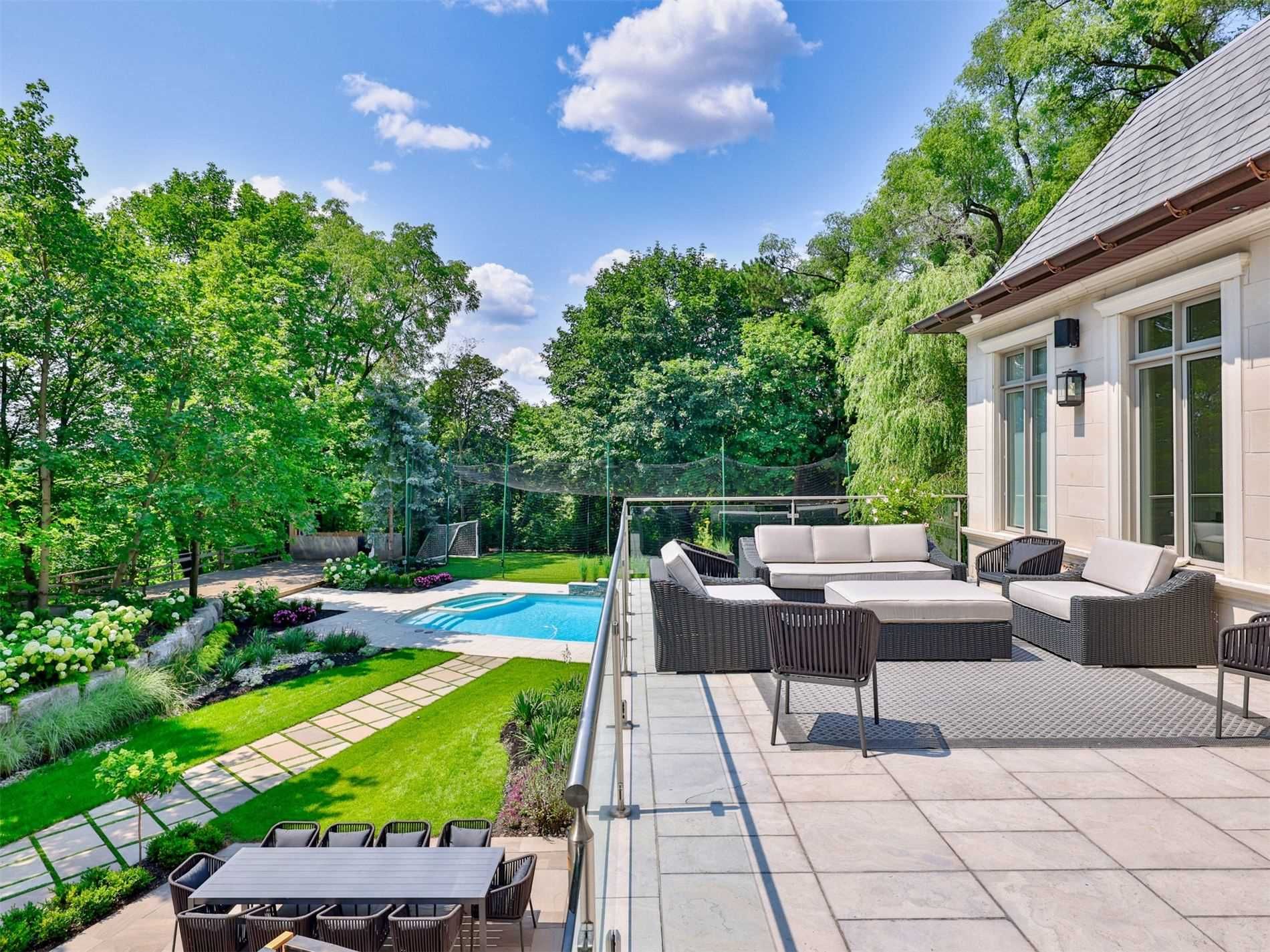 A truly one-of-a-kind estate showcasing an nba-calibre professional sports court, set on over 1. 3 acres of breathtaking ravine vistas. This exceptional residence is clad in timeless limestone and offers an uncompromising standard of luxury, craftsmanship, and design. Boasting over 9,390 square feet above grade, plus an extraordinary 6,042 square foot lower level featuring a full basketball court, this home is the ultimate in grand-scale living and entertaining. No expense has been spared, with soaring ceilings, bespoke finishes, and meticulous attention to detail throughout. State-of-the-art technology enhances every aspect of the home, including a fully integrated control4 automation system, alexa connectivity, and a spectacular home theatre with 4k projection and a 152-inch screen. The main level features a private in-law suite, an elegantly panelled library, and a chef-inspired kitchen complete with a wood chopping block, expansive centre island, and built-in refrigeration-designed for both everyday living and elevated entertaining. The primary retreat is a sanctuary of indulgence, highlighted by a lavish 11-piece onyx marble ensuite and a custom-designed dressing room. Outdoors, the estate transforms into a dream resort-style oasis, complete with a stunning pool, private soccer field, outdoor bar and kitchen, granite fire pit, and an expansive stone terrace-perfect for hosting or unwinding in complete privacy. This estate is just minutes to highway access, top public and private schools and boutique shops and eateries nearby.