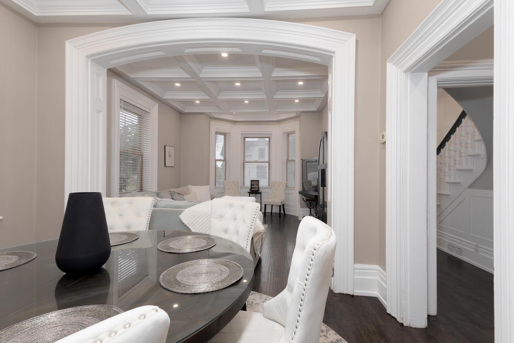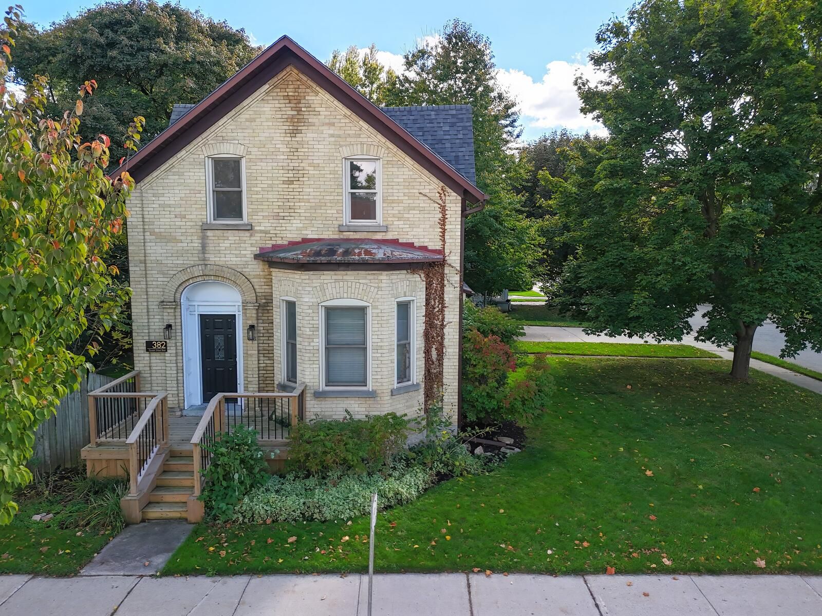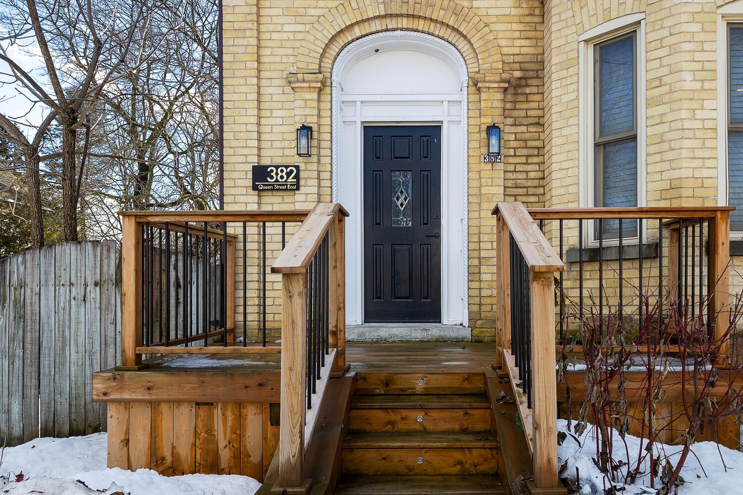 Welcome to 382 queen st. E., in the picturesque town of st. Marys, on. This 1890 solid-brick beauty has been extensively modernized and is ready for a new family to call her own. Renovated in 2023 for those who love to entertain or host family gatherings, key features include a large dining room directly off of the kitchen, a separate bar area ideal for preparing cocktails or for use as a coffee bar, and a separate living room with bay window. The kitchen stands as the hallmark trait of the home, with modern cabinetry, a large centre island with breakfast bar, a 48" gas range, an apron farmhouse sink, and a built-in, beautifully-crafted walnut cutting board counter. The focal point, however, is the magnificent wine refrigeration cabinet built in under a staircase, which could be repurposed to house fruits, cheeses, or other beverages if wine isn't your thing. The magnificent coffered ceiling that flows from kitchen, dining to living room levels up the elegance. Travel up the curved staircase to an upstairs that hosts 3 bedrooms, including a large primary suite with natural gas fireplace, a 4-piece bath with glassed-in shower, a claw-foot tub and spacious vanity. A back "servant's staircase" leads from this bedroom to the kitchen for those urgent early-morning coffee runs. Outside you will find a large raised wood deck and private, partially fenced-in backyard. Take a short walk to the downtown core to enjoy the fabulous shops, cafes and restaurants.