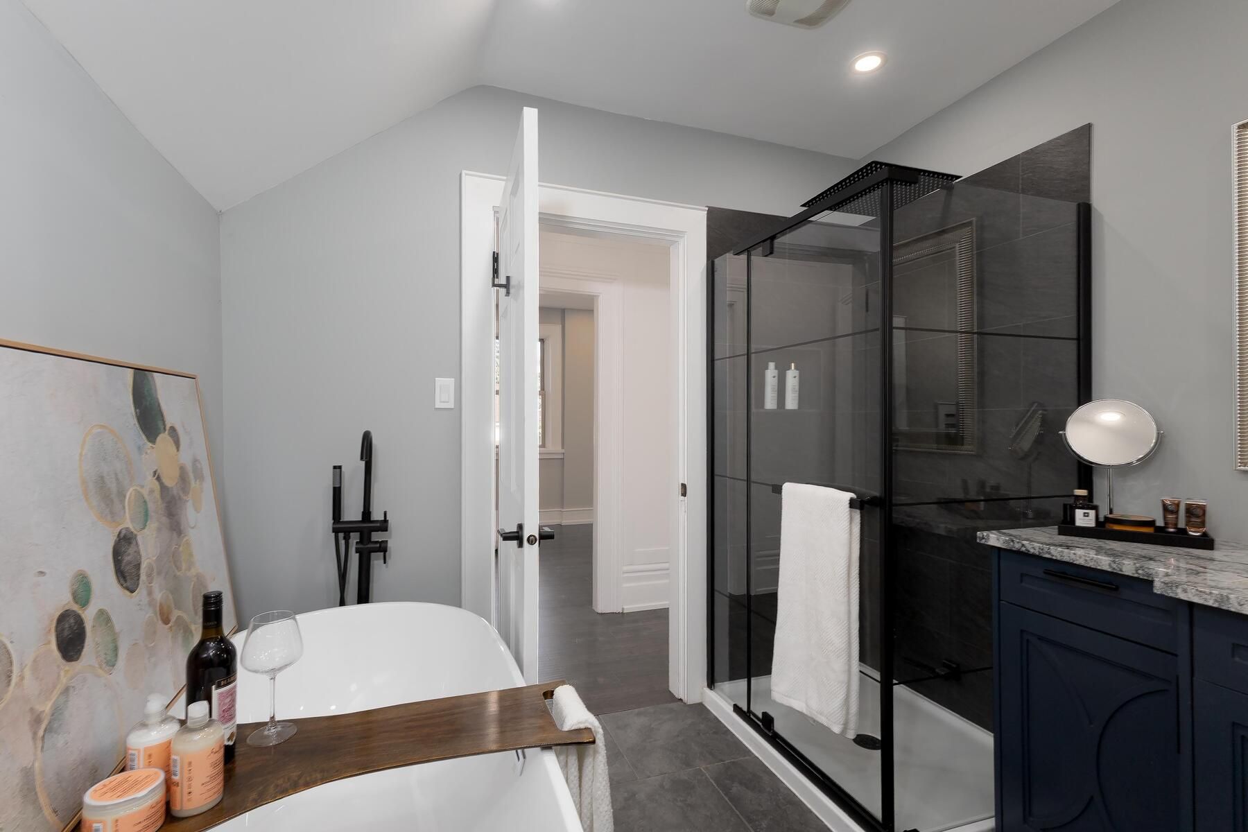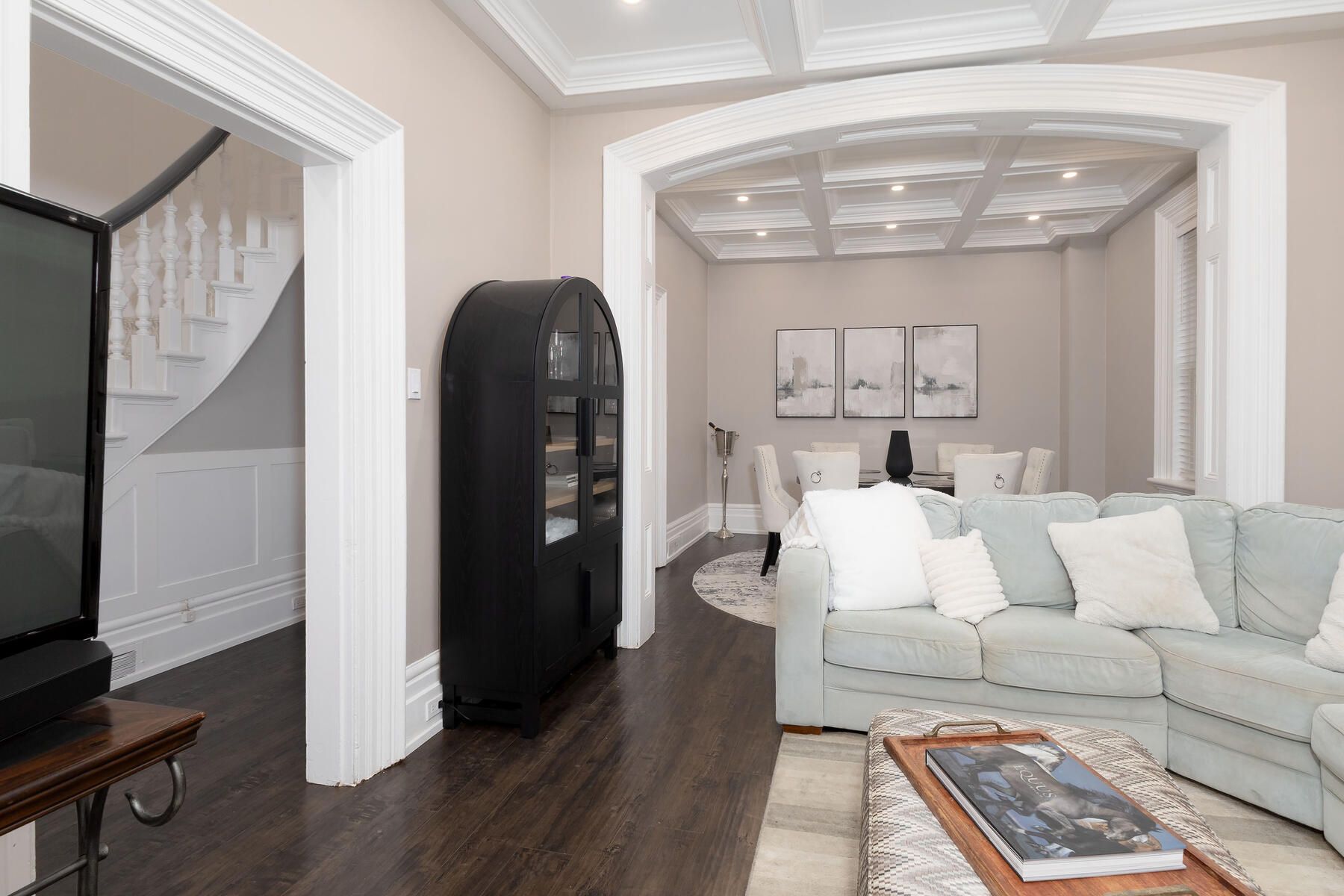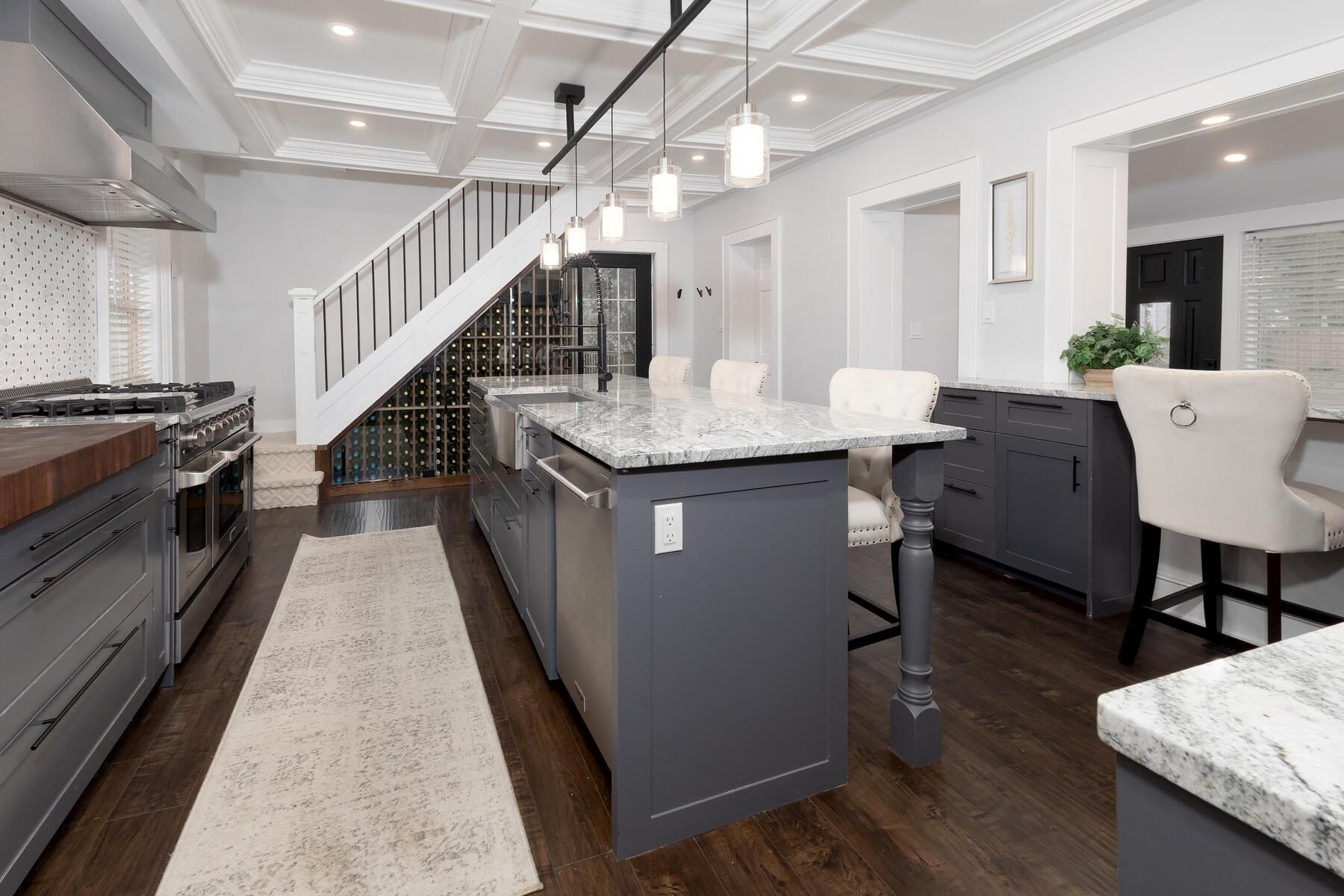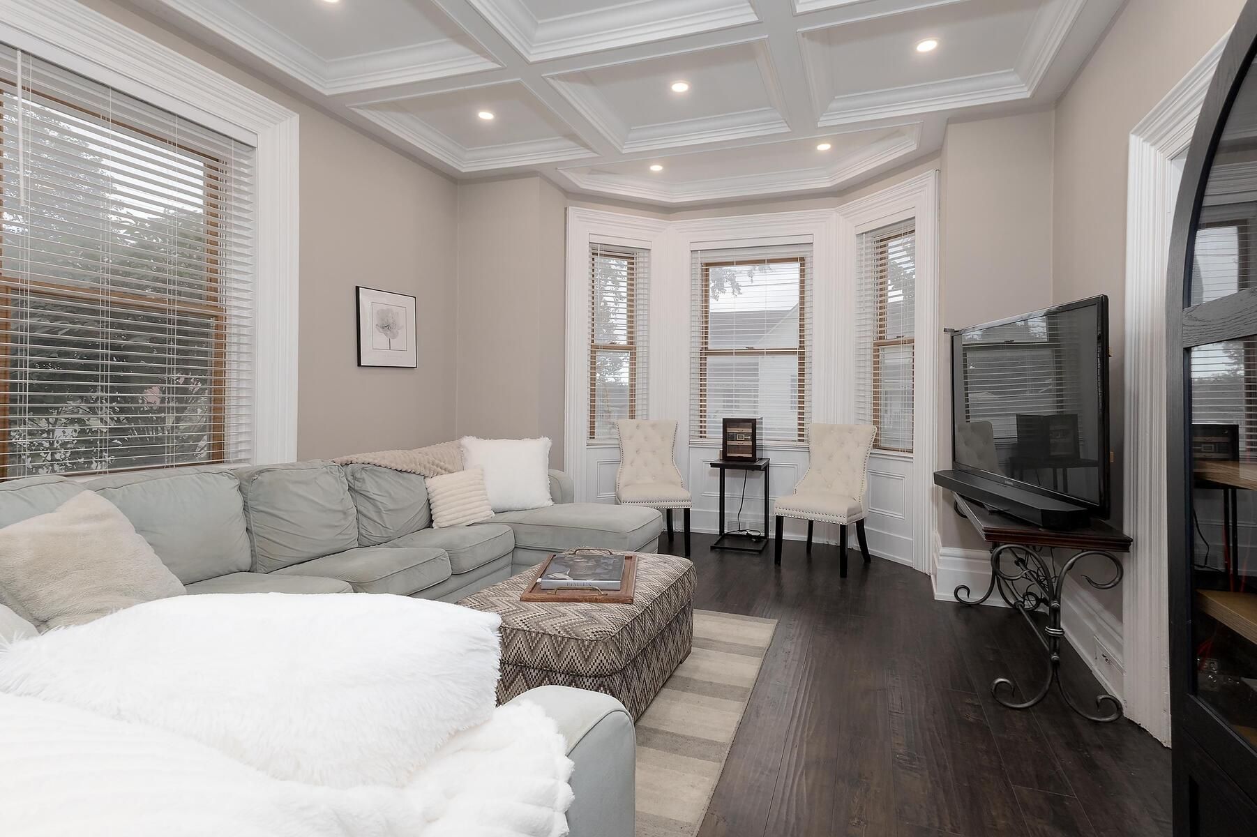 Welcome to 382 queen st. E., in the picturesque town of st. Marys, on. This 1890 solid-brick beauty has been extensively modernized and is ready for a new family to call her own. Renovated in 2023 for those who love to entertain or host family gatherings, key features include a large dining room directly off of the kitchen, a separate bar area ideal for preparing cocktails or for use as a coffee bar, and a separate living room with bay window. The kitchen stands as the hallmark trait of the home, with modern cabinetry, a large centre island with breakfast bar, a 48" gas range, an apron farmhouse sink, and a built-in, beautifully-crafted walnut cutting board counter. The focal point, however, is the magnificent wine refrigeration cabinet built in under a staircase, which could be repurposed to house fruits, cheeses, or other beverages if wine isn't your thing. The magnificent coffered ceiling that flows from kitchen, dining to living room levels up the elegance. Travel up the curved staircase to an upstairs that hosts 3 bedrooms, including a large primary suite with natural gas fireplace, a 4-piece bath with glassed-in shower, a claw-foot tub and spacious vanity. A back "servant's staircase" leads from this bedroom to the kitchen for those urgent early-morning coffee runs. Outside you will find a large raised wood deck and private, partially fenced-in backyard. Take a short walk to the downtown core to enjoy the fabulous shops, cafes and restaurants.