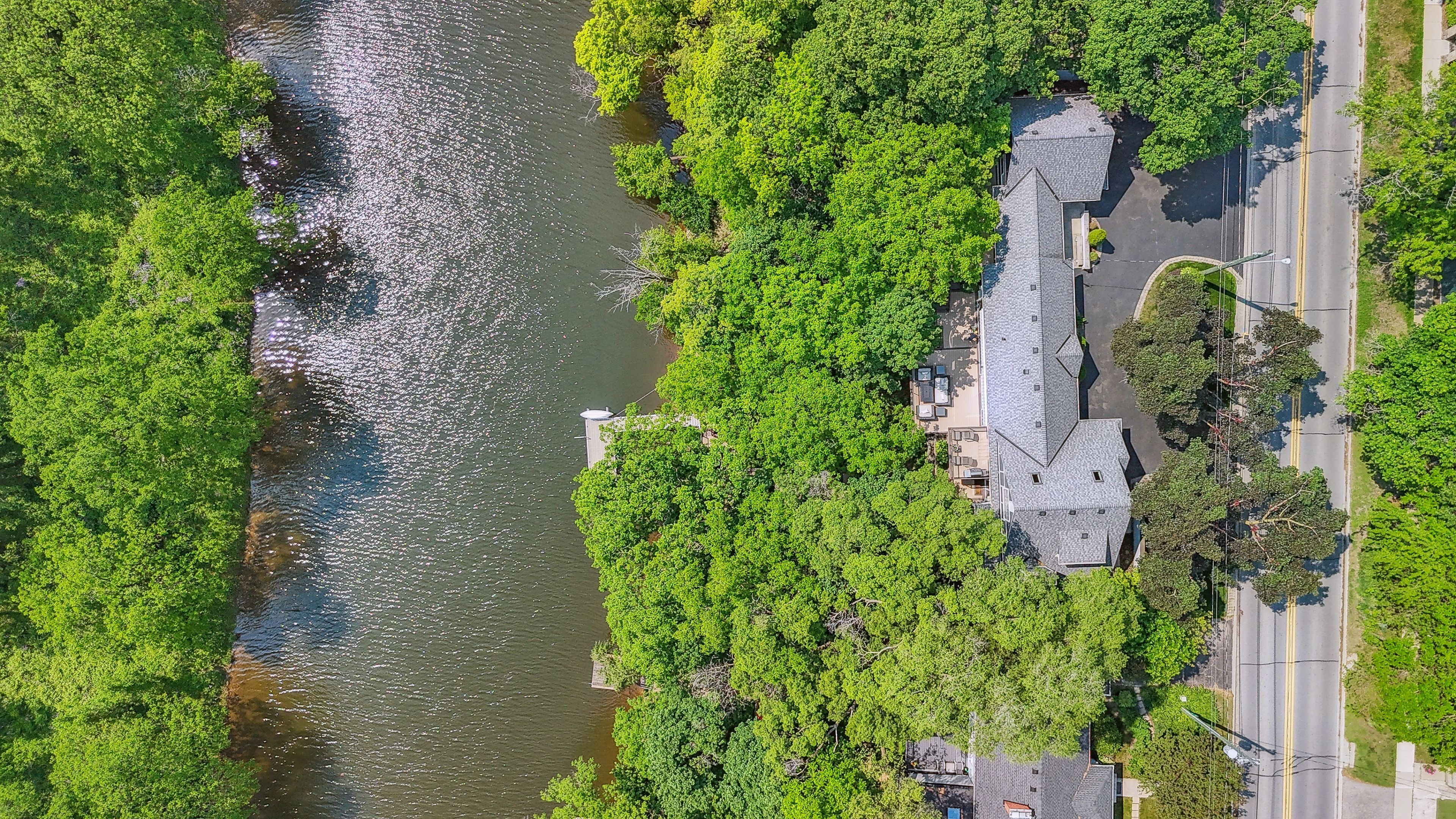 Exquisite and reminiscent of new england charm, this lofted bungalow offers breathtaking views and unmatched privacy along oakville's tranquil 16 mile creek. A testament to craftsmanship and design, this waterfront retreat boasts exclusive riparian rights and a private dock, inviting you to embrace the beauty of oakville's scenic waterways year-round. In winter, skate or ski on the frozen creek or admire the snowy landscape from your sun-drenched living room. In summer, swim, fish, paddle to oakville harbour, or relax by the water, this home offers the feel of muskoka, right in the city. A meticulous 2016 renovation elevated this residence with rich hand-scraped oak floors, solid wood doors, custom millwork, and elegant tray ceilings. The sprawling 1,700 sq. Ft. Premium wolf pvc deck includes a hot tub oasis, integrated fire table, and motorized awnings, leading to a dock with a kayak launch, swim ladder, and floating dock. Glass-encased staircases on helical piers deliver striking architectural presence and unbroken sight lines to the creek. Inside, sophistication defines every detail. Floor-to-ceiling windows in the living room frame stunning ravine views and dramatic sunsets, while a gas fireplace with a live-edge mantel adds warmth. The chef's kitchen impresses with a leathered taj mahal quartzite island, wolf and miele appliances, and an integrated sub-zero fridge. Heated floors run throughout, including in the spa-like primary ensuite with marble floors, a rain shower, and double vanity. The lower level offers a linear fireplace, built-in bar, and walkout to the deck. A concrete-lined storage room playfully known as the bomb shelter provides additional functionality. Blending natural beauty, refined design, and year-round outdoor living, this one-of-a-kind property is just steps to downtown oakville and the go train offering luxury, serenity, and convenience in equal measure.
