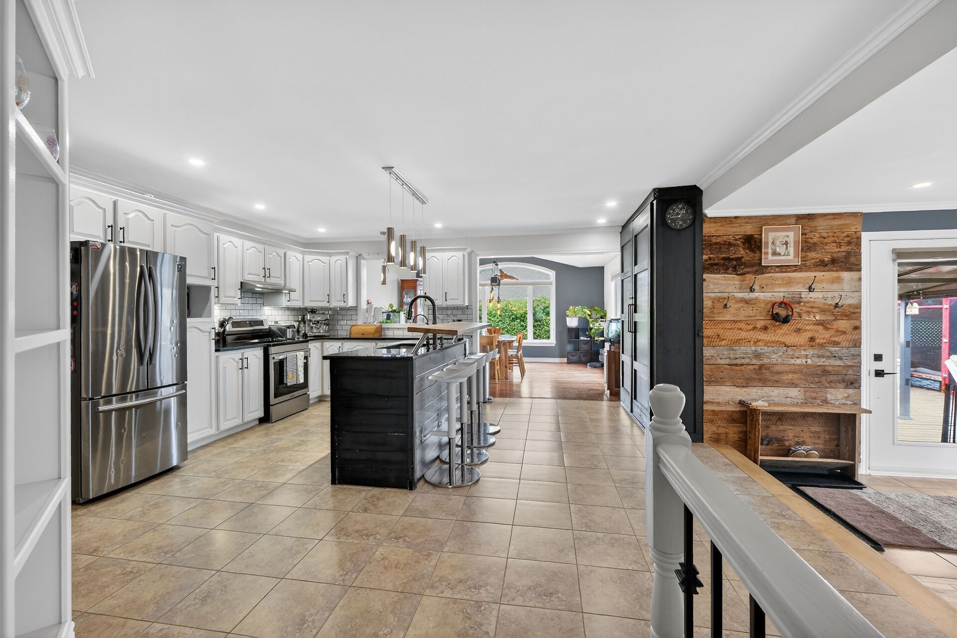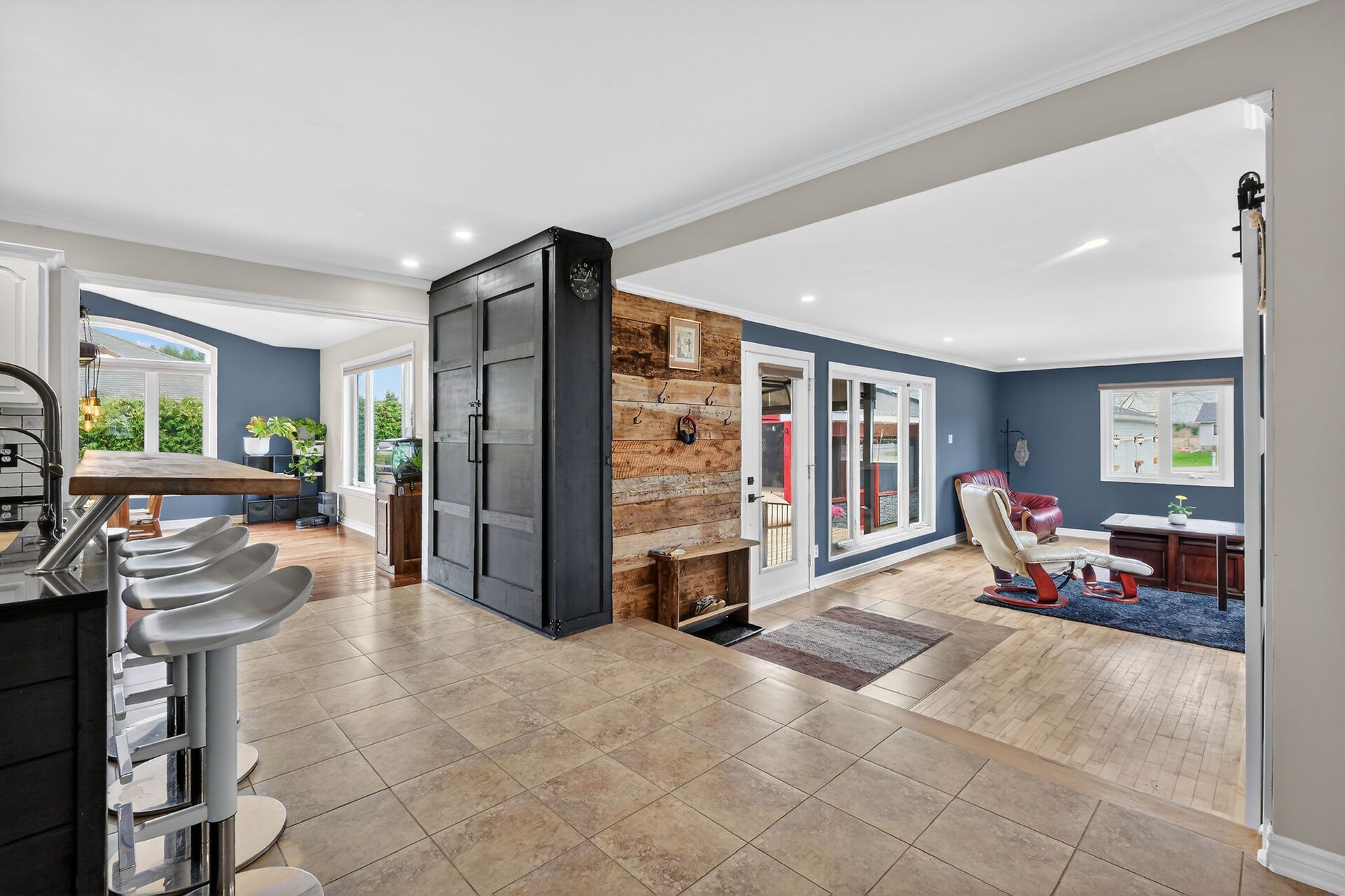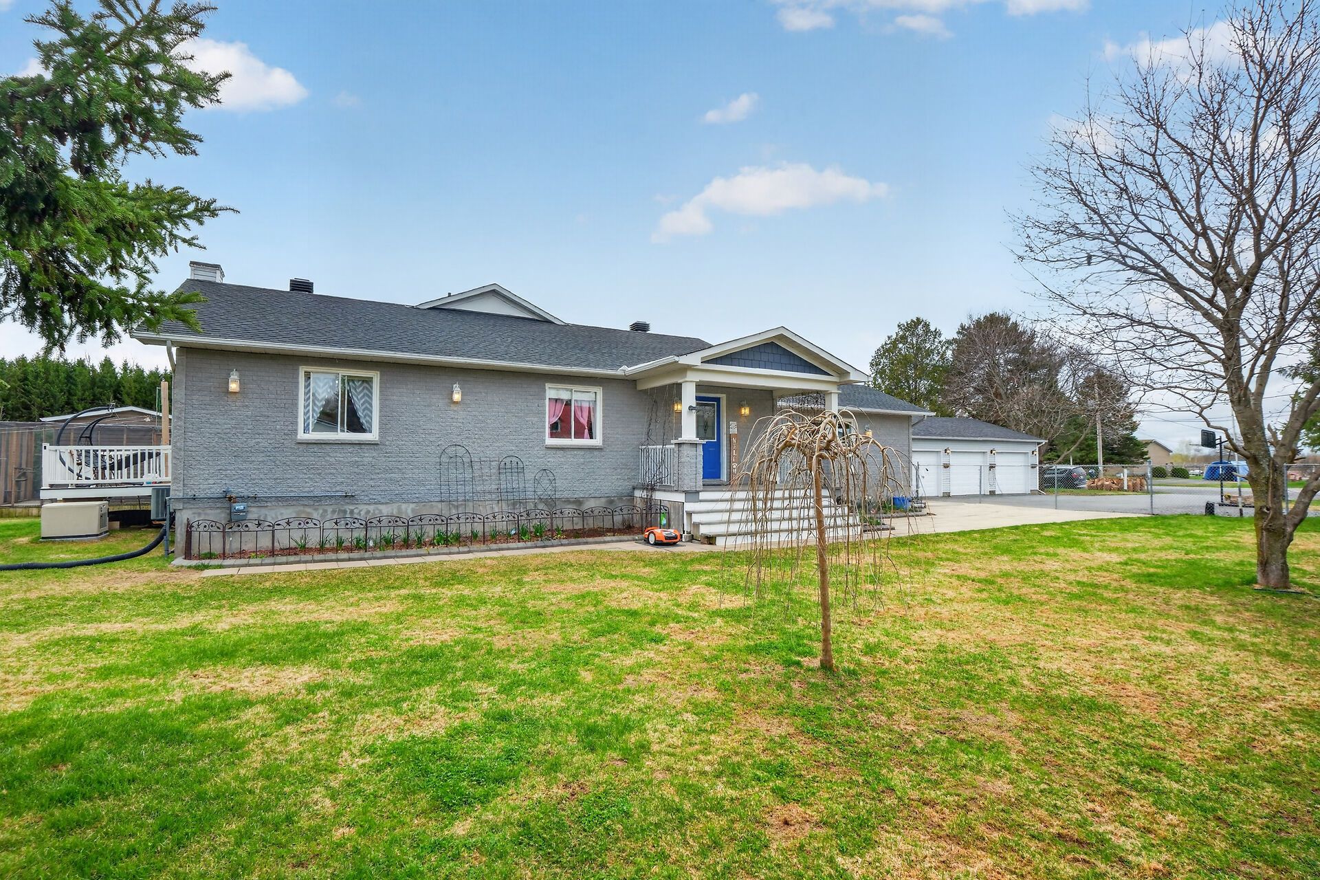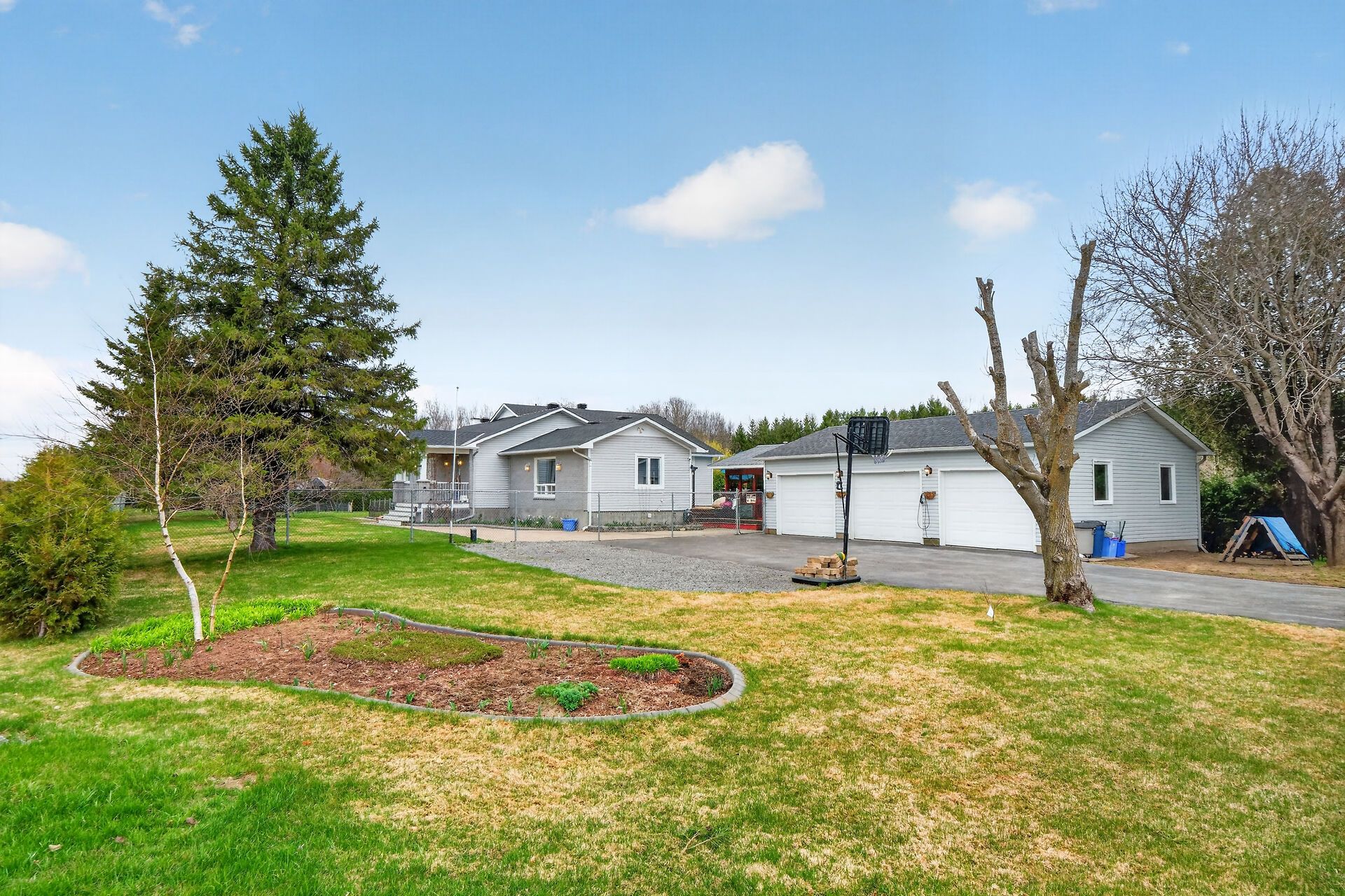 Situated on a generous 110 x 300 ft lot, this spacious bungalow offers approximately 2,700 sq ft of finished living space and exceptional indoor and outdoor living. The open concept main floor is completely carpet free and features large principal rooms filled with natural light, creating an ideal layout for both everyday living and entertaining. The kitchen is equipped with stainless steel appliances, a centre island and ample workspace, seamlessly connecting to the living and dining areas. The main level includes four spacious bedrooms, while the fully finished basement provides additional versatile living space with a rec room, fifth bedroom, full bathroom and a large laundry room. Outside, enjoy an incredible outdoor setting with a large deck, covered gazebo and fully fenced yard, perfect for relaxing or hosting gatherings. A detached triple car garage with wood stove offers excellent space for vehicles, hobbies or storage, while the long lot provides privacy and plenty of room to enjoy the outdoors. A wonderful opportunity to own a spacious home with room to grow in a peaceful setting. Recent updates include: garage roof (2020), house roof (2025), full basement reno (2023), cummings automatic generator (2023), motherboard and fan in furnace (2023), sump pumps (2024/2025), owned hwt (2025), floors refinished (2020), some windows (2025), driveway repair & partial replacement (2022), property fence (2020), septic pumped (2025), washer/dryer (2024), reverse osmosis system (2020), water softener system serviced yearly (last done dec 2025), ev fast charge system (2022)