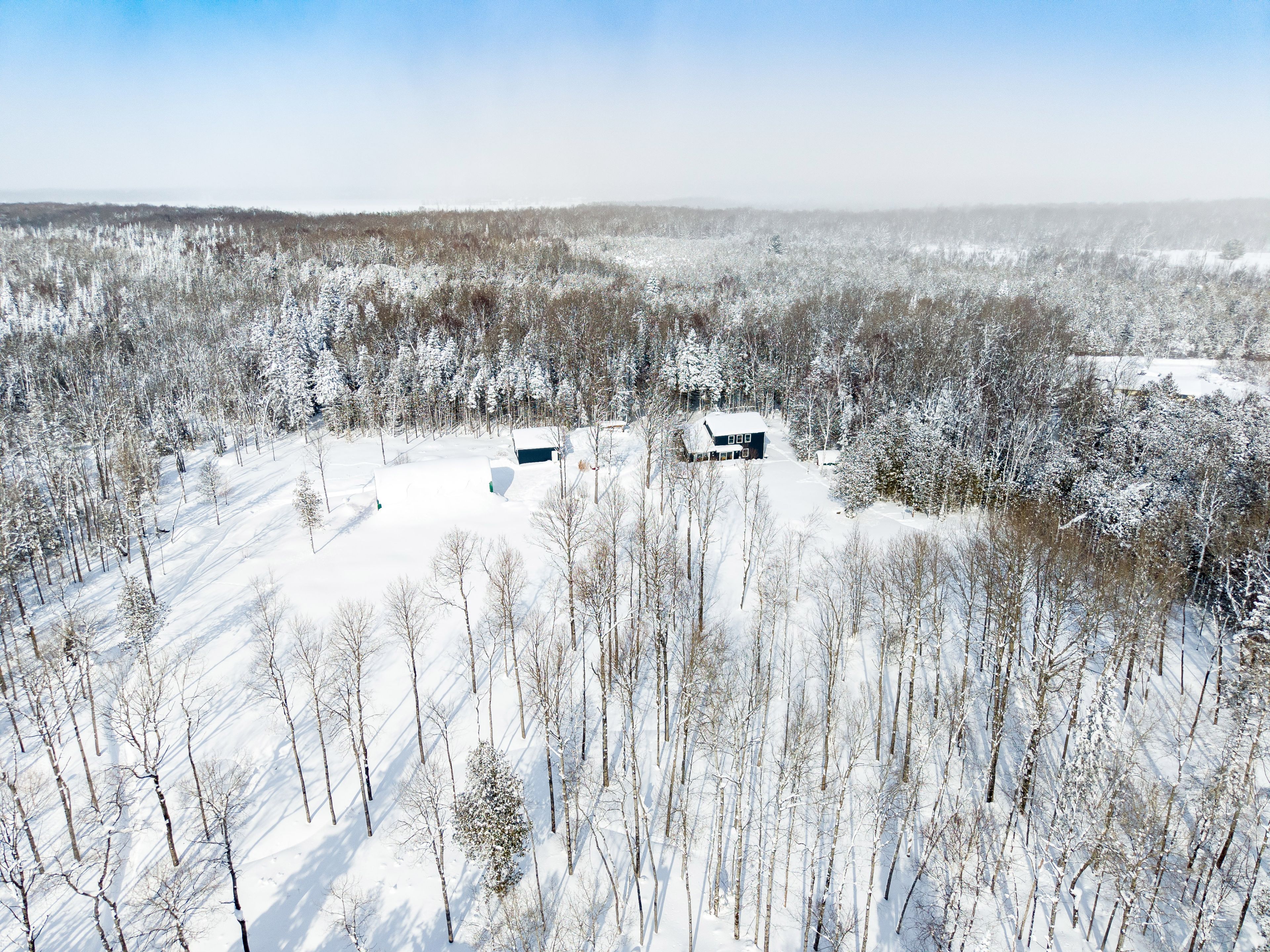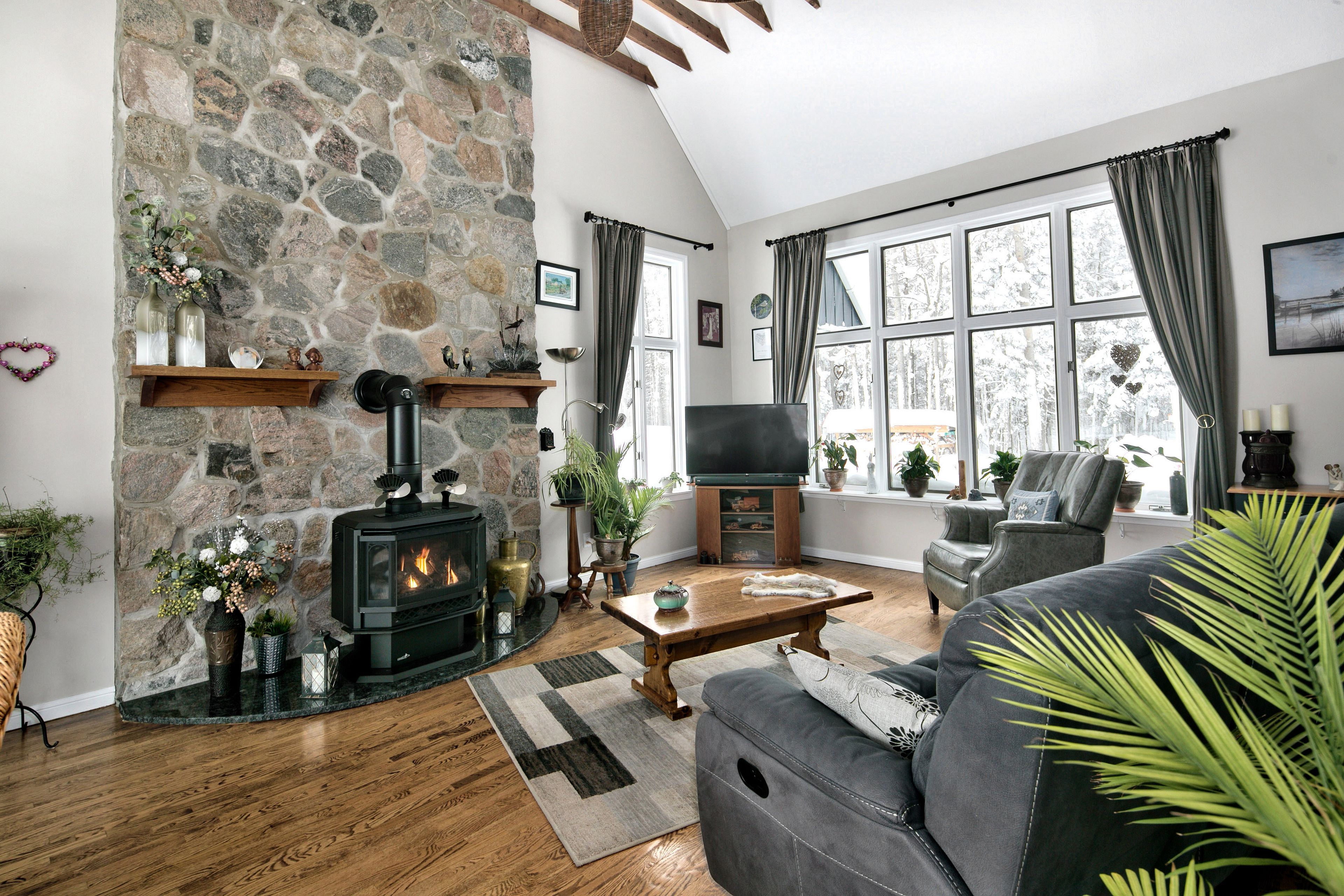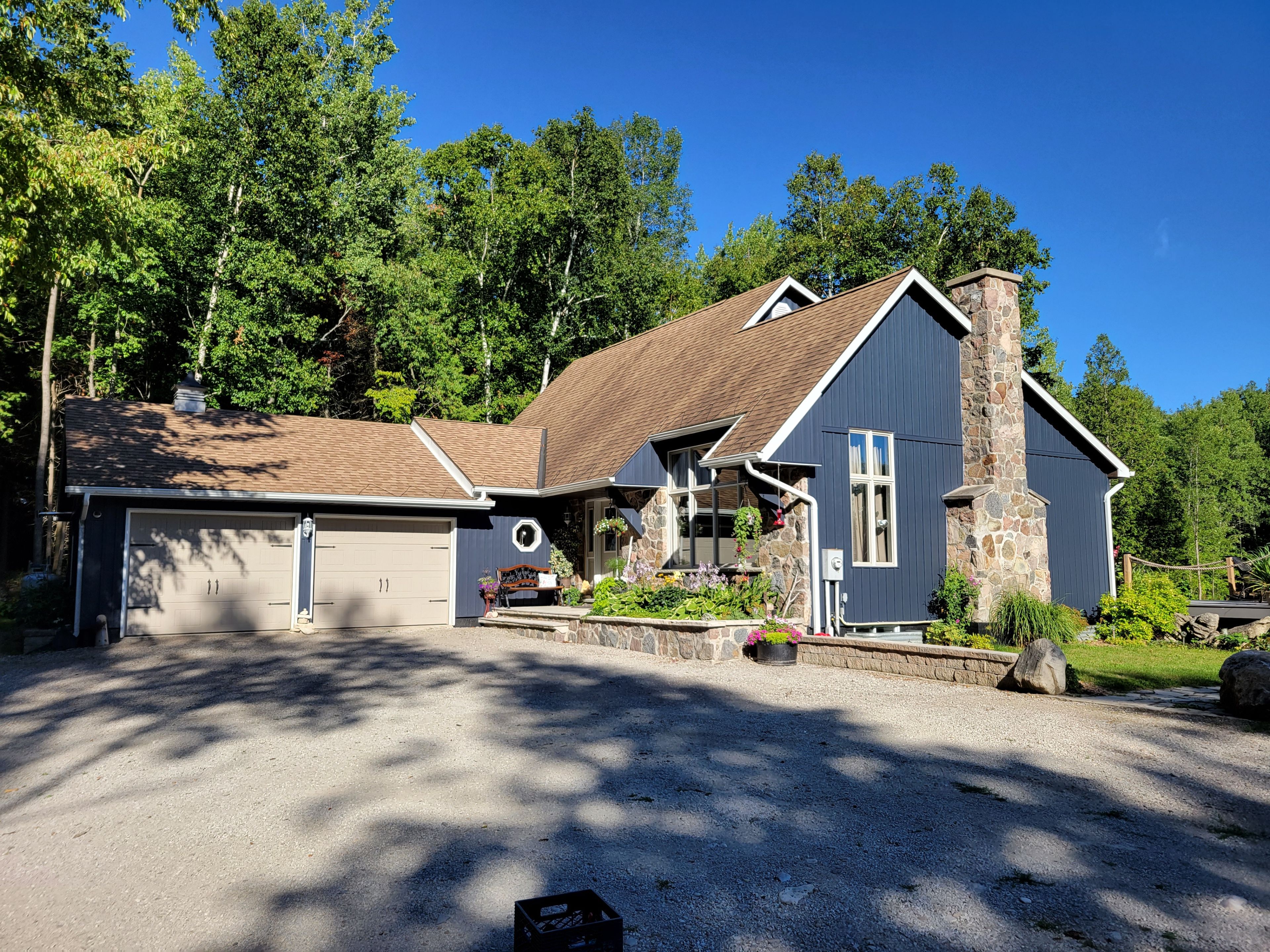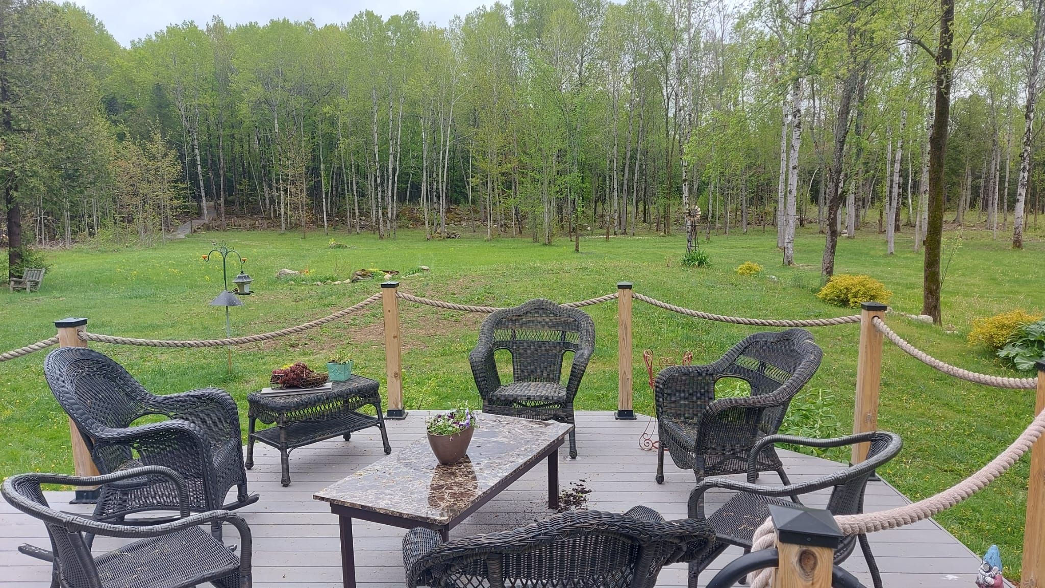 Tucked away in total privacy, this exceptional 49. 5-acre property is a rare retreat for nature lovers seeking peace, space, and connection to the outdoors. Surrounded by wildlife and mature landscape, the land offers a beautiful mix of forested land with mulched trails throughout and a natural spring fed pond that enhances the serene setting. The updated 1. 5-storey home with loft is warm, welcoming, and thoughtfully improved. The main floor features a spacious living room with cathedral ceilings, a propane fireplace, hardwood floors throughout and new windows on main and upper level. The large main floor primary bedroom offers two closets and a completely redone 3-piece ensuite. The kitchen was completely renovated (2020) with quartz counter tops and island and new appliances, with a new patio door providing access to a large composite deck (2022), perfect for entertaining or simply enjoying the peaceful surroundings. Upstairs, you'll find two additional bedrooms, a 4-piece bath, and ample storage. The semi-finished basement offers a rec room and additional space to grow, along with updated mechanicals including water softener (2022), uv light, 200-amp breaker panel, furnace (2017), central air, and central vacuum. For hobbyists or those needing extra space, the property includes an attached insulated & heated 24'x24' 2-car garage plus a separate detached 24' x 23' detached 2-car garage. Also included with property is a dog kennel with doghouse. Modern conveniences and updates such as fibre internet and a security system (2022) septic bed (2022) ensure comfort, connectivity and peace of mind. A great opportunity offering quiet, privacy, and endless space-an ideal escape where nature, comfort, and functionality come together.