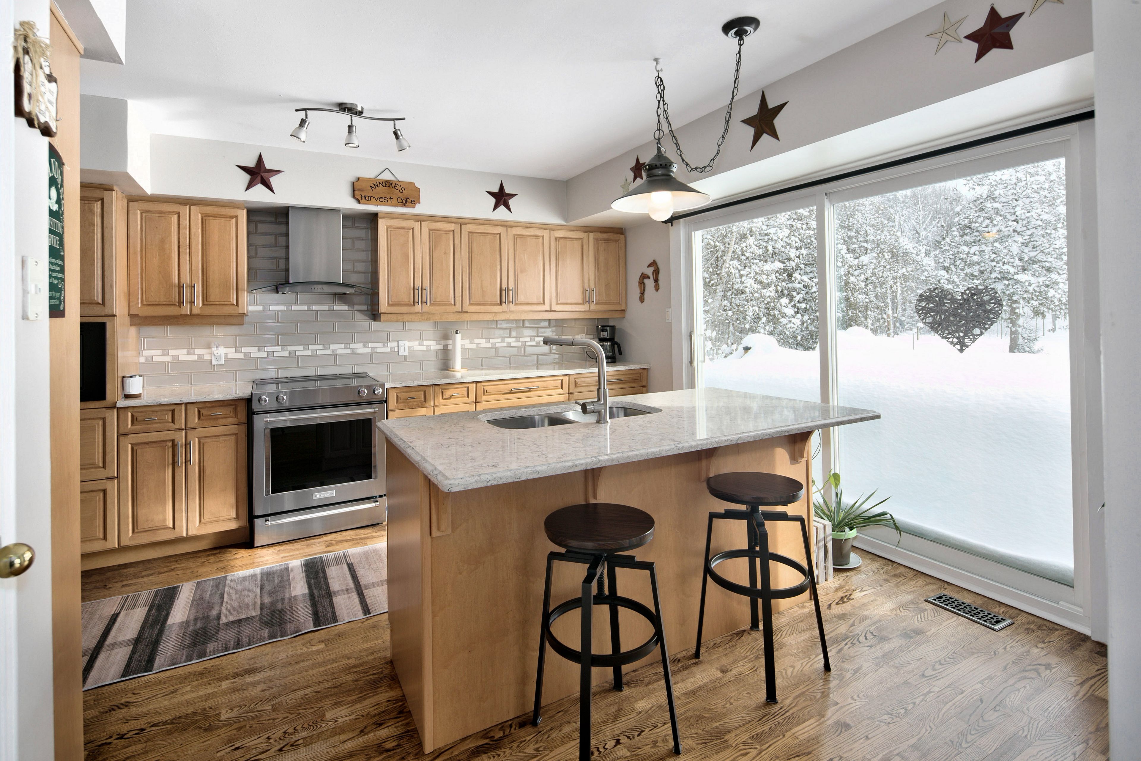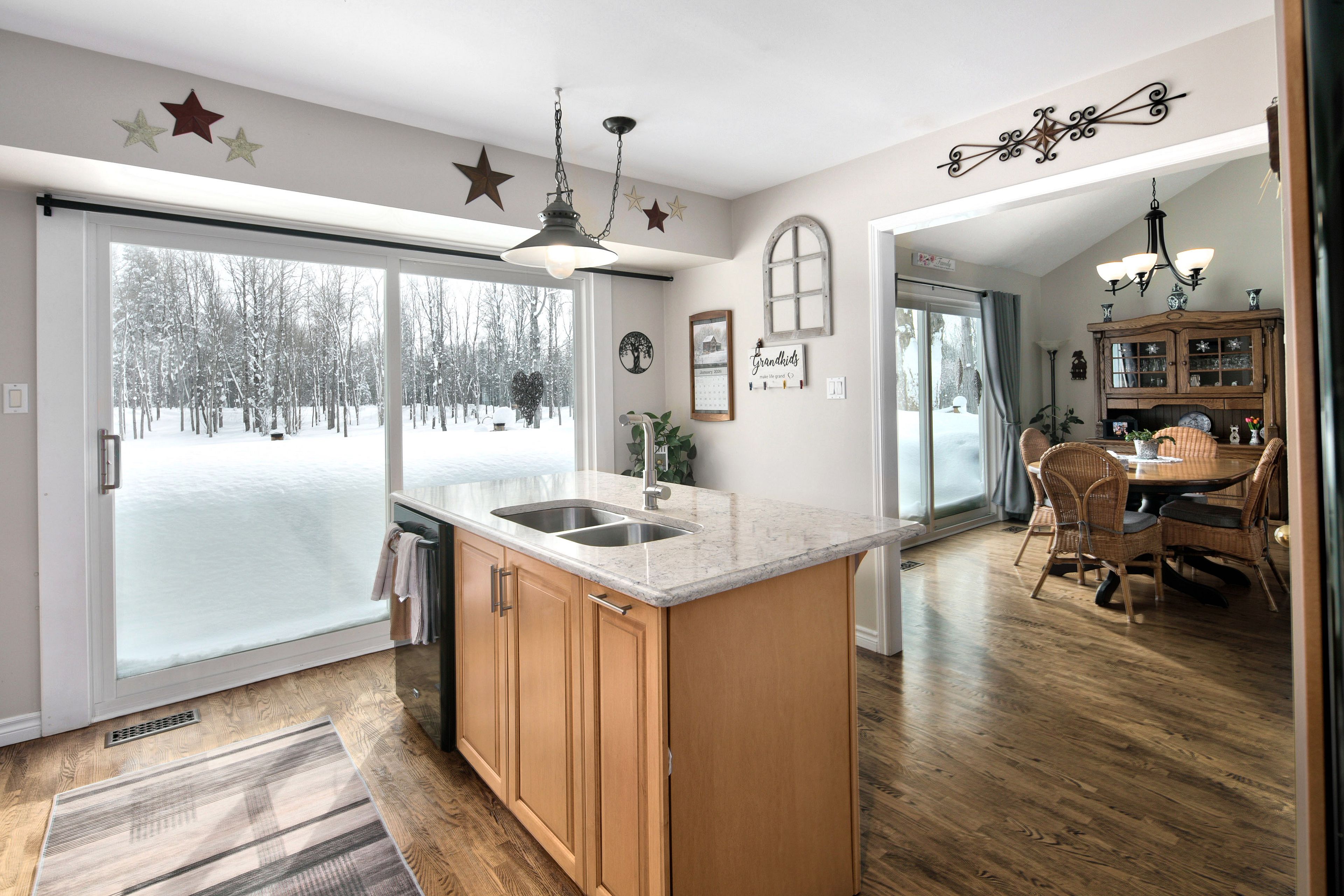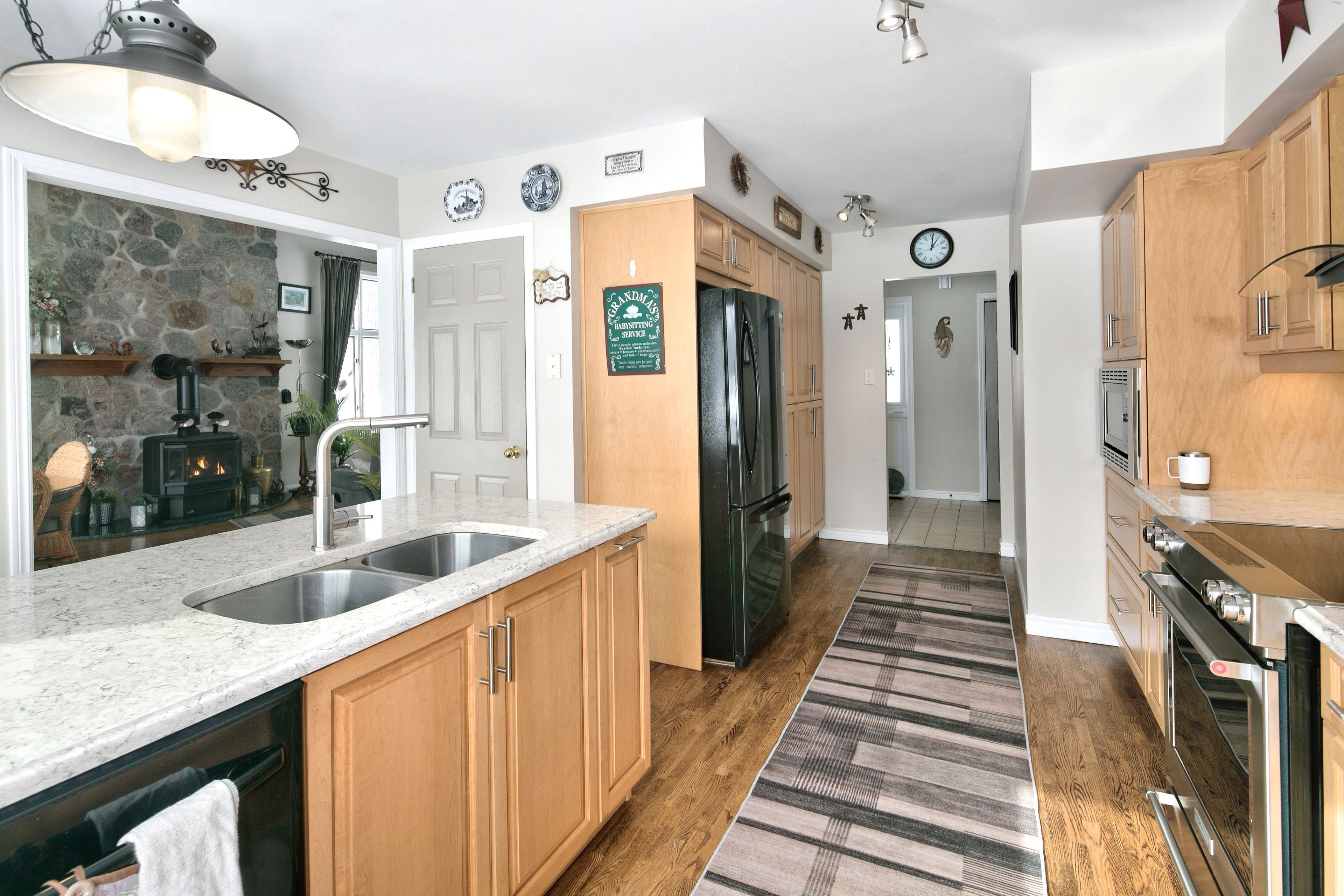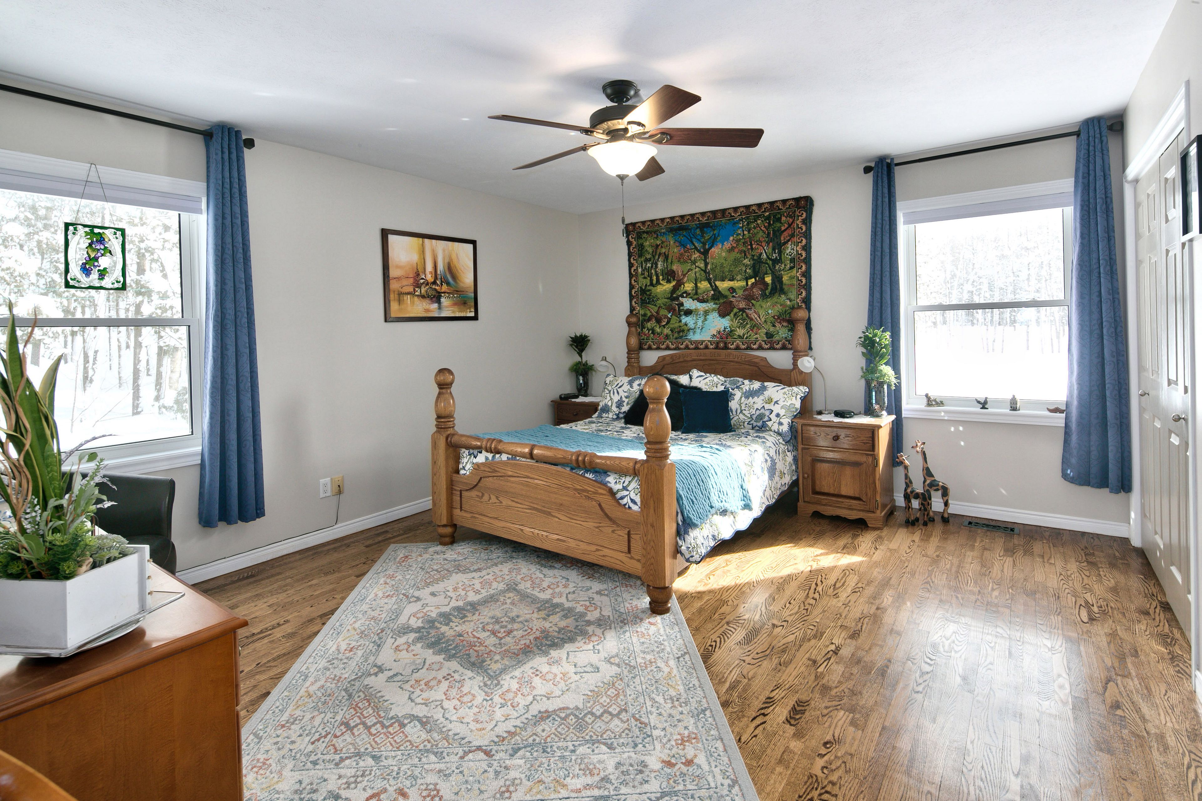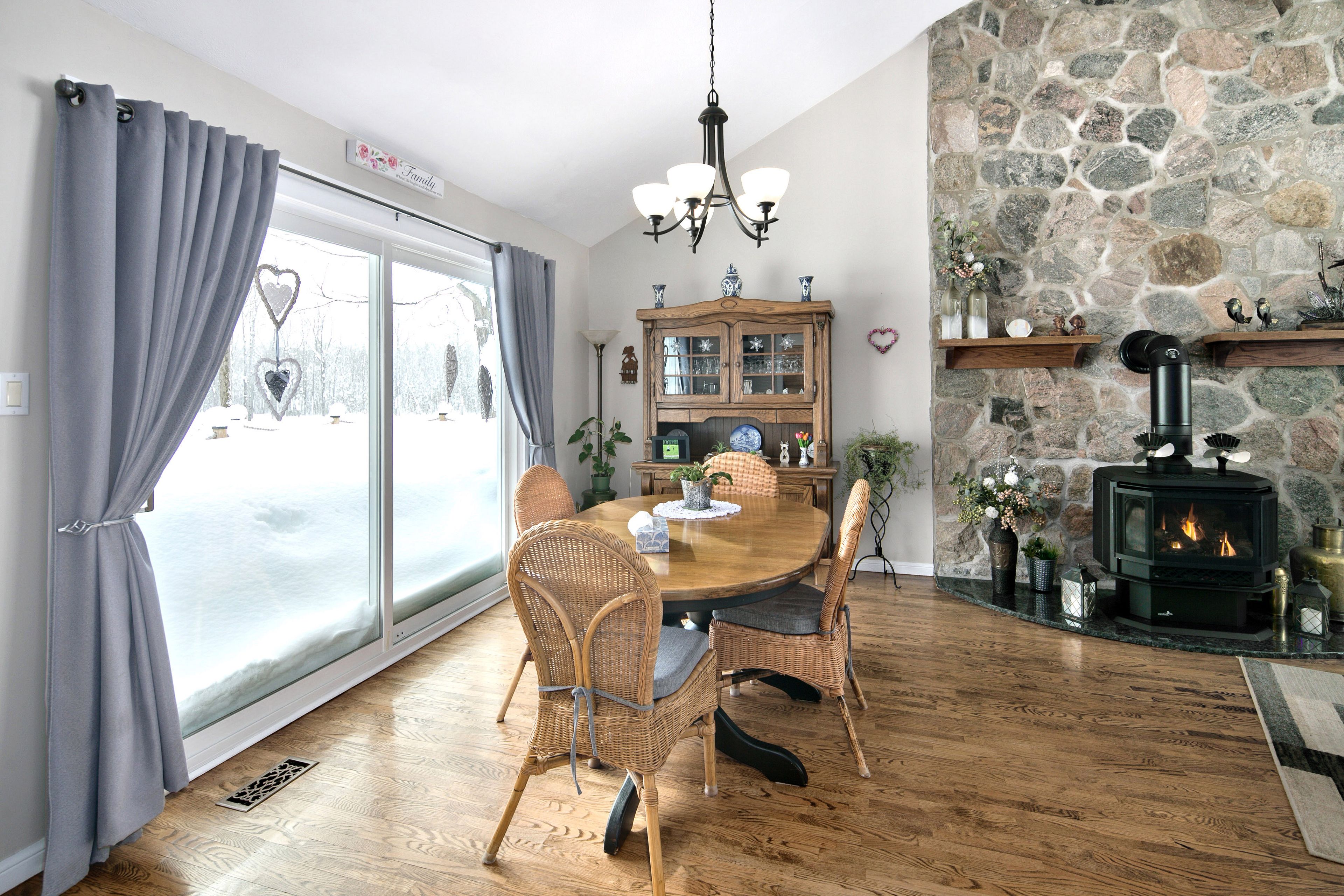 Tucked away in total privacy, this exceptional 49. 5-acre property is a rare retreat for nature lovers seeking peace, space, and connection to the outdoors. Surrounded by wildlife and mature landscape, the land offers a beautiful mix of forested land with mulched trails throughout and a natural spring fed pond that enhances the serene setting. The updated 1. 5-storey home with loft is warm, welcoming, and thoughtfully improved. The main floor features a spacious living room with cathedral ceilings, a propane fireplace, hardwood floors throughout and new windows on main and upper level. The large main floor primary bedroom offers two closets and a completely redone 3-piece ensuite. The kitchen was completely renovated (2020) with quartz counter tops and island and new appliances, with a new patio door providing access to a large composite deck (2022), perfect for entertaining or simply enjoying the peaceful surroundings. Upstairs, you'll find two additional bedrooms, a 4-piece bath, and ample storage. The semi-finished basement offers a rec room and additional space to grow, along with updated mechanicals including water softener (2022), uv light, 200-amp breaker panel, furnace (2017), central air, and central vacuum. For hobbyists or those needing extra space, the property includes an attached insulated & heated 24'x24' 2-car garage plus a separate detached 24' x 23' detached 2-car garage. Also included with property is a dog kennel with doghouse. Modern conveniences and updates such as fibre internet and a security system (2022) septic bed (2022) ensure comfort, connectivity and peace of mind. A great opportunity offering quiet, privacy, and endless space-an ideal escape where nature, comfort, and functionality come together.