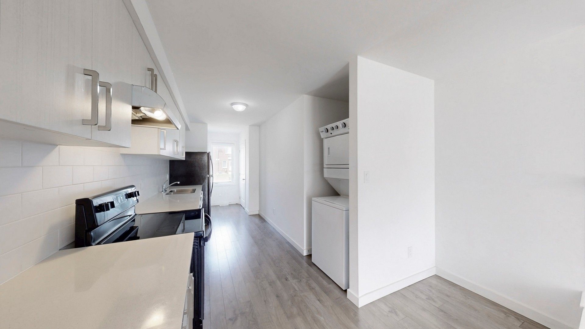 • Modern kitchen equipped with sleek appliances and ample counter space.