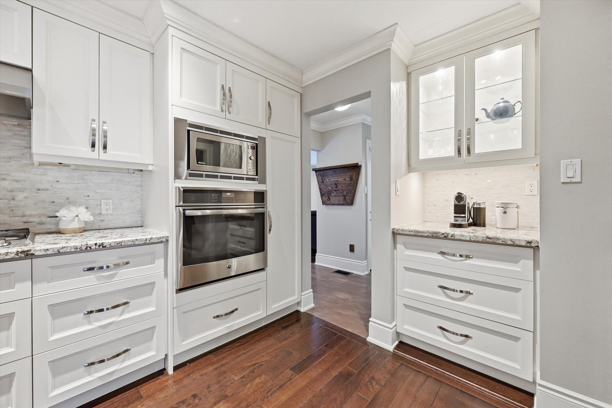 • Gourmet kitchen with granite island and high-end stainless steel appliances.