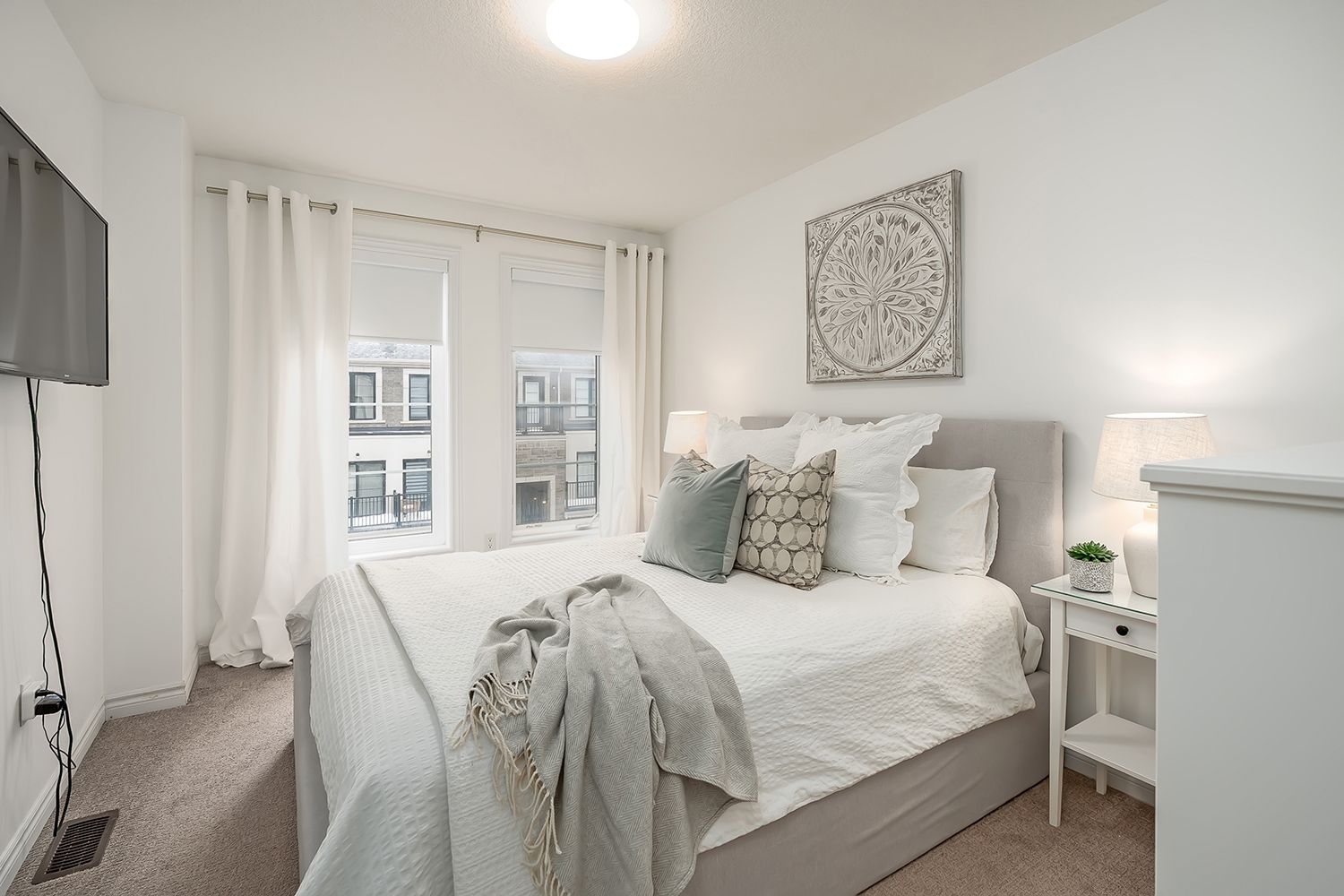 Stylish + contemporary 3 storey townhome in the heart of charming waterdown! Impeccably maintained 2 bedroom, 2. 5 bathroom boasts over 1300 sq ft. This home is a perfect combination of style, functionality + convenience. Large foyer with double door closet, utility room + inside access from garage. The main living space features a spacious living area, separate dining area w direct access to the balcony + powder room. Spacious kitchen with ample cabinetry, large breakfast bar + stainless steel appliances. The open concept design creates a harmonious flow - perfect for entertaining friends + family. 3rd level features primary bed w a w/i closet + 4 pc ensuite. Spacious 2nd bed w a double door closet + 4 pc main bath. Convenient bedroom level laundry. Incredible location, walking distance to downtown waterdown, minutes to hwy 407, school, parks, trails and all amenities. Perfect for professionals, young families + investors. Turn key living at its best!