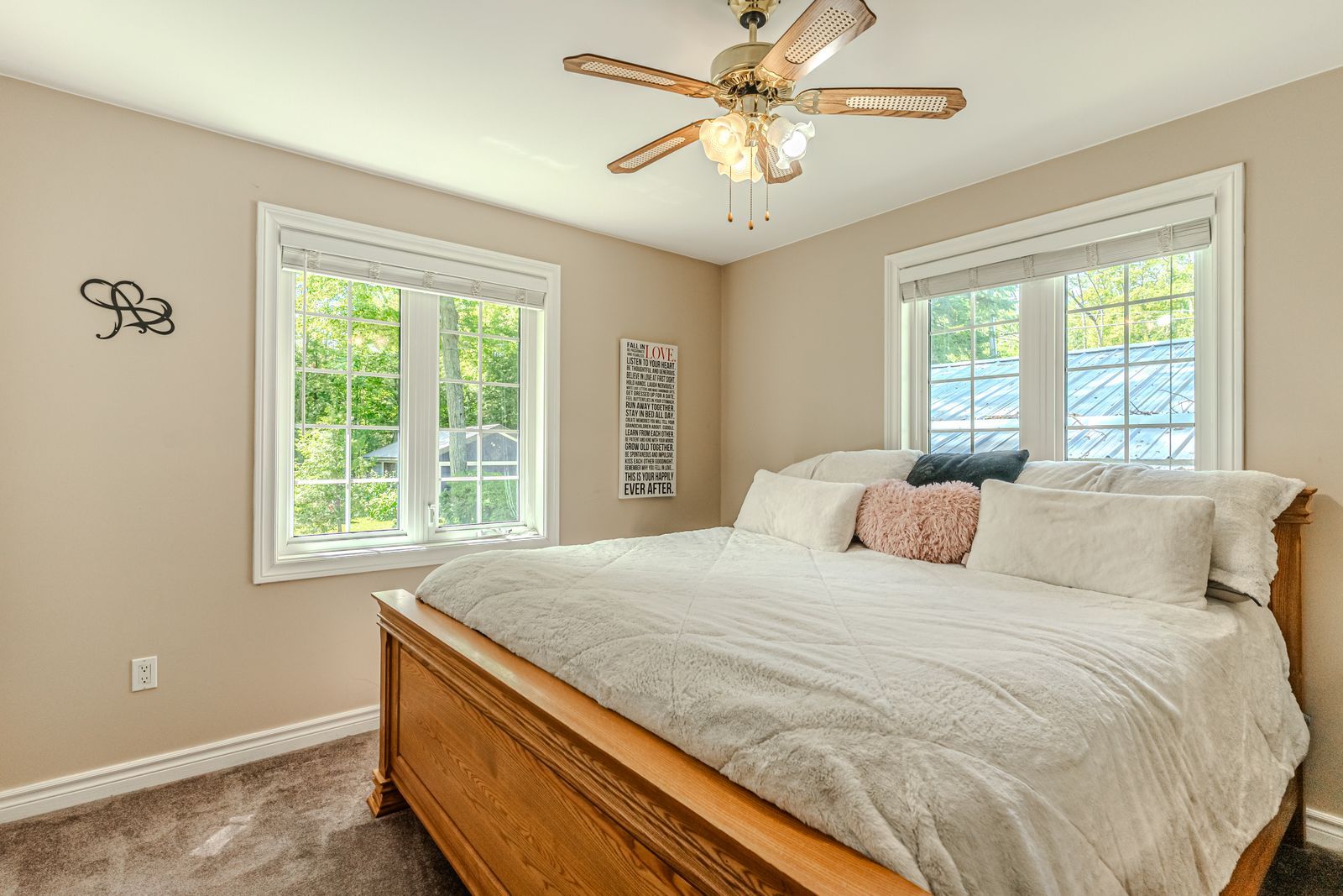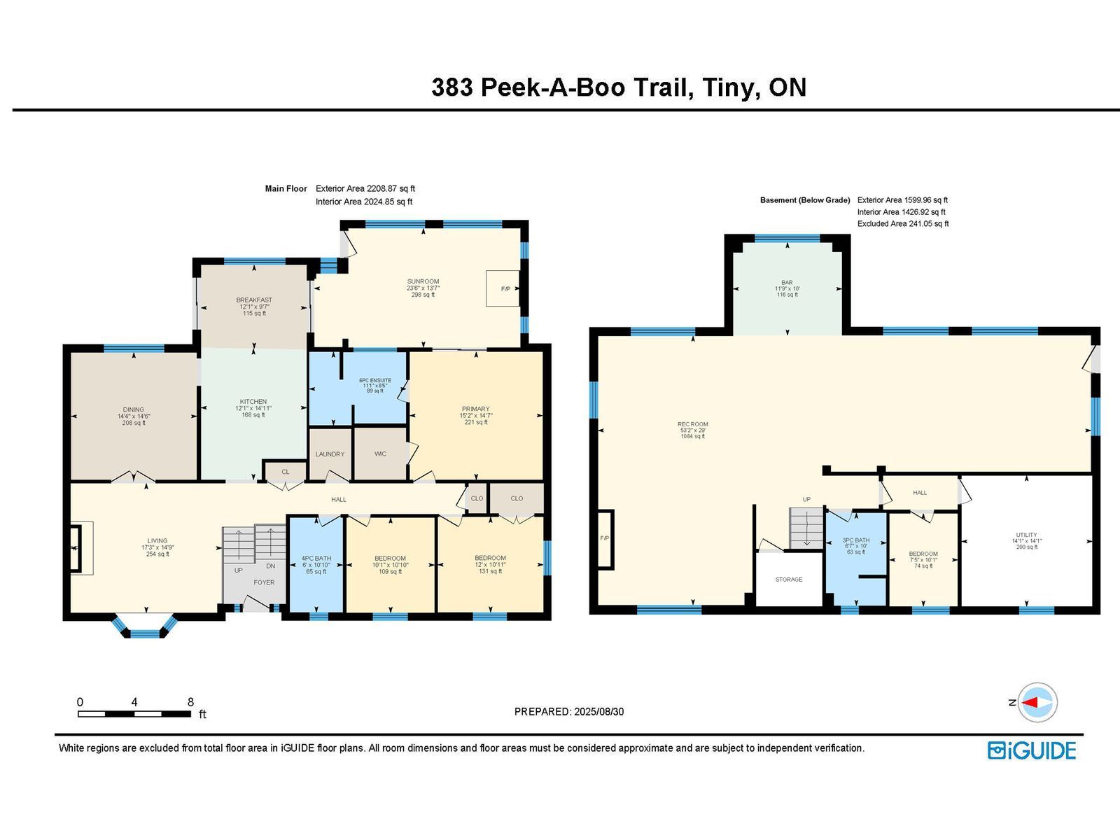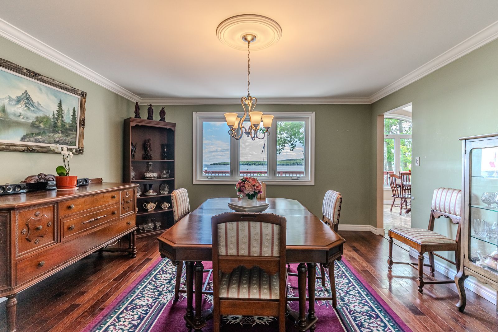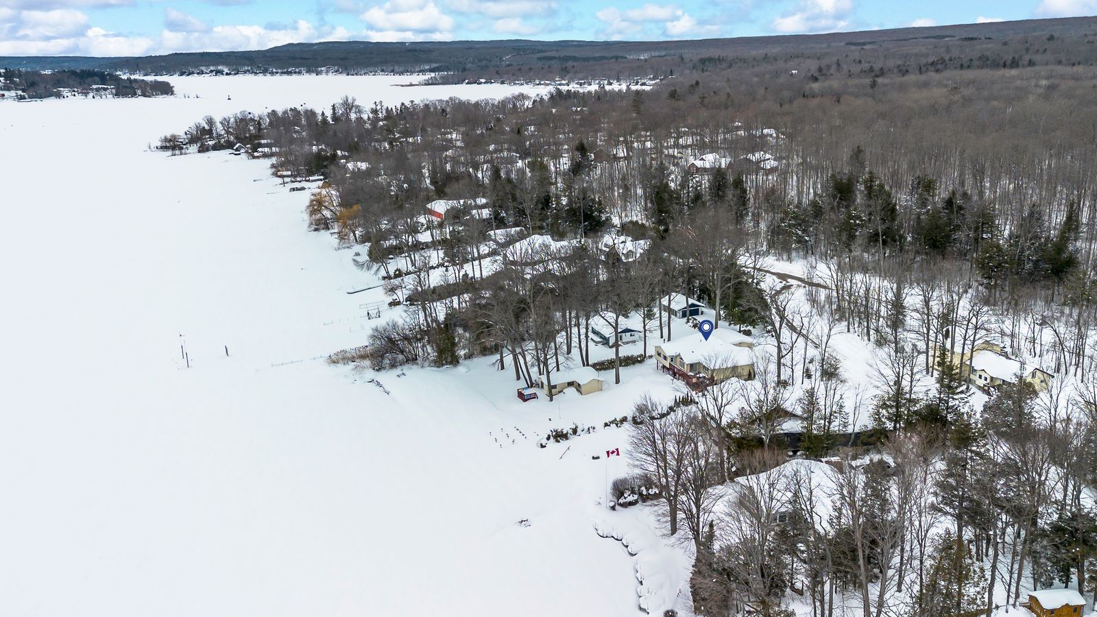 Luxurious georgian bay estate with 83 ft of sandy shoreline, second cottage, detached garage & almost half an acre! 83 feet of georgian bay frontage with eastern exposure presents a private sandy beach with gradual entry, clear waters, and sunrise views that define the waterfront lifestyle. Set on nearly half an acre with a large back deck, the property is further enhanced by an expansive l-shaped dock with a bump-out that extends into the bay, offering an impressive setting for entertaining, lounging, and docking motorcraft. Located on a coveted cul-de-sac along sought-after peek-a-boo trail and just steps from tee pee point park, the property delivers exclusivity and tranquillity while remaining approximately 10 minutes to local essentials and a short drive to penetanguishene and midland for expanded amenities. The primary residence introduces itself with a stately front entry, covered porch, manicured landscaping, and a detached two-car garage with six-car driveway parking. The kitchen is appointed with rich wood cabinetry topped with crown, granite counters, stainless steel appliances, and a built-in desk area. The living room features a bay window, crown moulding, fireplace, and french doors, while the spectacular sunroom boasts soaring ceilings, shiplap accents, pot lights, a dramatic fireplace, and a walkout. The primary bedroom highlights its own walkout to the sunroom, a walk-in closet, and a spa-like 6-piece ensuite. Extending the living space, the finished walkout basement showcases a massive rec room with a third fireplace, and room for a pool table, along with a fourth bedroom and full bath, with the entire level opening directly to the yard and waterfront. A versatile second cottage with two bedrooms, a bathroom, a kitchen and a living area, and a private deck enhances the property's functionality for family and guests, while main floor laundry, in-floor radiant heating, central vac, and erv/hrv systems add to the overall comfort.