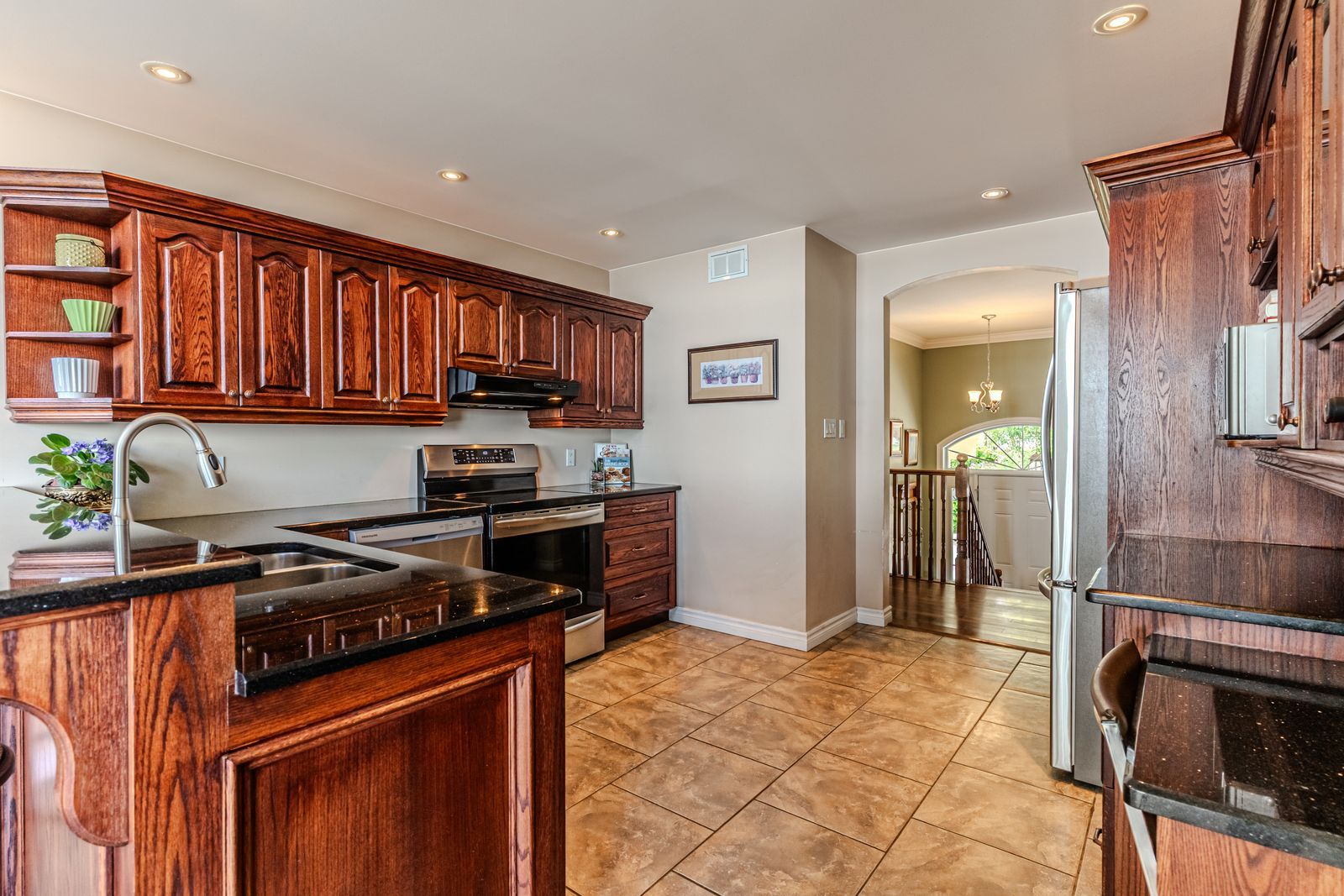 • Stately home with rich finishes, including granite counters and a fireplace.