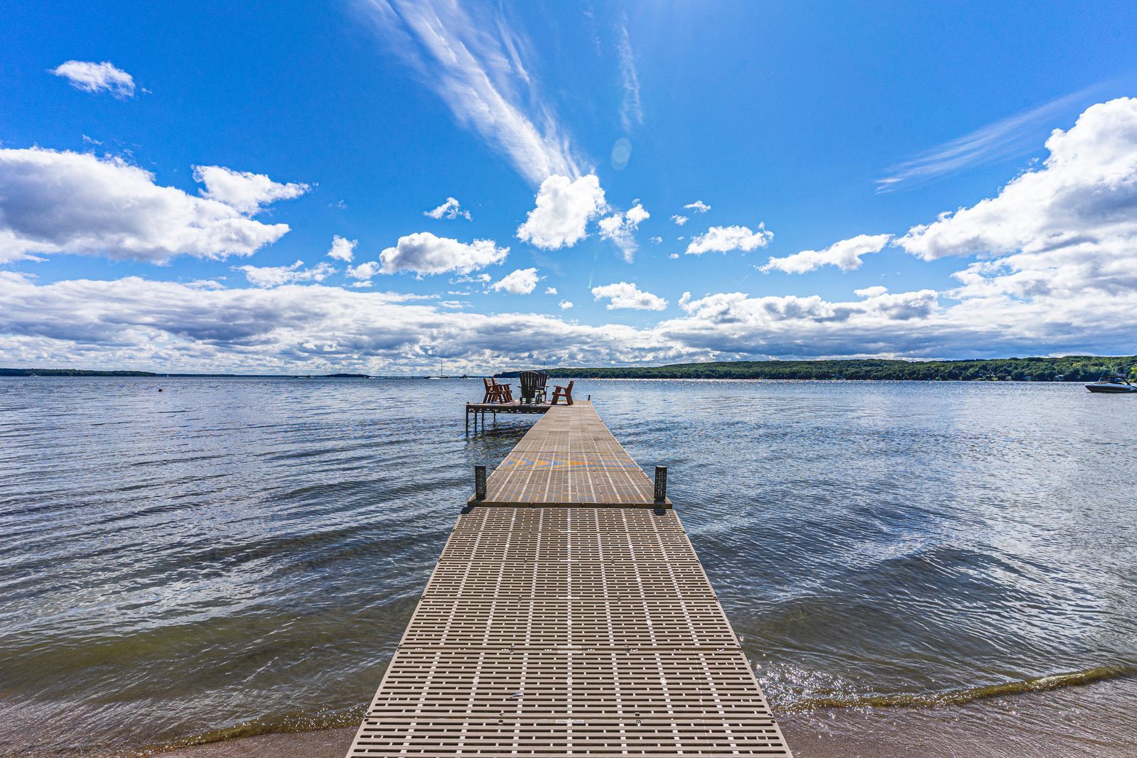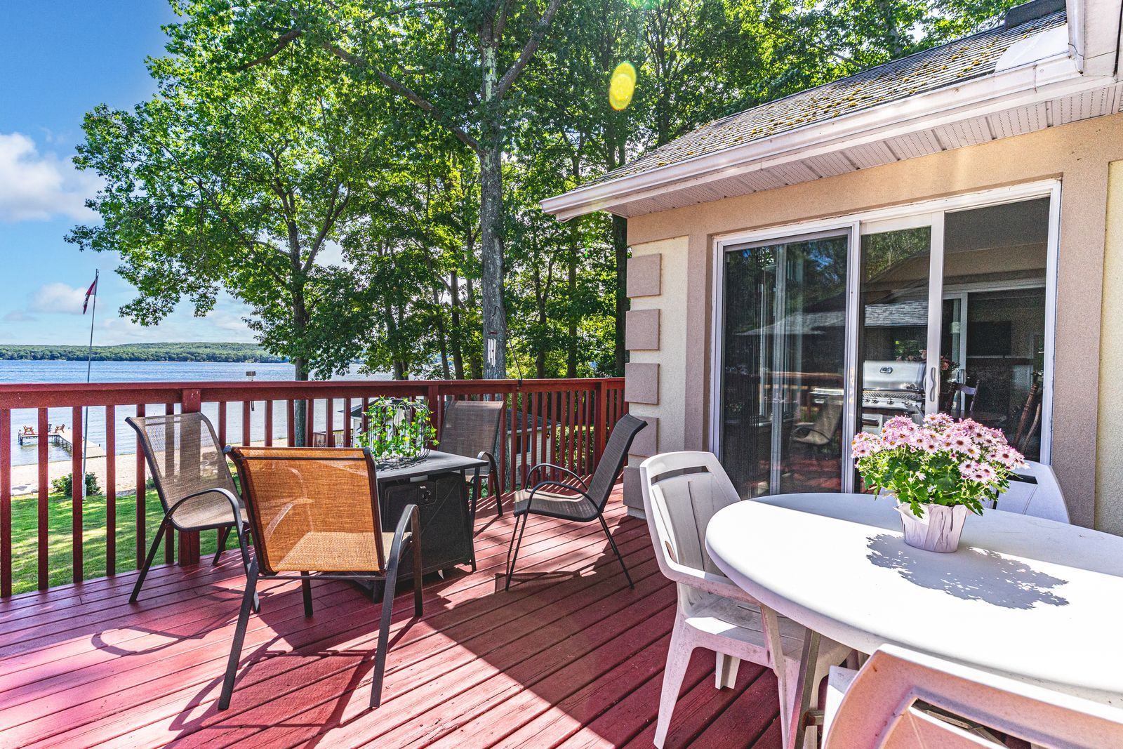 • Large deck and L-shaped dock perfect for entertaining and lounging.