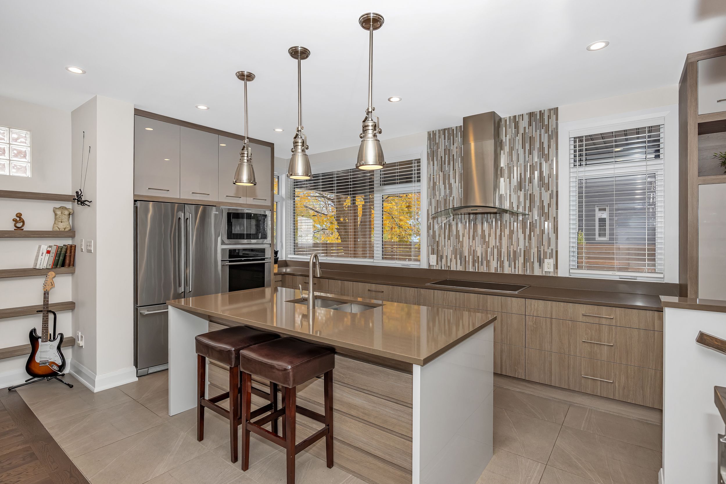 • Modern kitchen with caesarstone island for cooking and entertaining.