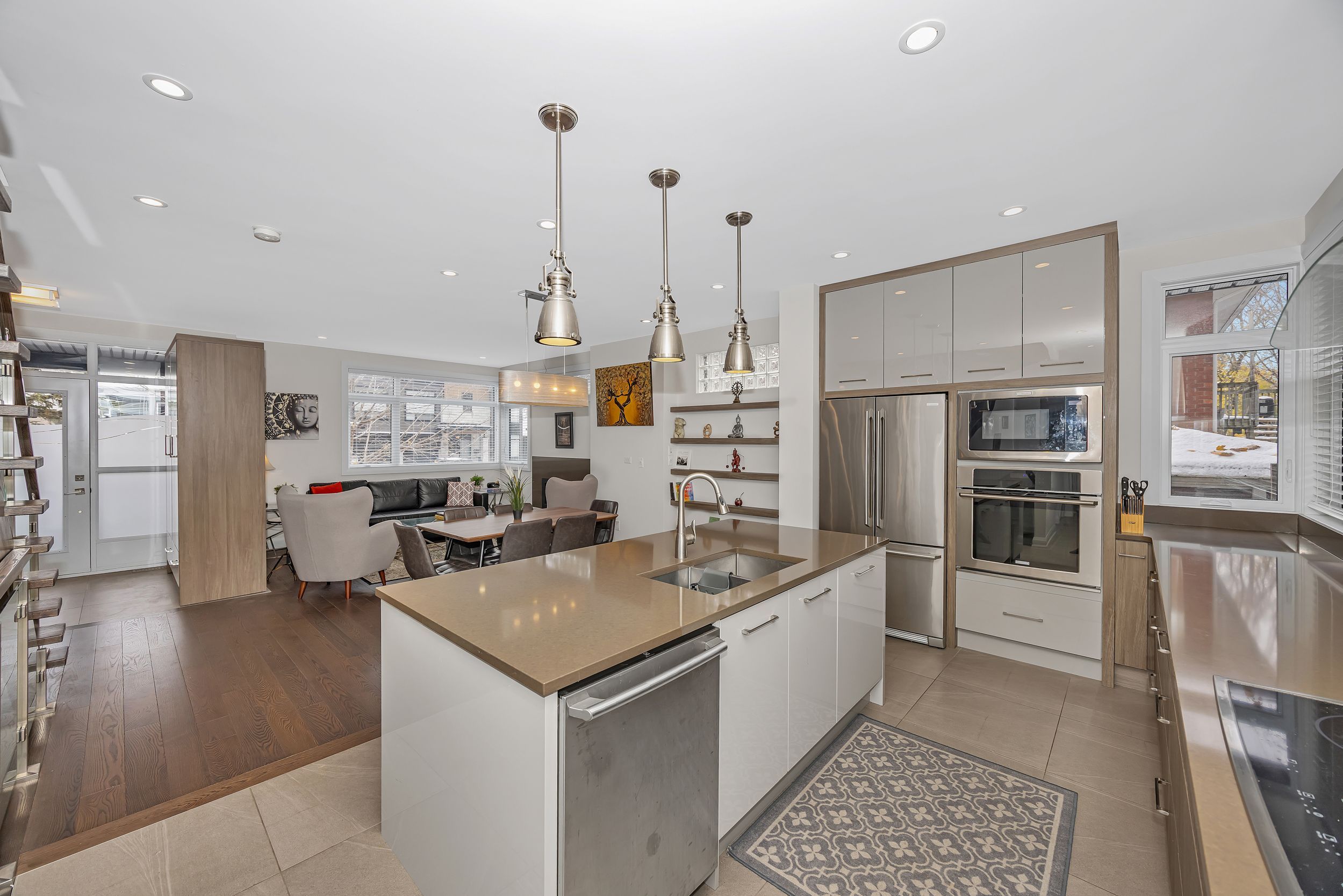 How about moving into a pristine semi-detached home in one of the best neighbourhoods in ottawa? What's not to love in this open and airy space, painted in neutral tones, where the hardwood brings warmth to this contemporary build. It is open concept living that lends itself to harmonious entertaining on the main level. The caesarstone island serves as a breakfast/cocktail counter for guests in this modern kitchen, while providing work space to create culinary masterpieces. The cozy gas fireplace is the focal point for the south-facing living room. The powder room is conveniently tucked away off the rear mudroom. Walk out to the back deck and fenced, quaint backyard which is low maintenance perfect for busy professionals. There is inside entry from the single car garage with access to the kitchen. On the fully finished, bright lower level is opportunity for a 19 ft long family room/games room/theatre/gym - use your imagination. Complete with a full bathroom and abundance of built-in cabinets, the options are endless. There is a functional, well thought out laundry room with front loader washer/dryer, undermount sink, and ample cabinetry, on this level. The second level is fashioned with all bedrooms apart from each other. Primary bedroom is a perfect reprieve with 10 ft. Coffered ceilings, walk-in closet and ensuite with double sinks and large glass shower. The additional three bedrooms share access to a full four-piece bathroom. This home is ideal for empty nesters, first time home buyers or a growing family. Close to parks, amenities, restaurants, schools, recreation, and the vibrant westboro lifestyle, this incredible home is sure to 'wow' the most discerning buyer.