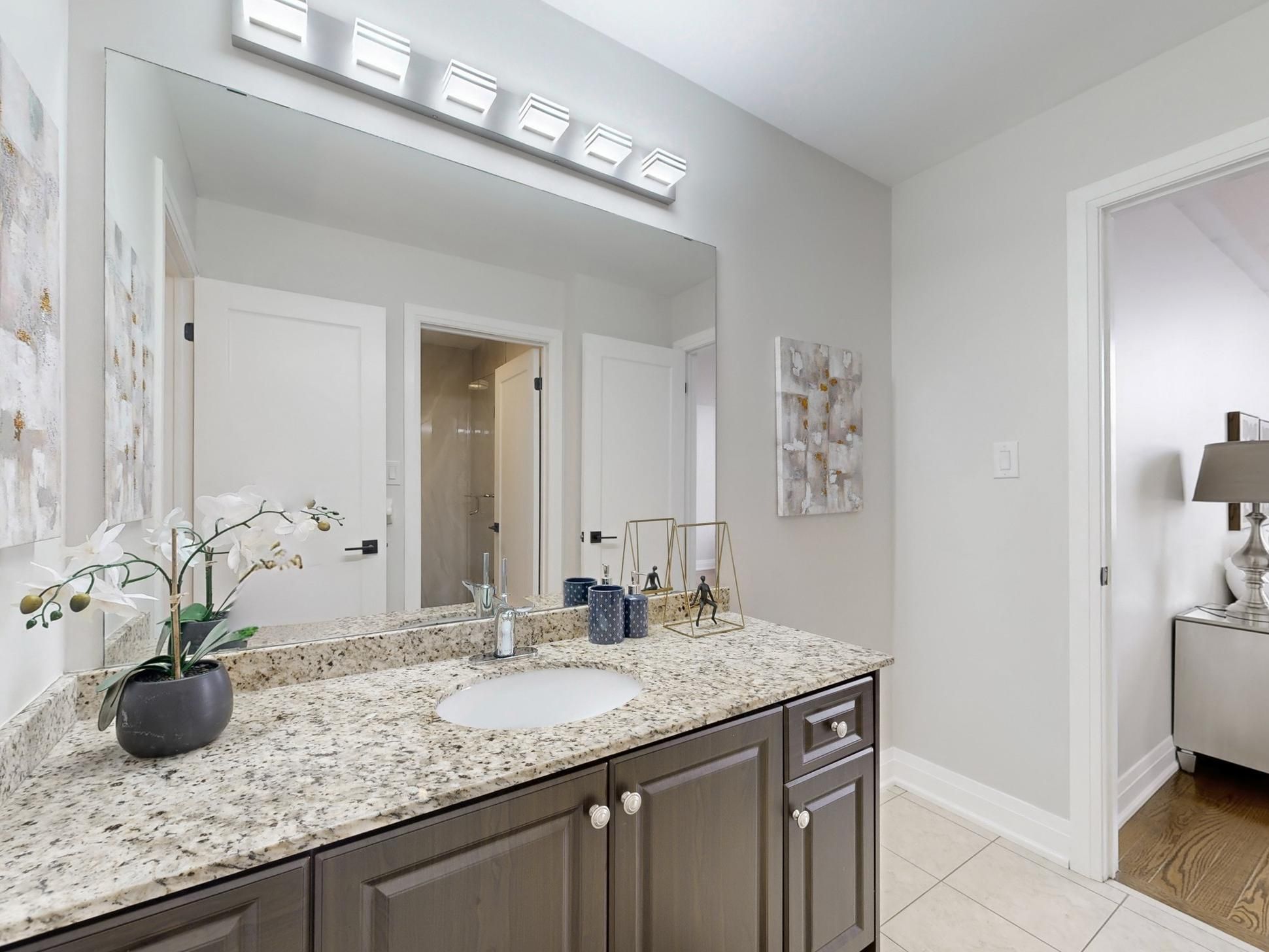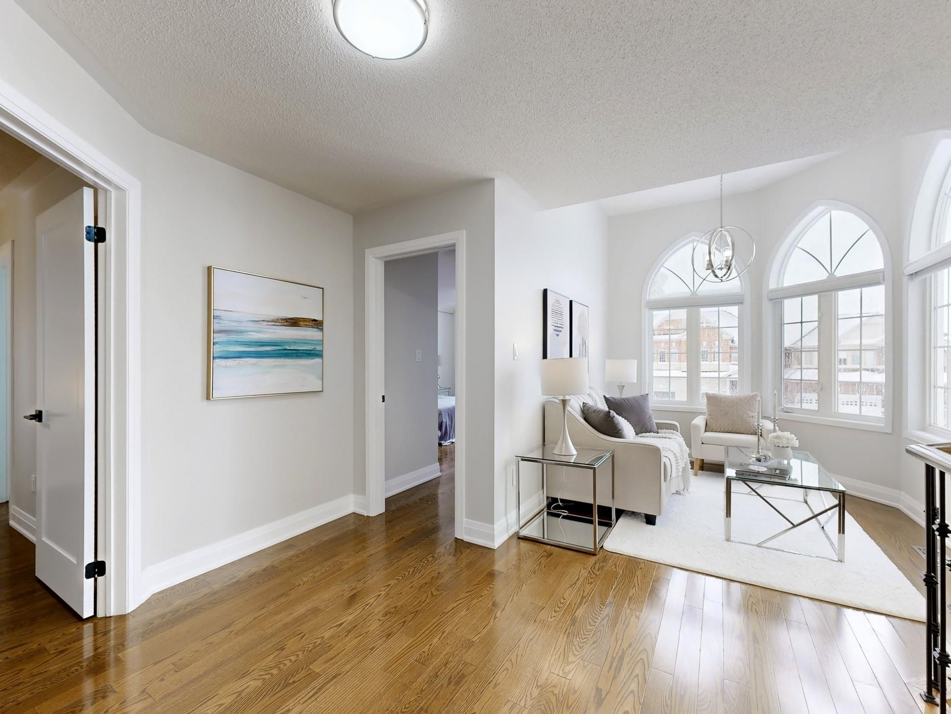 • Bright open-concept layout with 9-foot ceilings and hardwood flooring throughout.